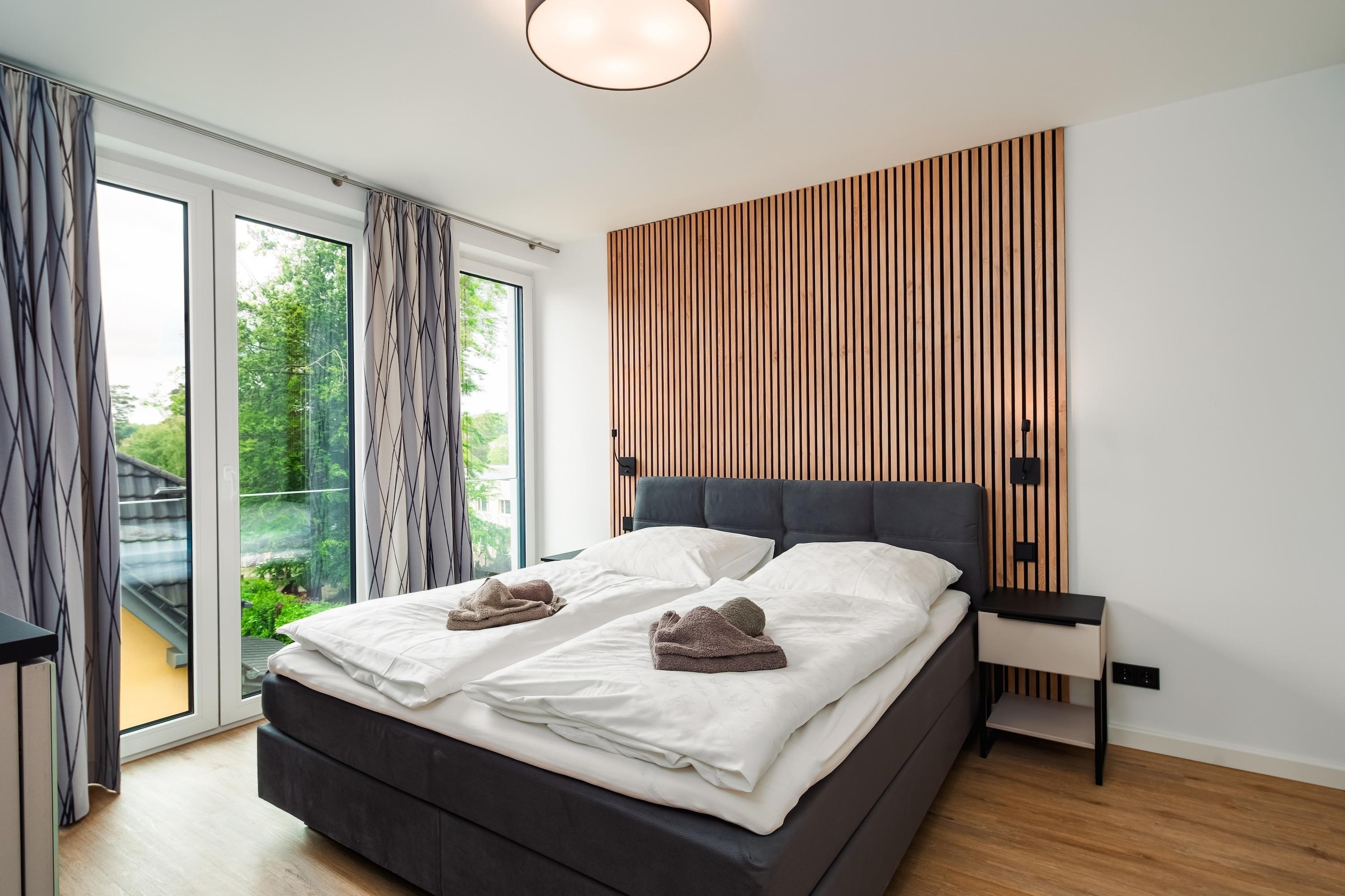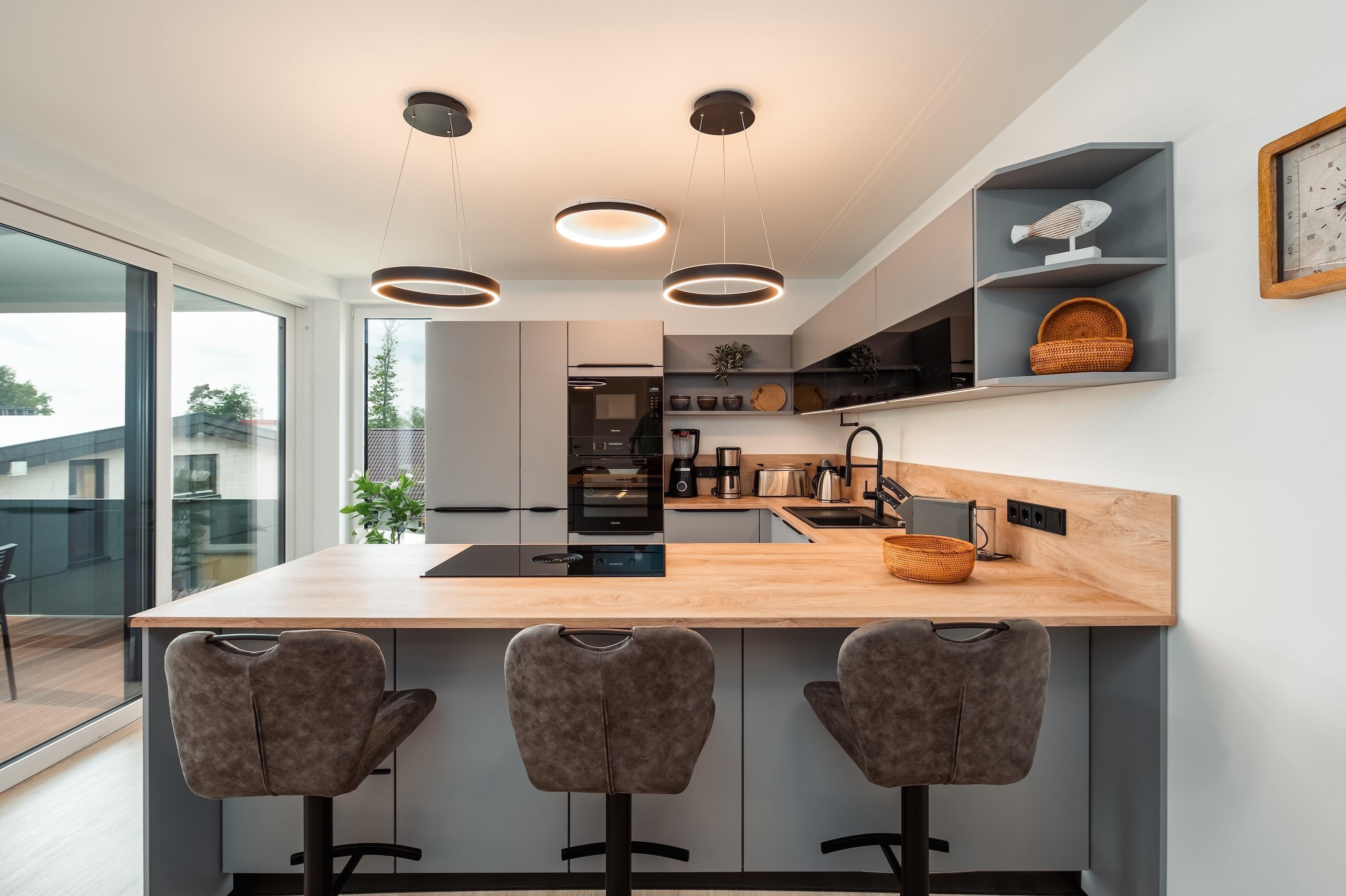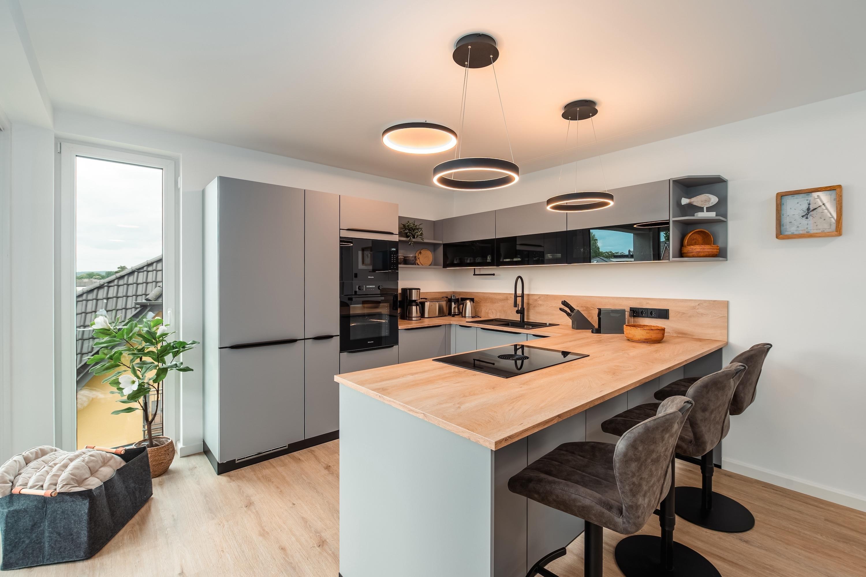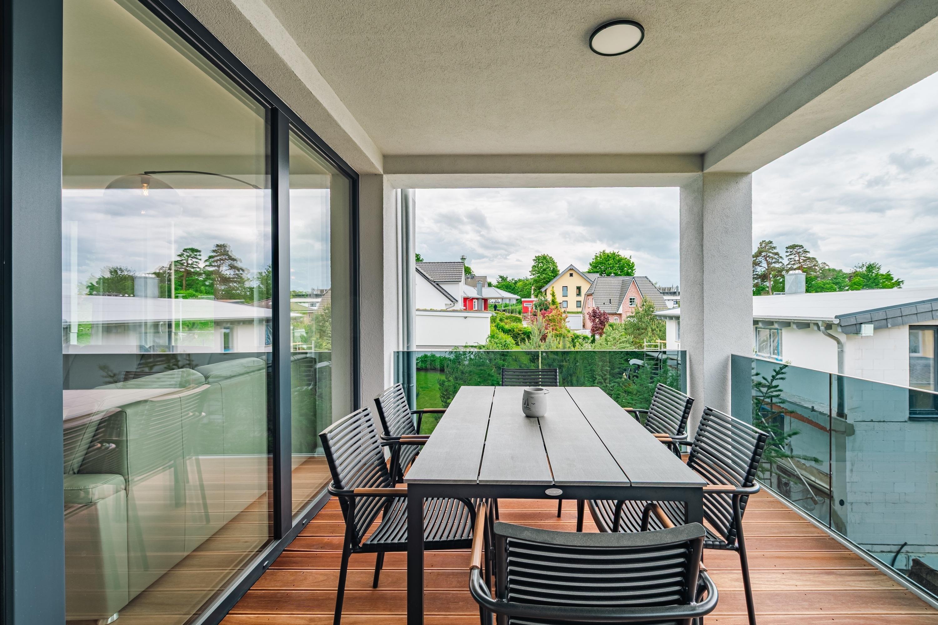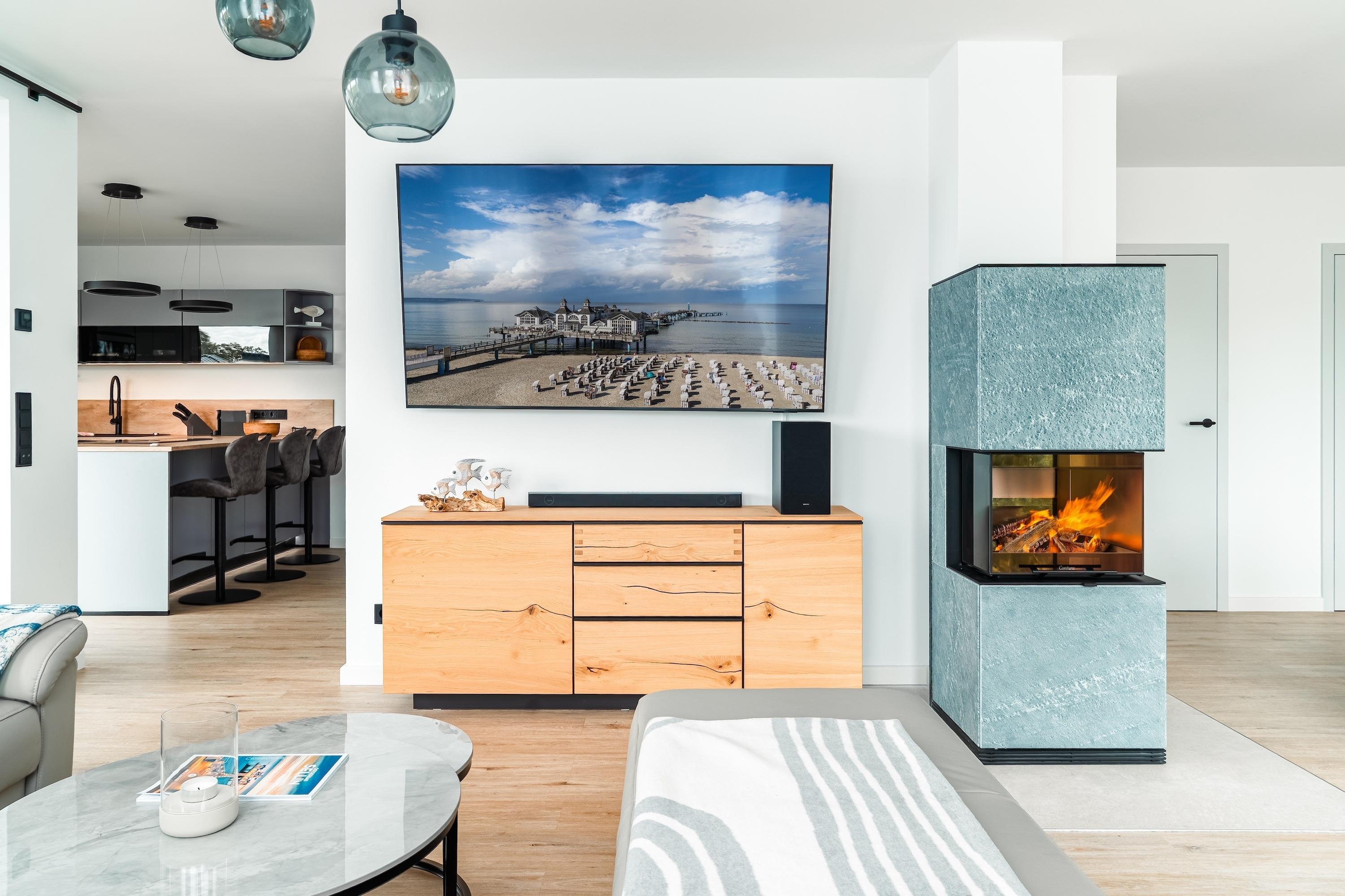 Zum weiteren Komfort zählen eine voll ausgestattete Küchenzeile, die auch für längere Aufenthalte geeignet ist, sowie die Möglichkeit, Ihren Hund mitzubringen. Genießen Sie die Sonne auf dem Balkon oder entspannen Sie am Kamin. Für Regentage sorgten Smart-TVs in dem Wohnbereich und in den Schlafzimmern für Unterhaltung. Für Gäste steht ein Garagenparkplatz zur Verfügung mit einer Ladestation.