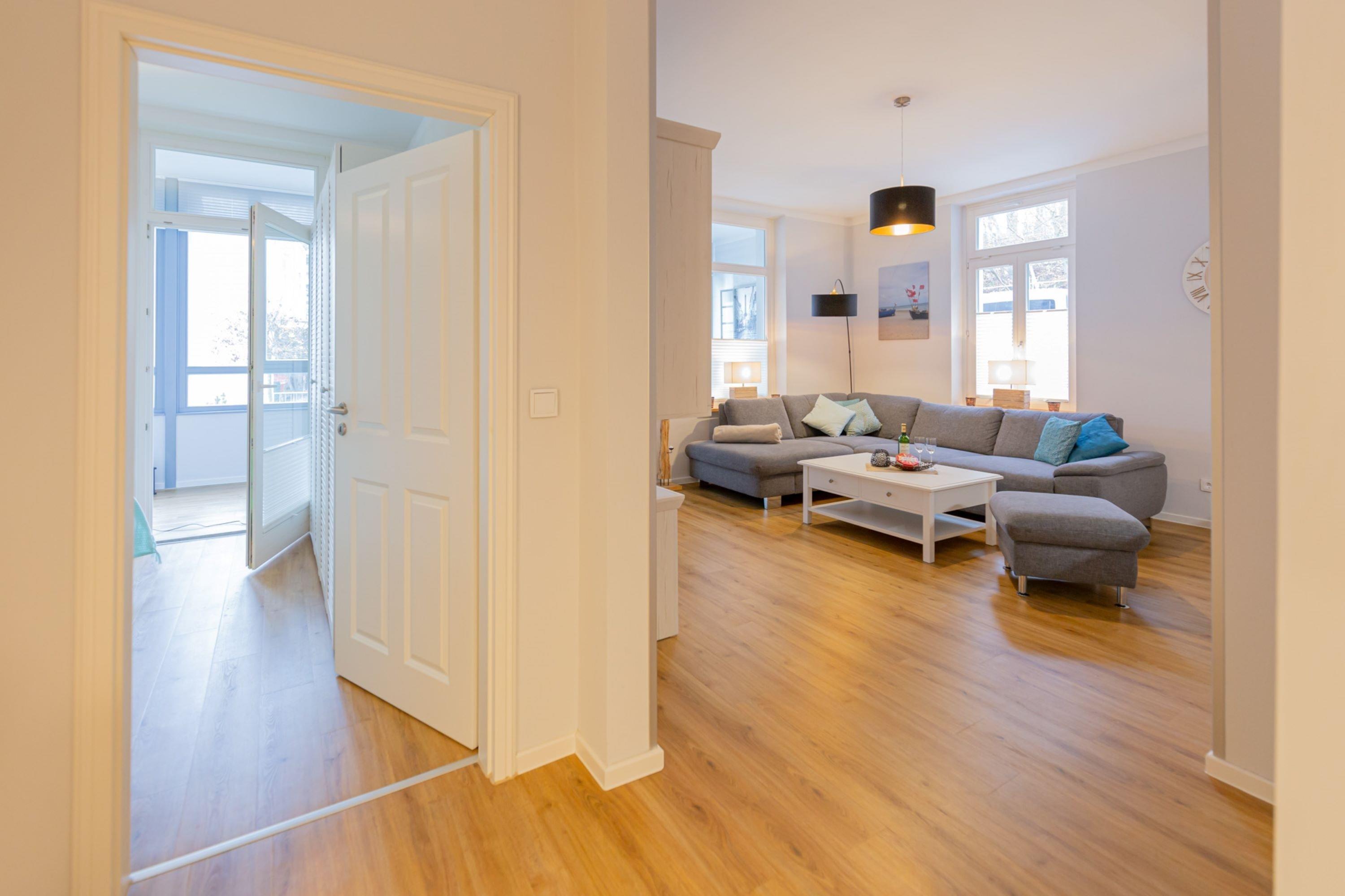 Die gemütliche Ferienwohnung Muschelsucher in der imposanten Villa Odin bietet auf 63m² alles, was man zu einem entspannten Strandurlaub benötigt.