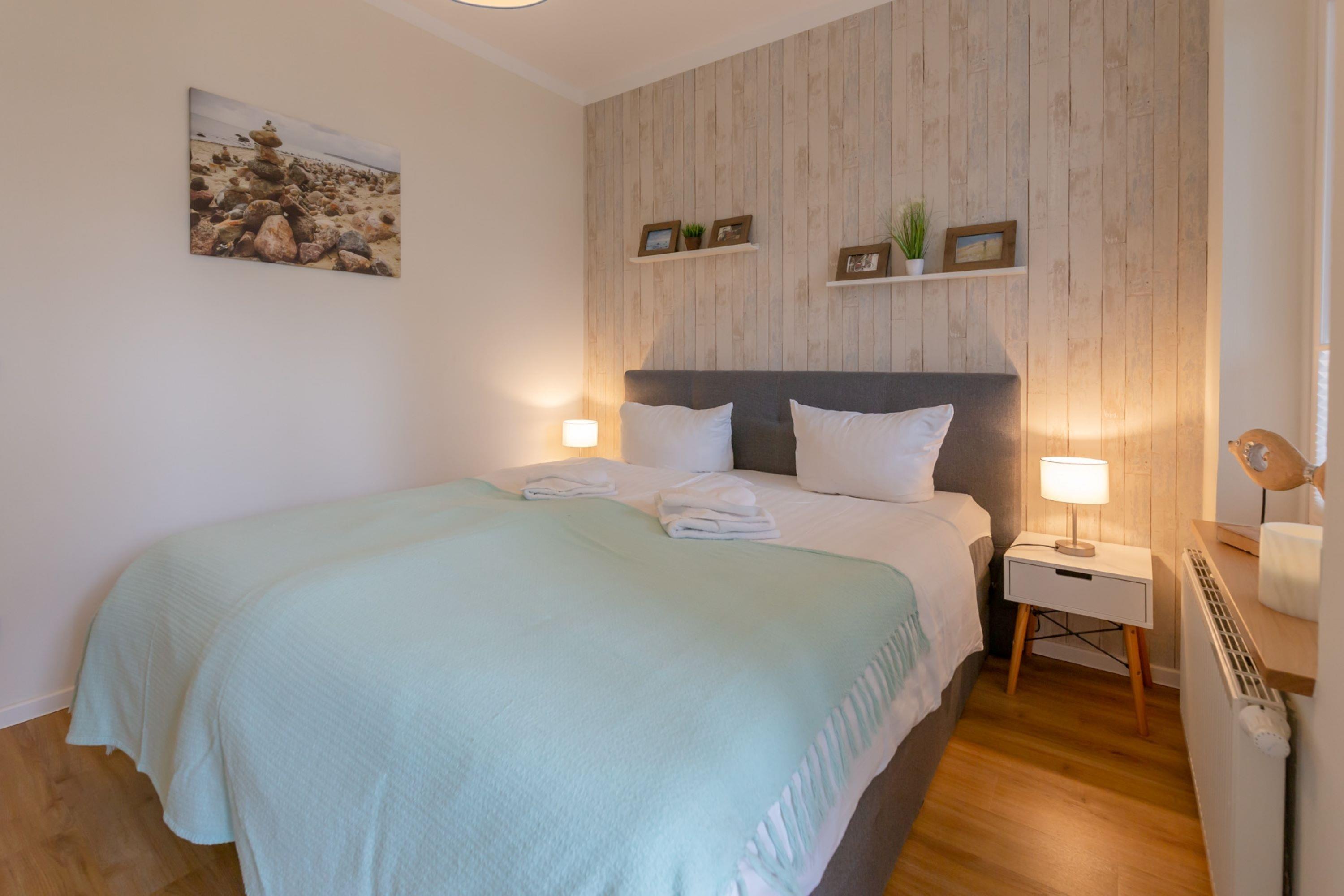 Das Schlafzimmer ist mit einem großen Doppelbett und einem Kleiderschrank ausgestattet. Von hier aus, sowie auch über das Wohnzimmer, erreichen Sie den sonnigen Wintergarten.