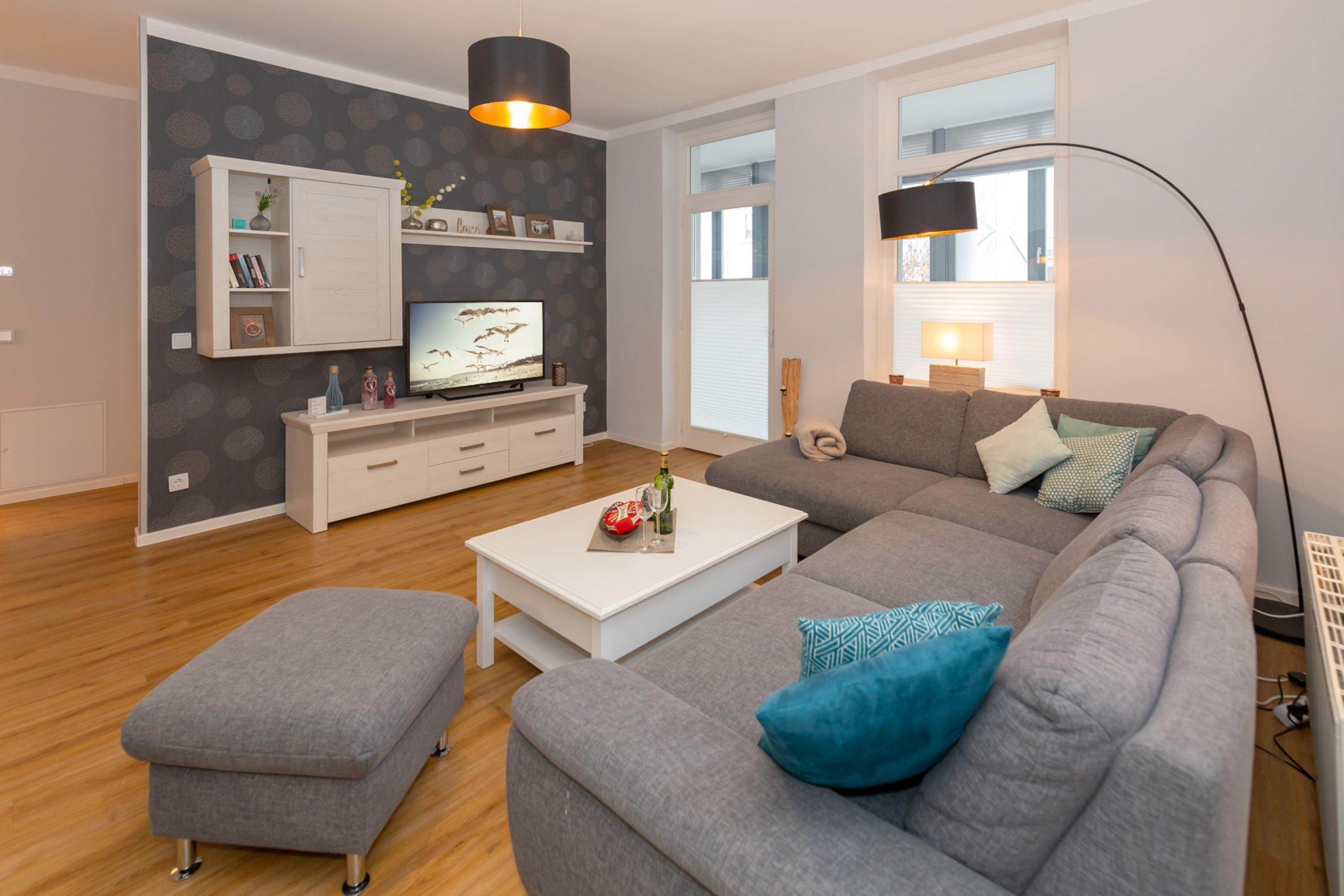 Die komfortable Couchgarnitur lädt zum Verweilen ein. Hier ist eine Aufbettung für bis zu zwei weitere Personen möglich. Der große Flachbild-TV und ein kostenfreier WLAN-Zugang runden das Erlebnis gekonnt ab.