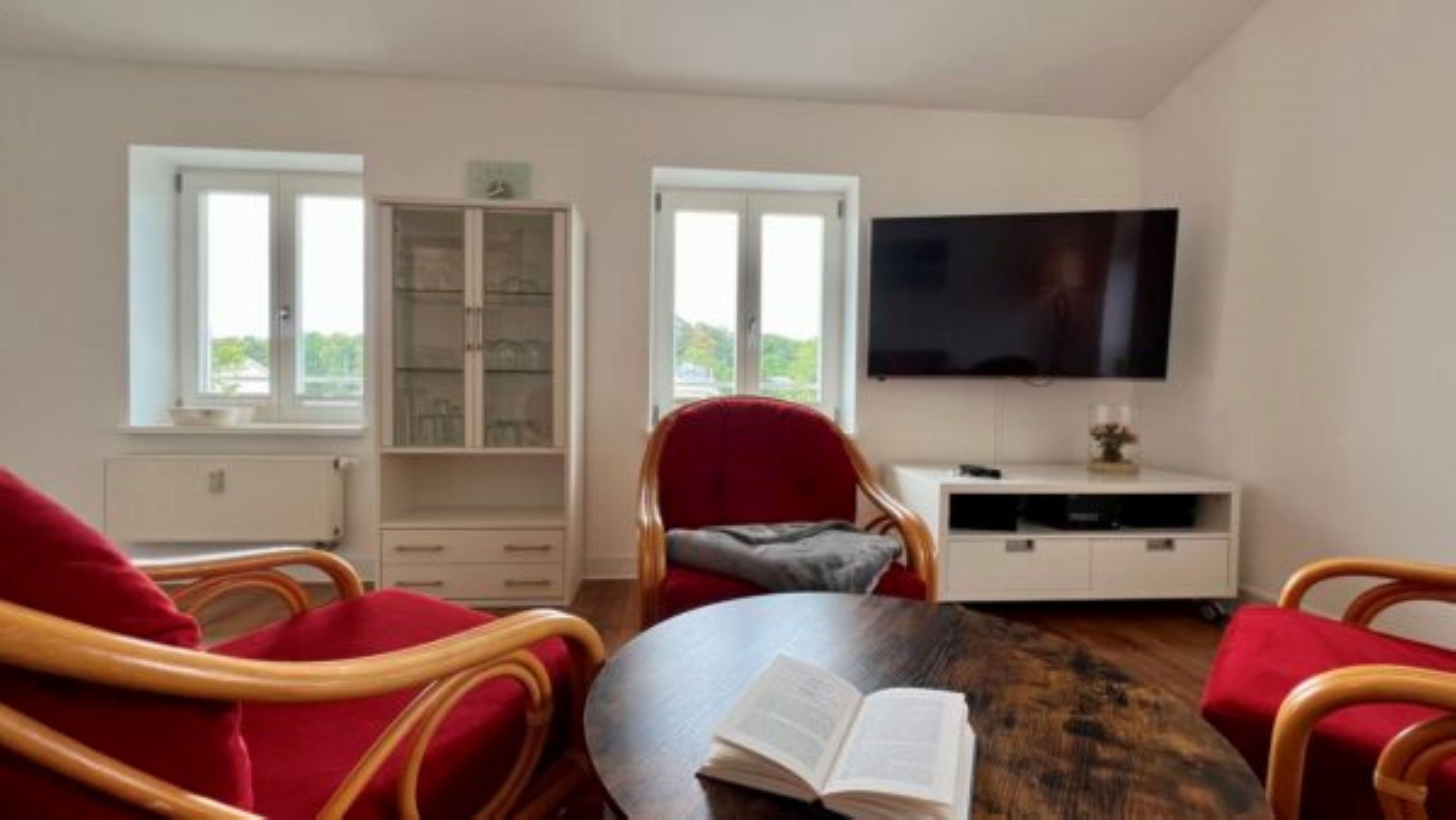 Über den freundlichen Flurbereich erreichen Sie das helle Wohnzimmer - hier erwartet Sie neben dem Flachbild-TV und den beiden bequemen Sesseln eine komfortable Couchgarnitur, welche ebenso als Aufbettungsmöglichkeit für 2 weitere Personen genutzt werden kann. Über den Hausflur erreichen Sie den sonnigen, überdachten Balkon mit Gartenmöbeln (inkl. Auflagen).