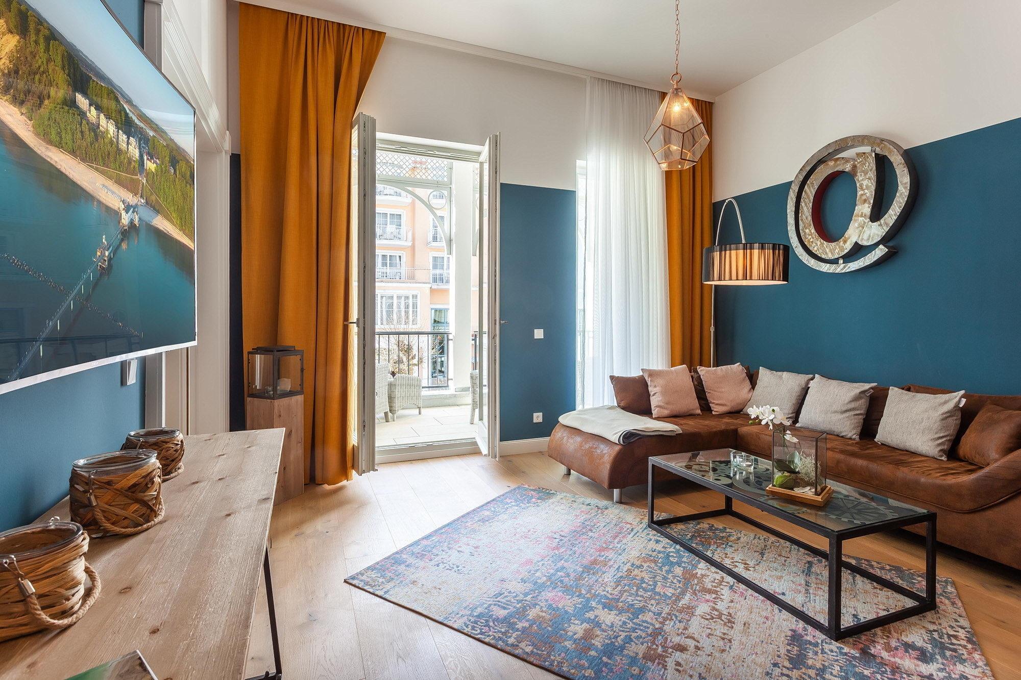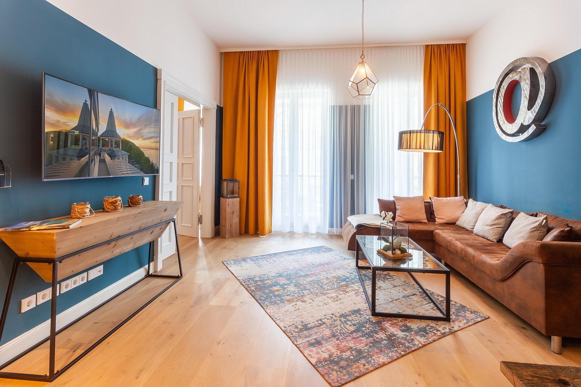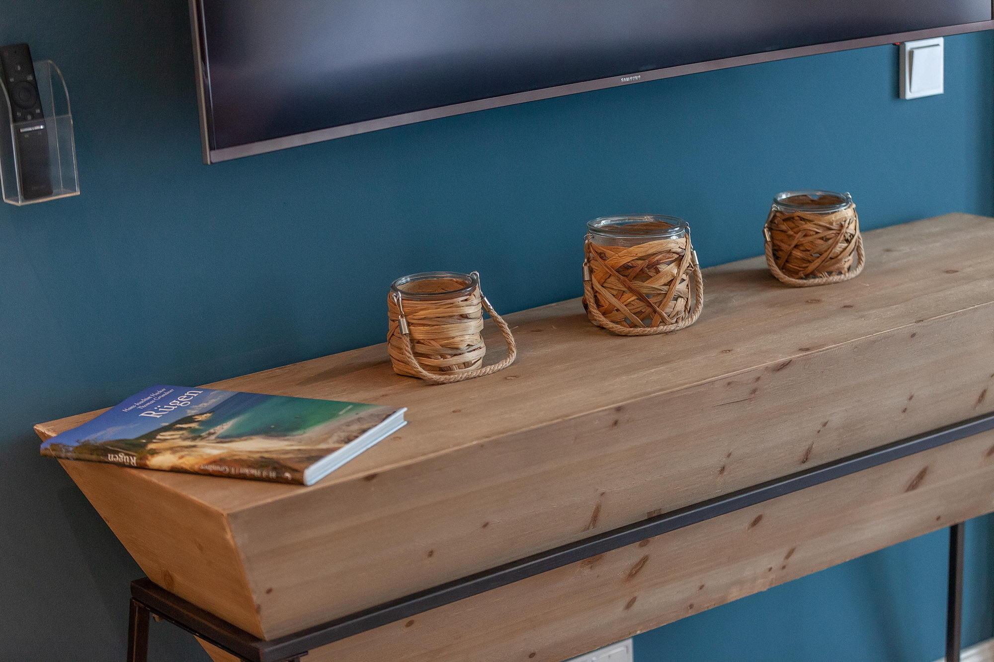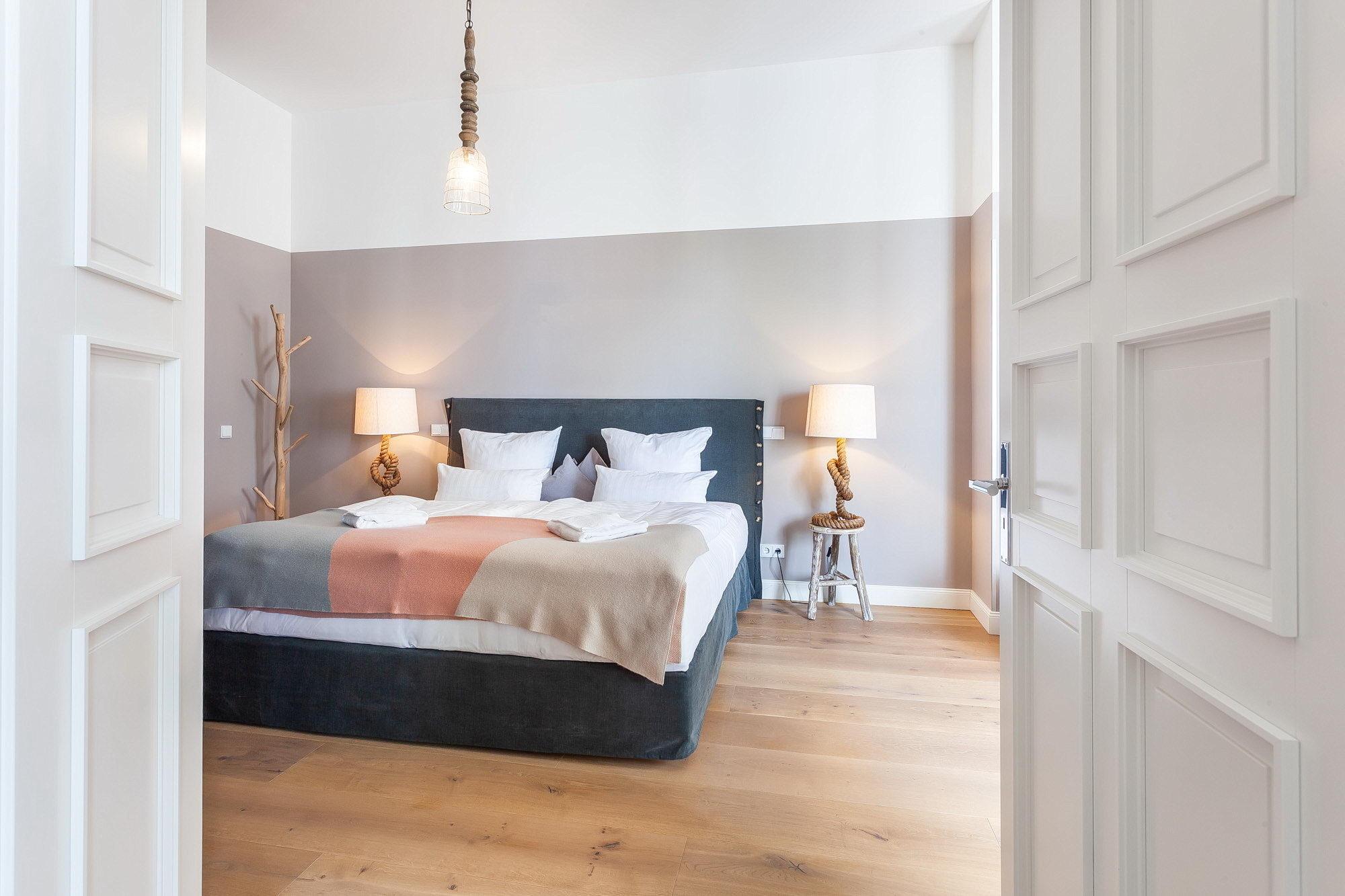 Die Ferienwohnung "[at] HOME" verspricht viel. Es lädt durch seine überdachte Loggia, bequemen Gartenmöbel und einem traumhaften seitlichen Meerblick zum Verweilen ein. Das 90 qm große Appartement überzeugt durch den offenen Wohnbereich und eine hochwertige Einbauküche. Das Schlafzimmer lädt mit seinem 180x200 cm großen Boxspringbett zum Träumen ein. Hier besteht die Möglichkeit einer Aufbettung zur dritten Person durch ein separates Boxbett (90x200 cm). Selbstverständlich lässt das angrenzende Badezimmer mit bodentiefer Dusche und Badewanne keine Wünsche offen.