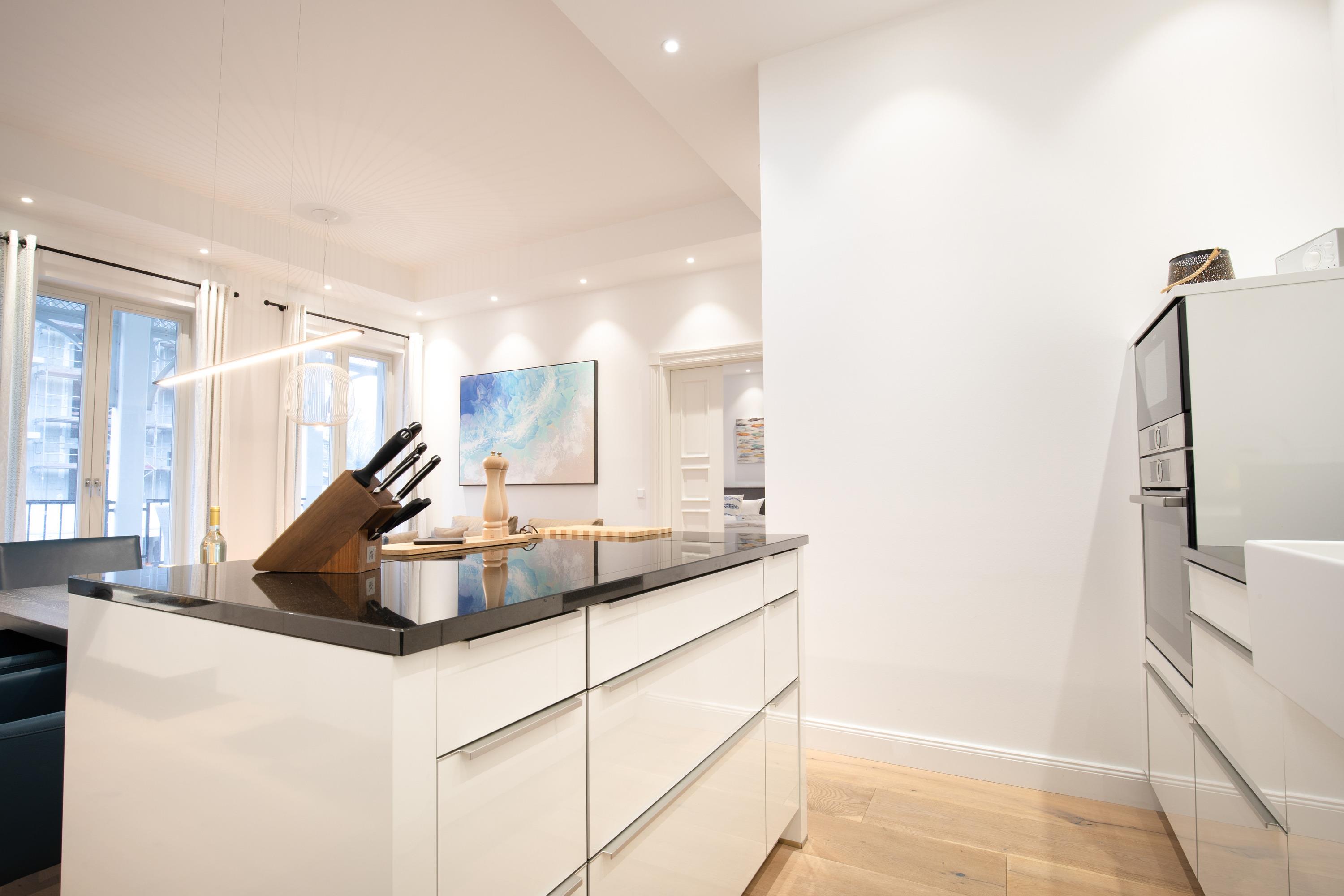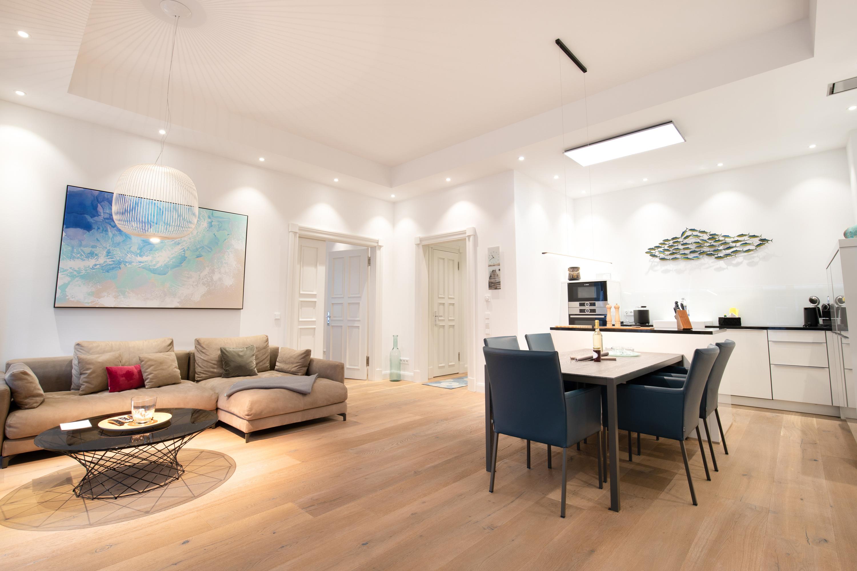 Die Ferienwohnung FIRST Bel Etage befindet sich im 1. Stock des Hauses FIRST Sellin und bietet auf 87 m² Platz für maximal 3 Personen. Sie verfügt über ein Schlafzimmer und 2 Badezimmer, wodurch hier Platz für die ganze Familie vorhanden ist. Zur Ausstattung gehört ein Tiefgaragenstellplatz, um Ihr Auto sicher unterzubringen. Die modern eingerichtete Küchenzeile ist mit einer Spülmaschine ausgestattet, um Ihnen das lästige Abwaschen zu ersparen.