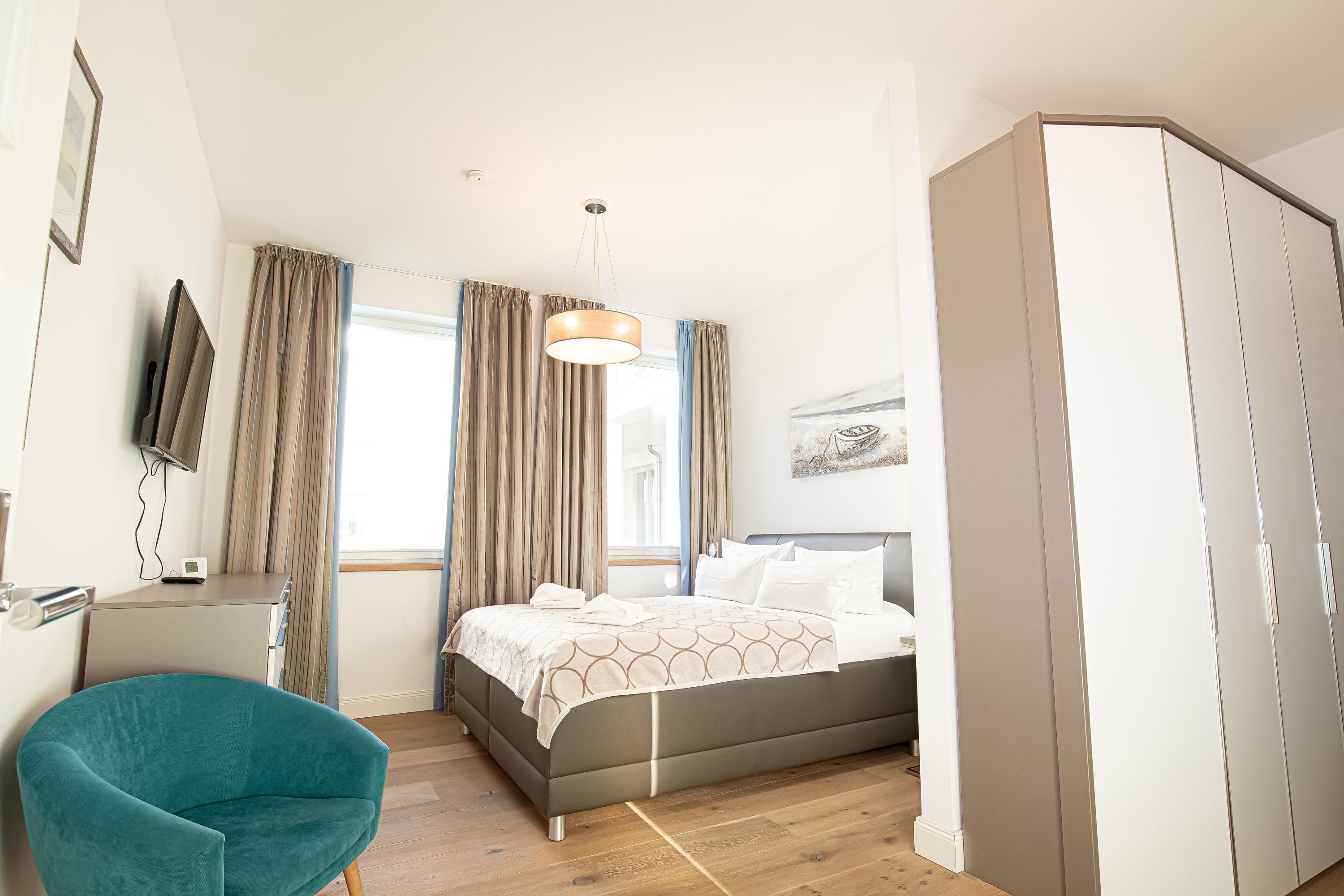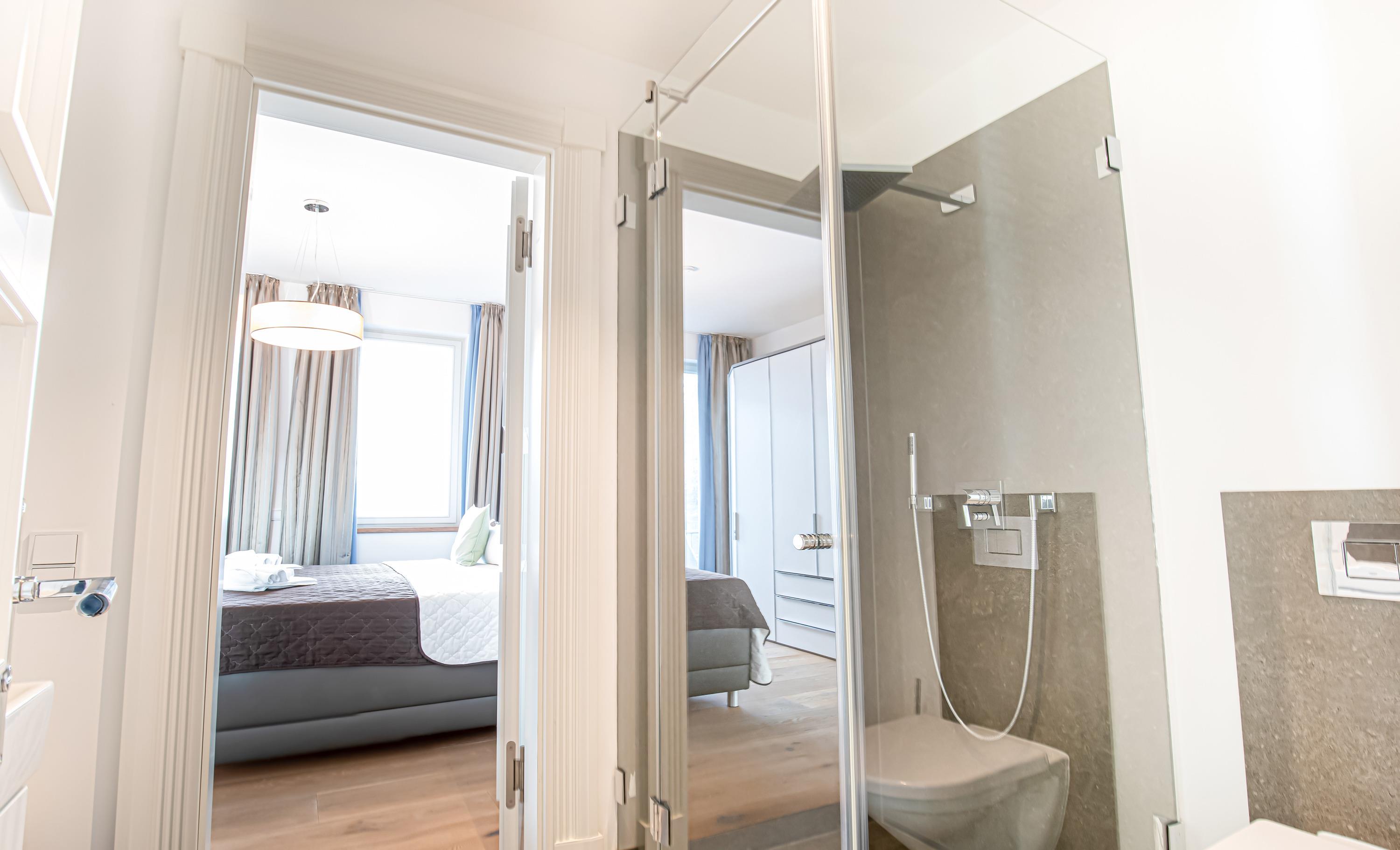 Die Ferienwohnung mit dem Namen "FIRST Waterkantsuite" bietet auf 91 m² [nbsp]Wohnfläche ausreichend Platz für bis zu 4 Personen. Sie befindet sich in der 3. Etage des Hauses "FIRST Sellin" und verfügt über 2 Schlafzimmer und 2 Badezimmer. Zur Ausstattung gehört ein Tiefgaragenstellplatz, von welchem Sie aus bequem per Lift zum Apartment gelangen. Eine Kaffeemaschine und eine Spülmaschine stehen Ihnen in der Küchenzeile zur Verfügung. Aus dem Wohnbereich genießen Sie einen traumhaften Panorama-Meerblick oder können ihren Liebsten beim planschen im Außenpool beobachten. Zusätzlich zum saisonal geöffneten Außenpool, steht Ihnen ganzjährig und kostenfrei ein Sky-Infinitypool (Indoor auf dem Dach des Gebäudes) zur Verfügung. Außerdem gibt es einen WLAN Anschluss, der Ihnen eine unkomplizierte Internetnutzung ermöglicht. Entspannung finden Sie auch im hauseigenen Saunabereich, welcher ebenfalls kostenfrei zur Ausstattung gehört. Die Ferienwohnung ist sowohl für Familien als auch für Radfahrer geeignet. Die Ortsmitte ist nur ca. 100 m entfernt und der Strand ist nur ca. 80 m entfernt. Ebenso befinden sich eine Vielzahl sehr guter Restaurants in unmittelbarer Nähe. Hier bleiben also keine Wünsche offen.