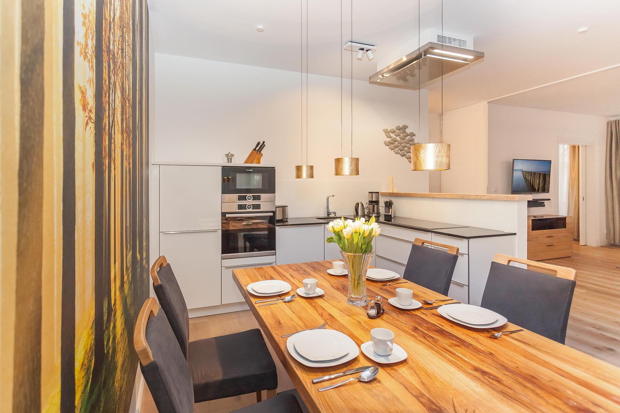Ganz nach Belieben haben Sie im FIRST auch die Möglichkeit, sich gastronomisch verwöhnen zu lassen. Denn nicht immer mag man ja selbst kochen, obwohl die perfekte Einrichtung Ihrer Küche in der Ferienwohnung geradezu dazu einlädt. Gleich in der Nähe gibt es für die Frühstücksbrötchen zwei Bäcker, auch verschiedenste Restaurants warten entlang der Wilhelmstraße auf Ihren Besuch.