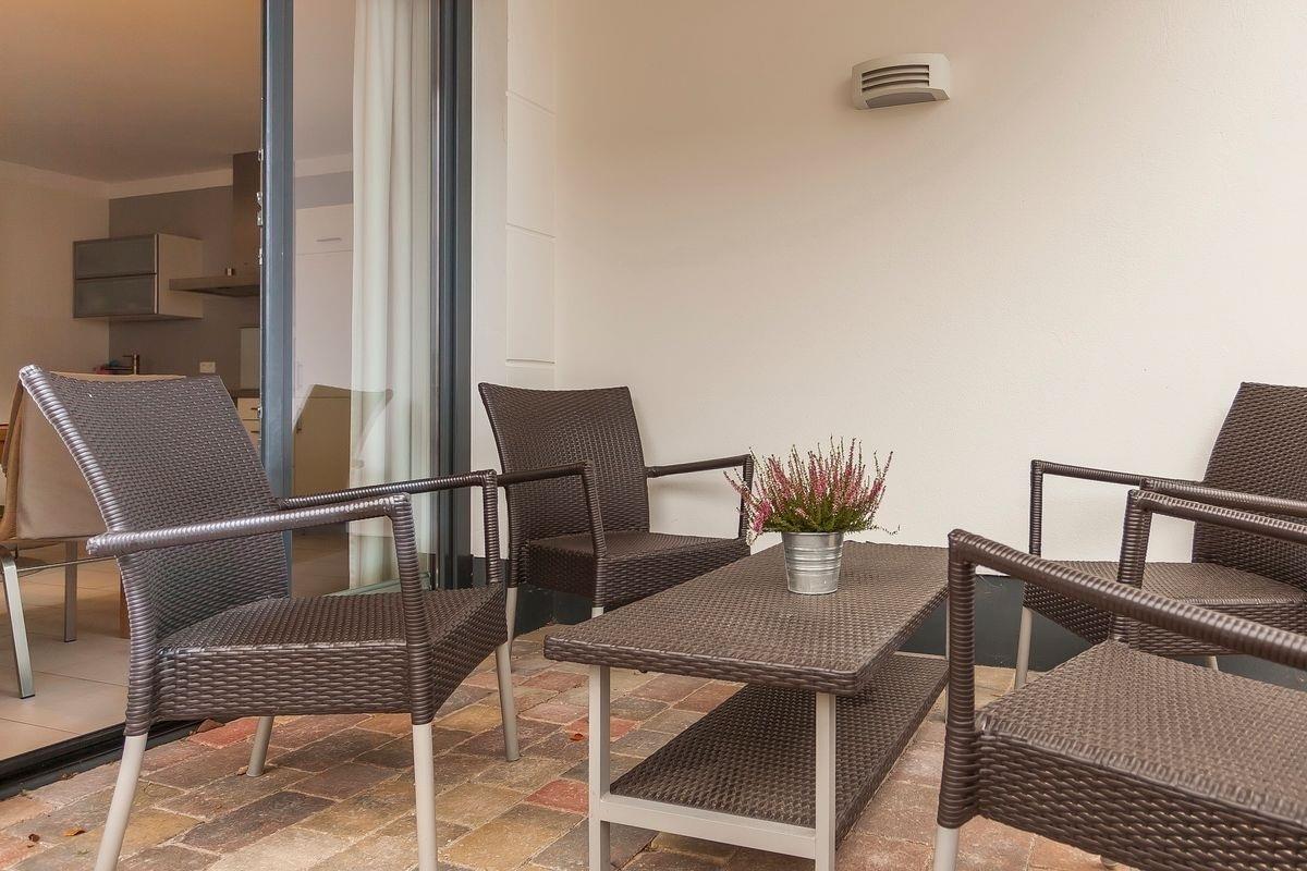 Das Doppelbett im Schlafzimmer ist geräumige 180 cm breit, im großen Schiebetürenschrank lassen sich alle Kleider problemlos unterbringen. Die hochwertig ausgestattete Markenküche im Wohn- und Esszimmer lädt Sie dazu ein, Ihren Kochkünsten freien Lauf zu lassen. Sehr angenehm fällt auch die Fußbodenheizung auf und bildet mit dem schmucken Bad mit seiner bodentiefen Dusche ein weiteres Highlight Ihres Urlaubsdomizils. Auch die technische Ausstattung Ihrer FeWo kann sich sehen lassen: 32“ Kabel-Fernseher, Mini-Stereoanlage und kostenfreies W-LAN sorgen für Unterhaltung und Abwechslung. Ein Balkon mit bequemer Lounge-Sitzgruppe rundet das Ganze perfekt ab. Wir heissen Sie HERZLICH WILLKOMMEN!