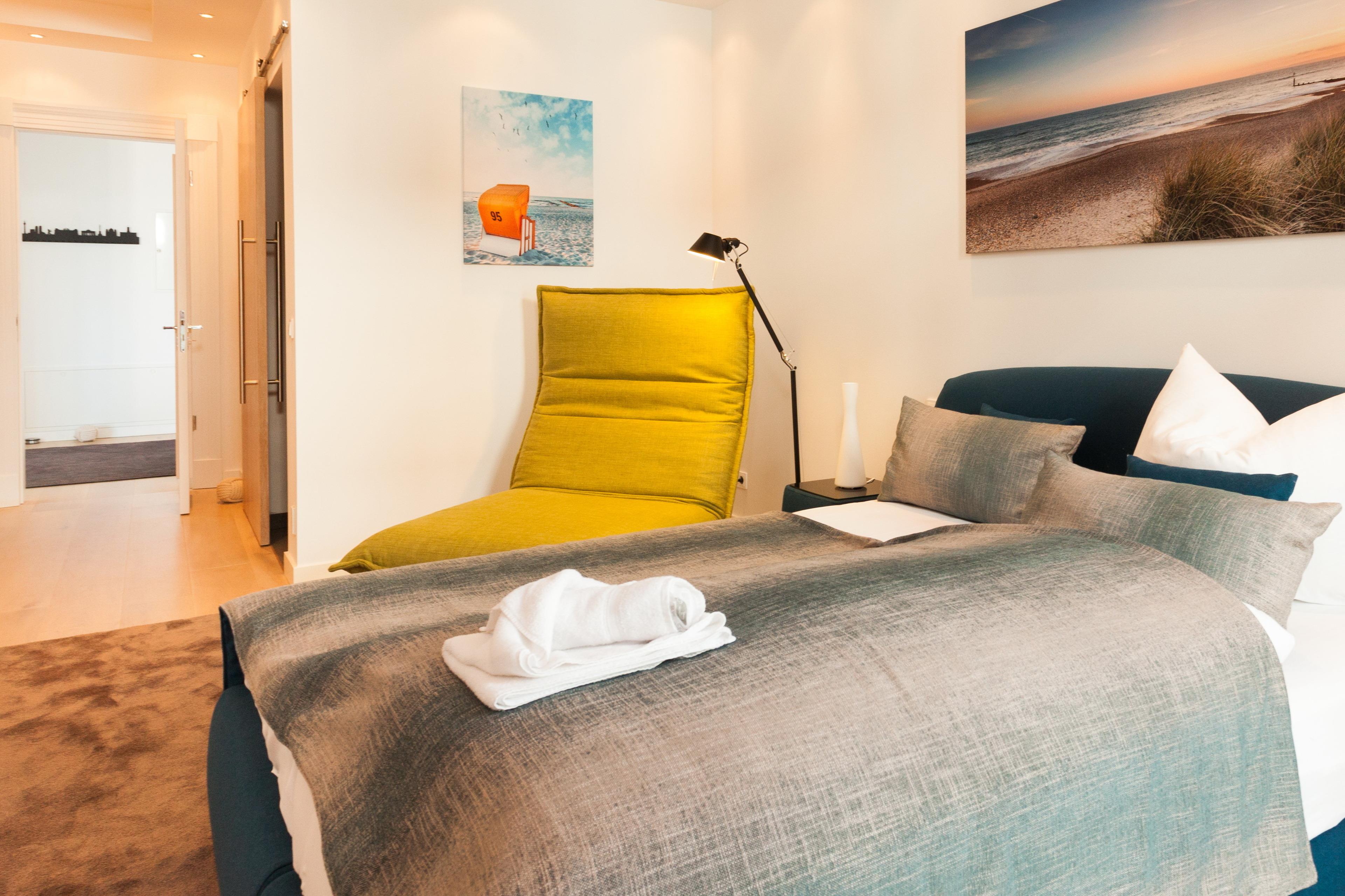 Zwei kuschlige Schlafzimmer mit Doppelbett und angrenzenden Ensuite-Bädern mit ebenerdigen Duschen bieten Ihnen jeglichen Komfort. Und auch die technische Ausstattung Ihres Appartements hat es in sich, denn neben kostenfreiem W-LAN erwartet Sie überall High-Tech vom Feinsten.