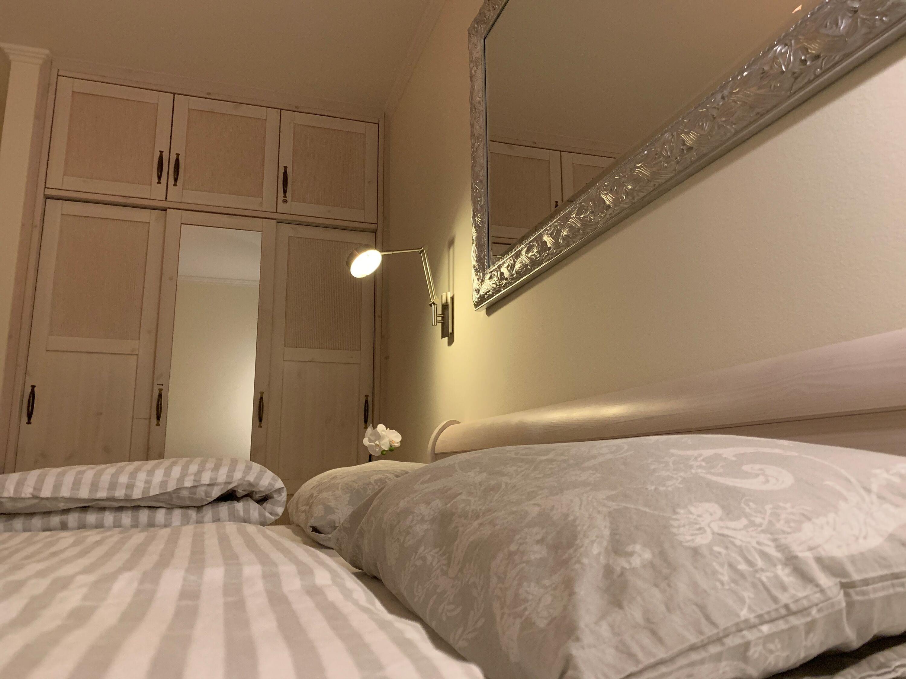 Die 42 qm große Ferienwohnung für 2 Personen ist in allen Räumen mit Stuck und dimmbaren Kronleuchtern ausgestattet. Der sonnige Südwest-Balkon liegt über der einmaligen Wilhelmstraße. Wohn- und Schlafzimmer besitzen weiße HD-Flachbildfernsehern an der Wand. Sie verfügen über Fußbodenheizung, W-Lan, Tiefgaragenparkplatz, von wo Sie direkt mit dem Fahrstuhl zur Wohnung fahren können. Das hochwertige Doppelbett verwöhnt Sie in einer Komforthöhe, das Schlafzimmer ist verdunkelbar. Der Duschbereich im Bad ist offen und auf Flusskieseln gebettet. Die Küche ist bestens ausgestattet.