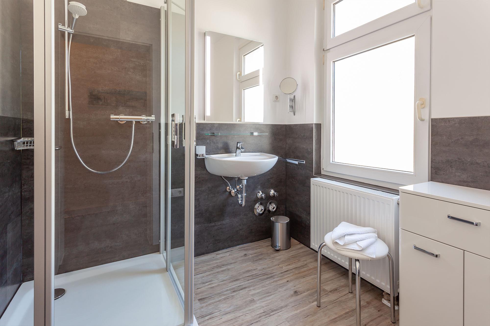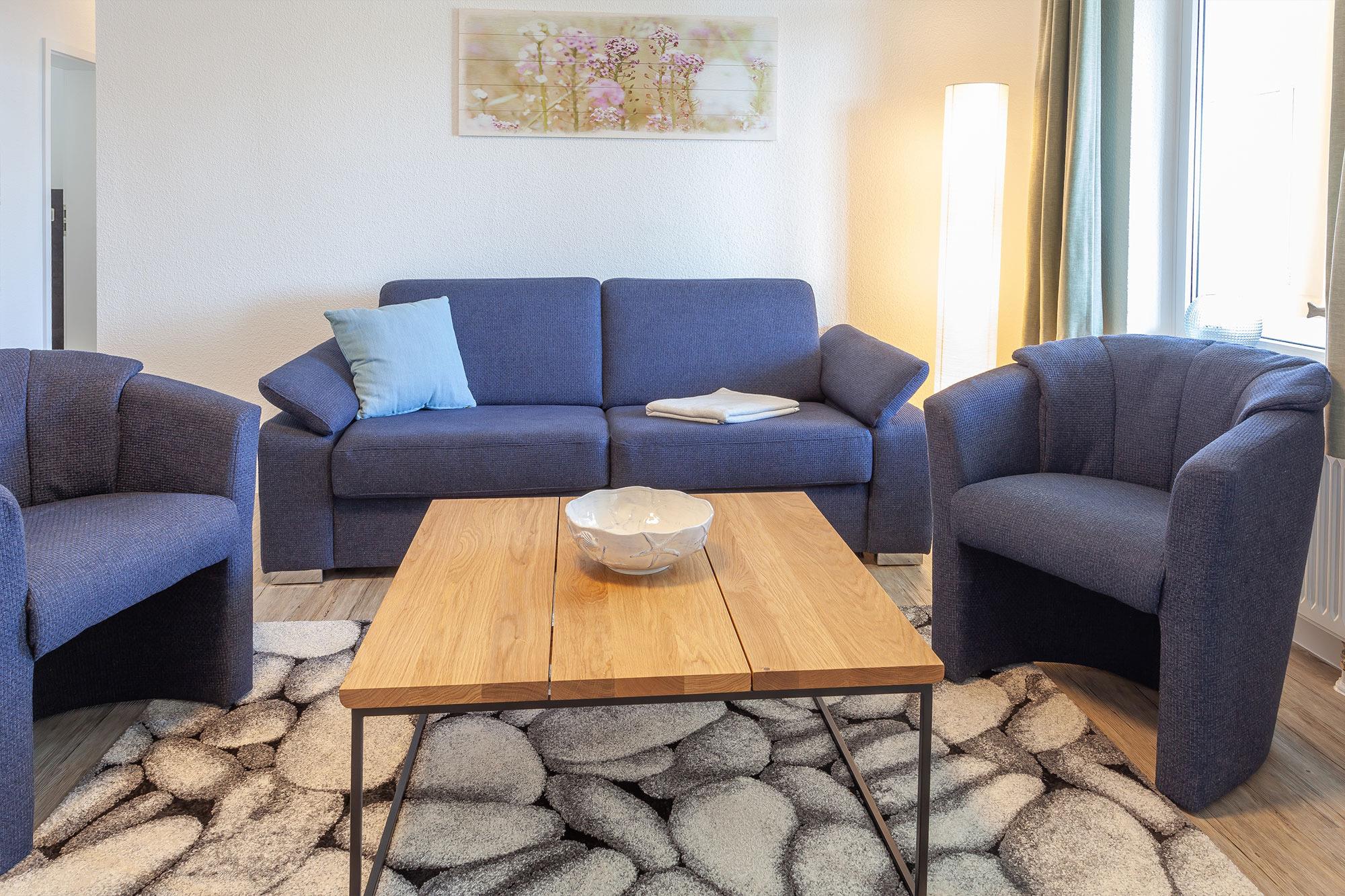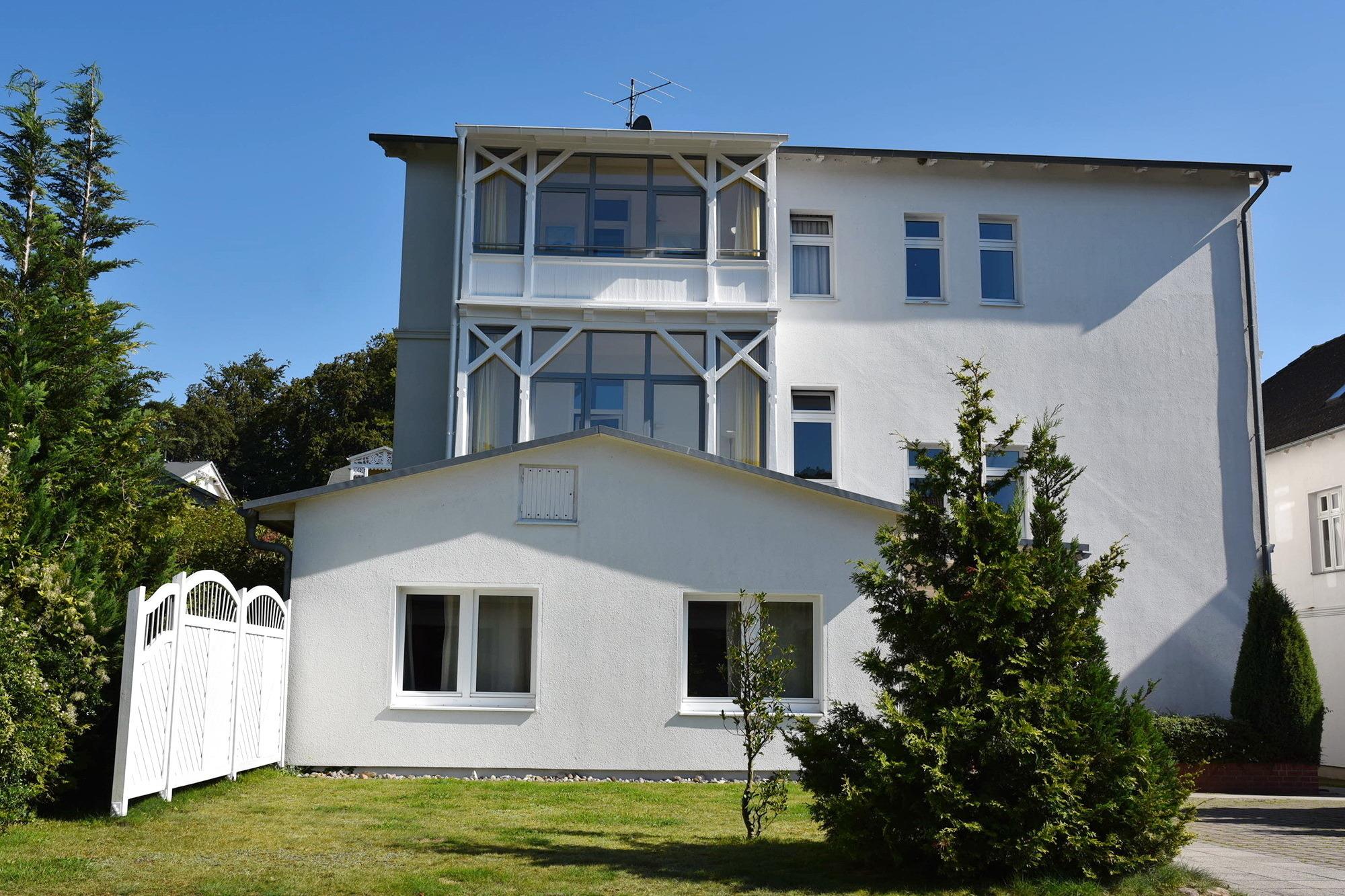 Die in der Villa Meeresgruss gelegene Ferienwohnung bietet auf 70qm Platz für bis zu 4 Personen. Eine Aufbettung zur 3. und 4. Person befindet sich im offenen Wohnbereich, dieser ist ausgestattet mit einer Schlafcouch (Federkernauflage). Der Wintergarten lädt mit Blick auf die Wilhelmstrasse zum Verweilen ein. Die vollausgestattete Einbauküche im Wohnbereich lässt keine Wünsche offen, hier können Sie gemeinsam kochen und den Abend bei einem Glas Wein im Wintergarten ausklingen lassen.