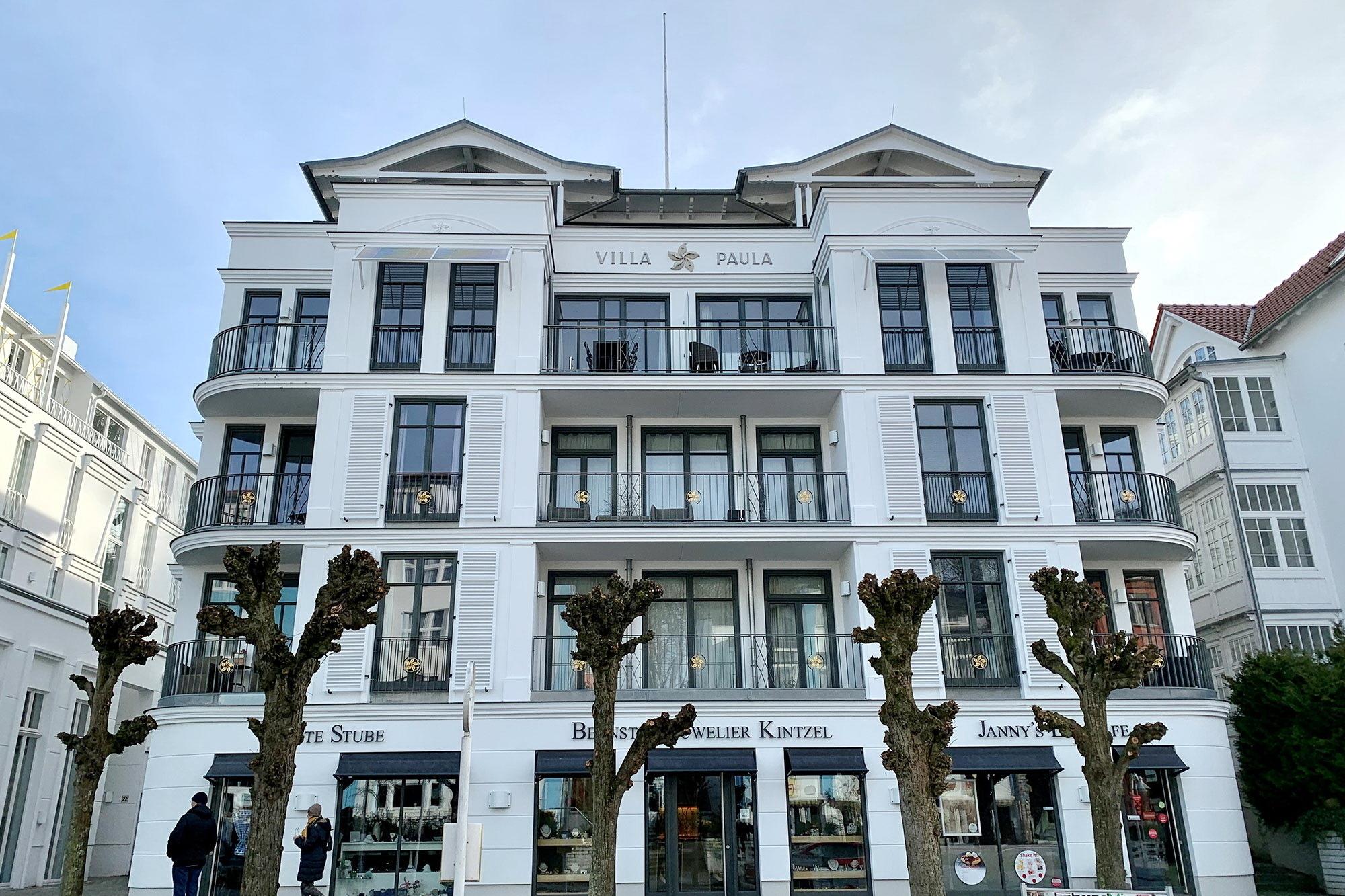 Erleben Sie einen exklusiven Urlaub in der Ferienwohnung Silbermöwe in der Villa Paula im beschaulichen Ostseebad Sellin. Die 103 qm große 3-Zimmer-Ferienwohnung befindet sich zentral gelegen in der Wilhelmstraße und verfügt über einen Tiefgaragenstellplatz. Die Ferienwohnung ist für 4 Personen ausgelegt. Die Wohnung befindet sich im dritten Obergeschoss und ist mit dem Aufzug, auch von der Tiefgarage aus erreichbar.
