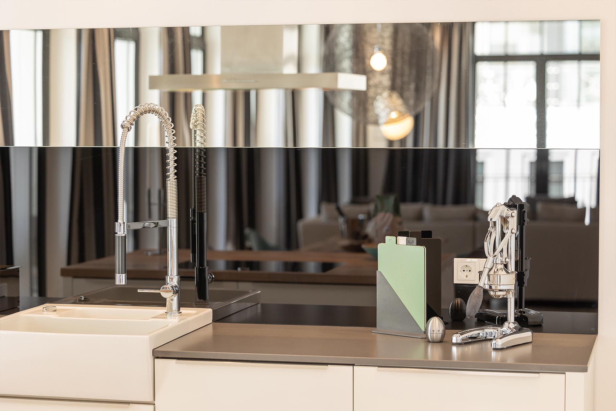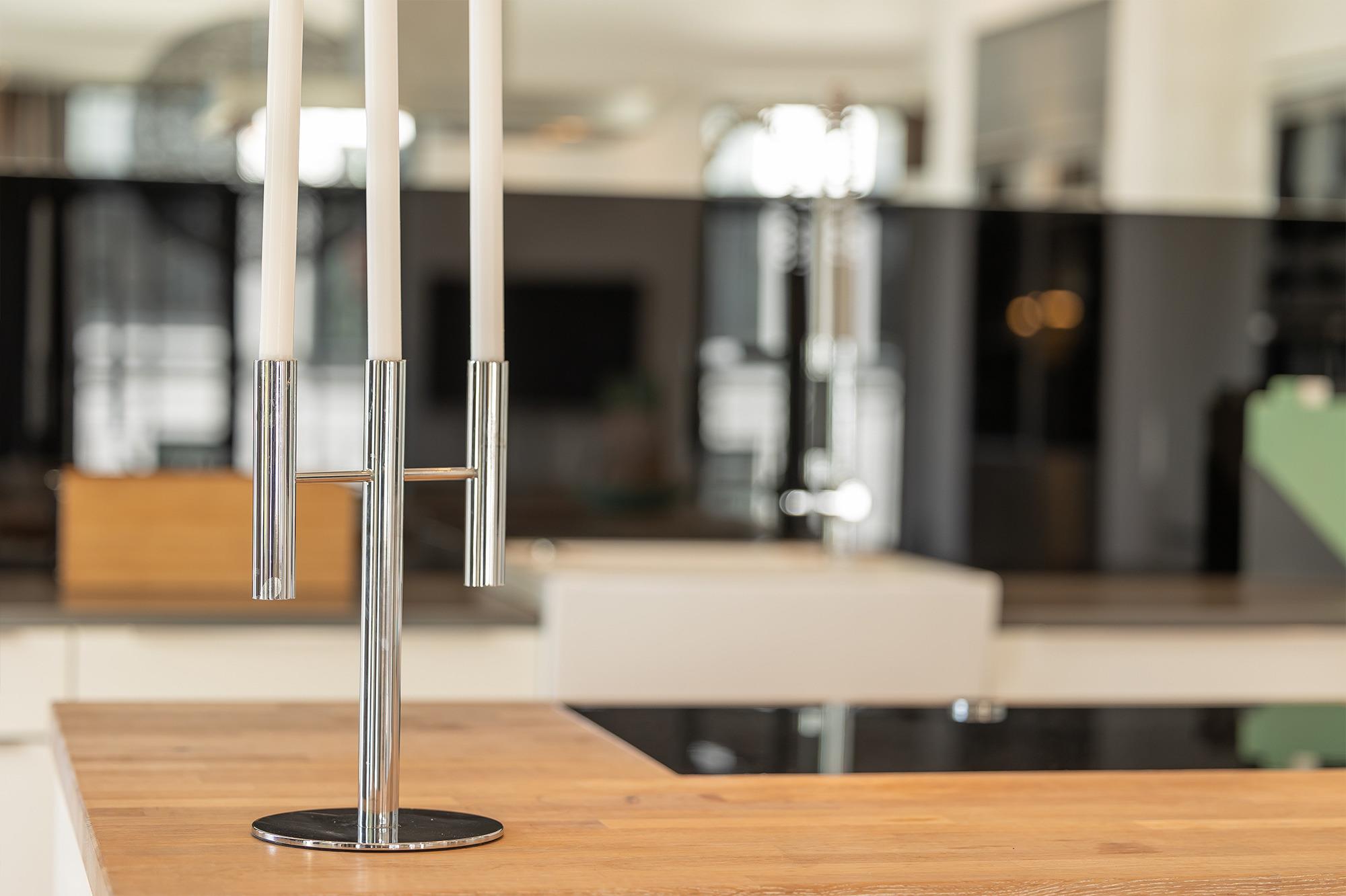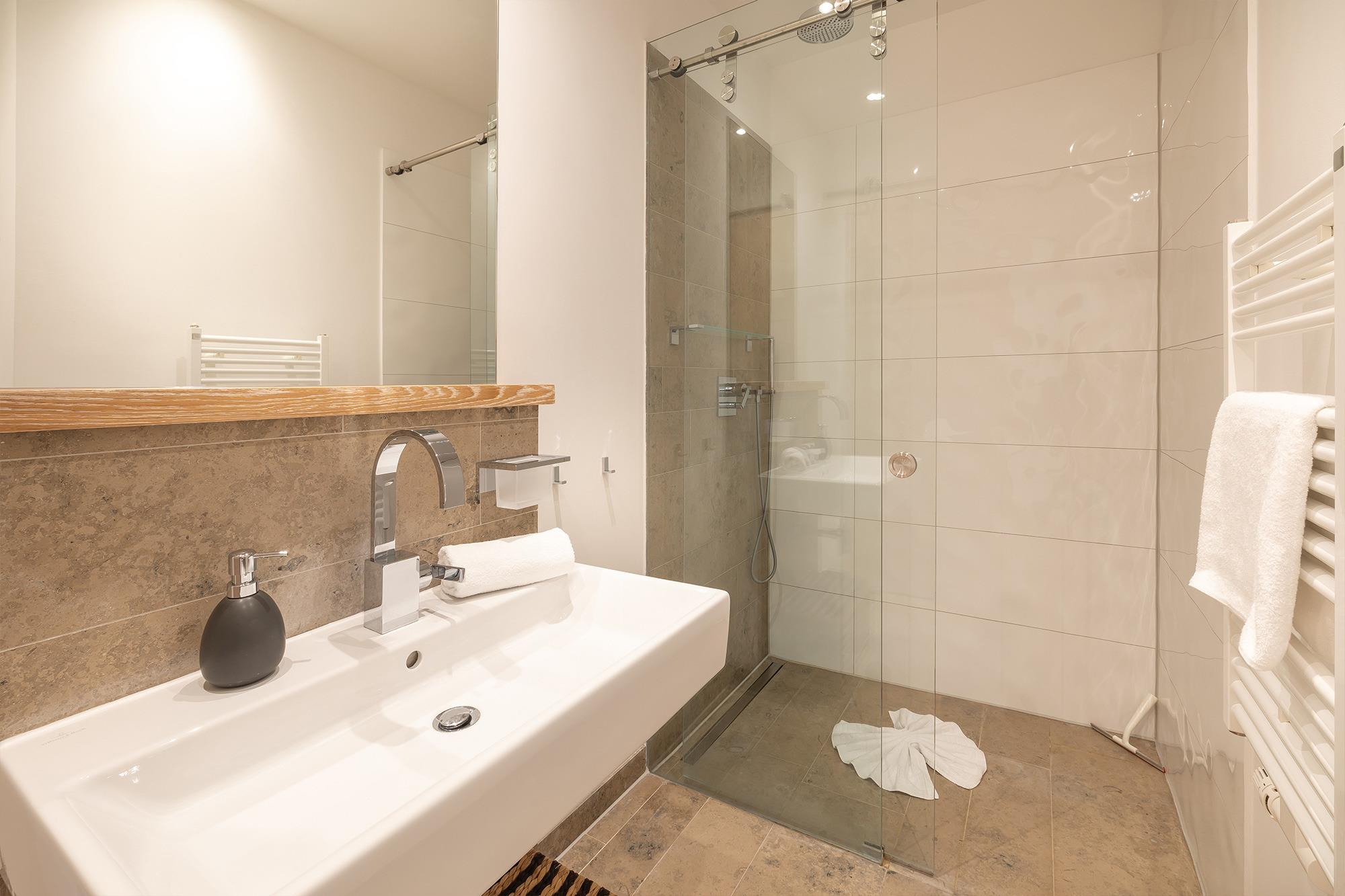 Die beiden Etagen sind durch eine Eichentreppe mit einander verbunden. Von hier aus gelangen Sie in den Lichtdurchfluteten, weiträumigen und offenen Wohn-, Koch- und Essbereich und dem 2. Schlafzimmer mit Ensuite-Bad. Das kuschlige Schlafzimmer mit Doppelbett und angrenzendem Ensuite-Bad und einer ebenerdigen Dusche bietet Ihnen jeglichen Komfort. Die offene und hochwertig ausgestattete Luxusküche mit Küchengeräten der Marke NEFF und professionellem Equuipment lässt keine Wünsche offen. Der große Esstisch bietet Ihnen Platz für ein gemütliches beisammensein.