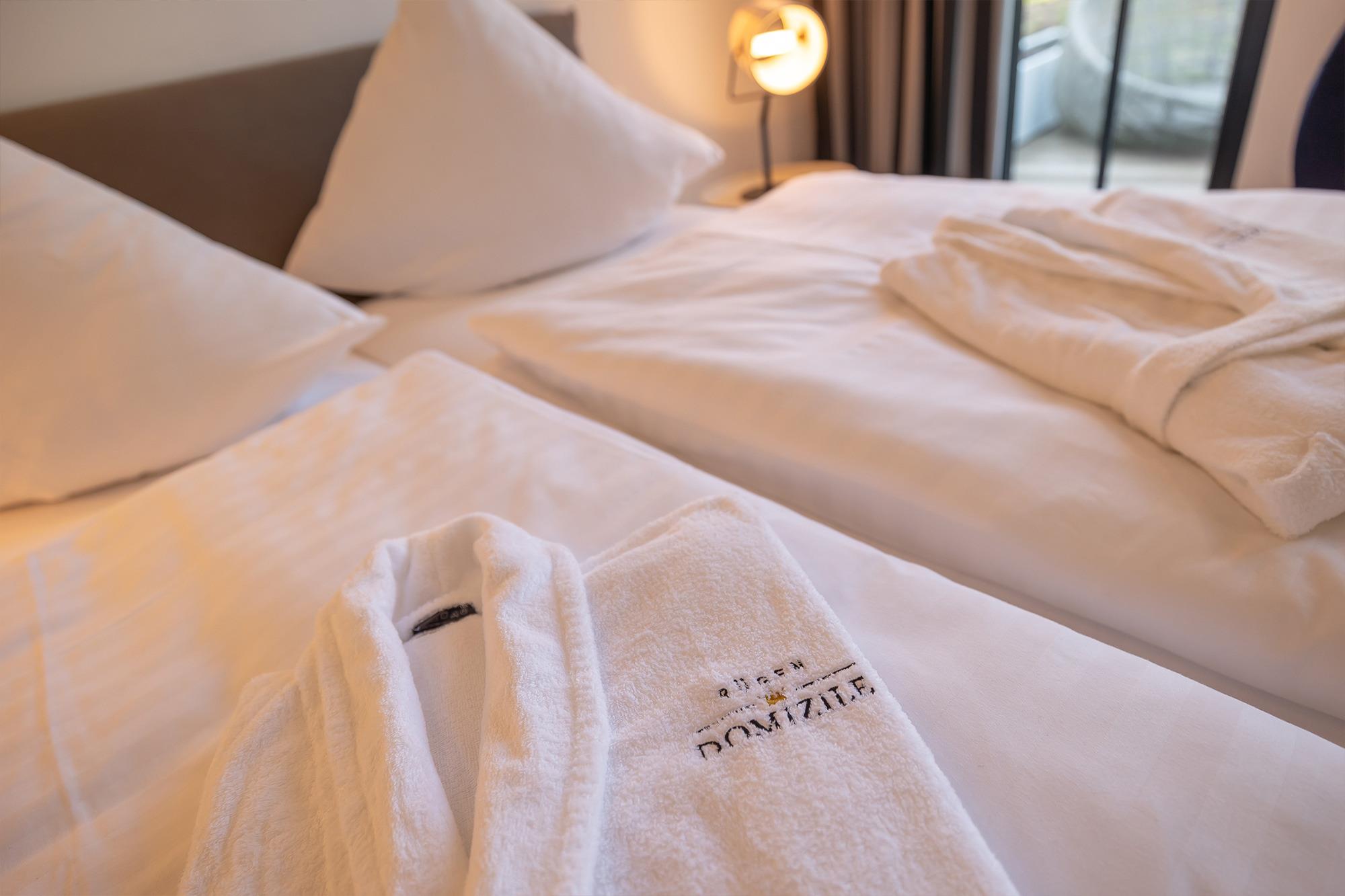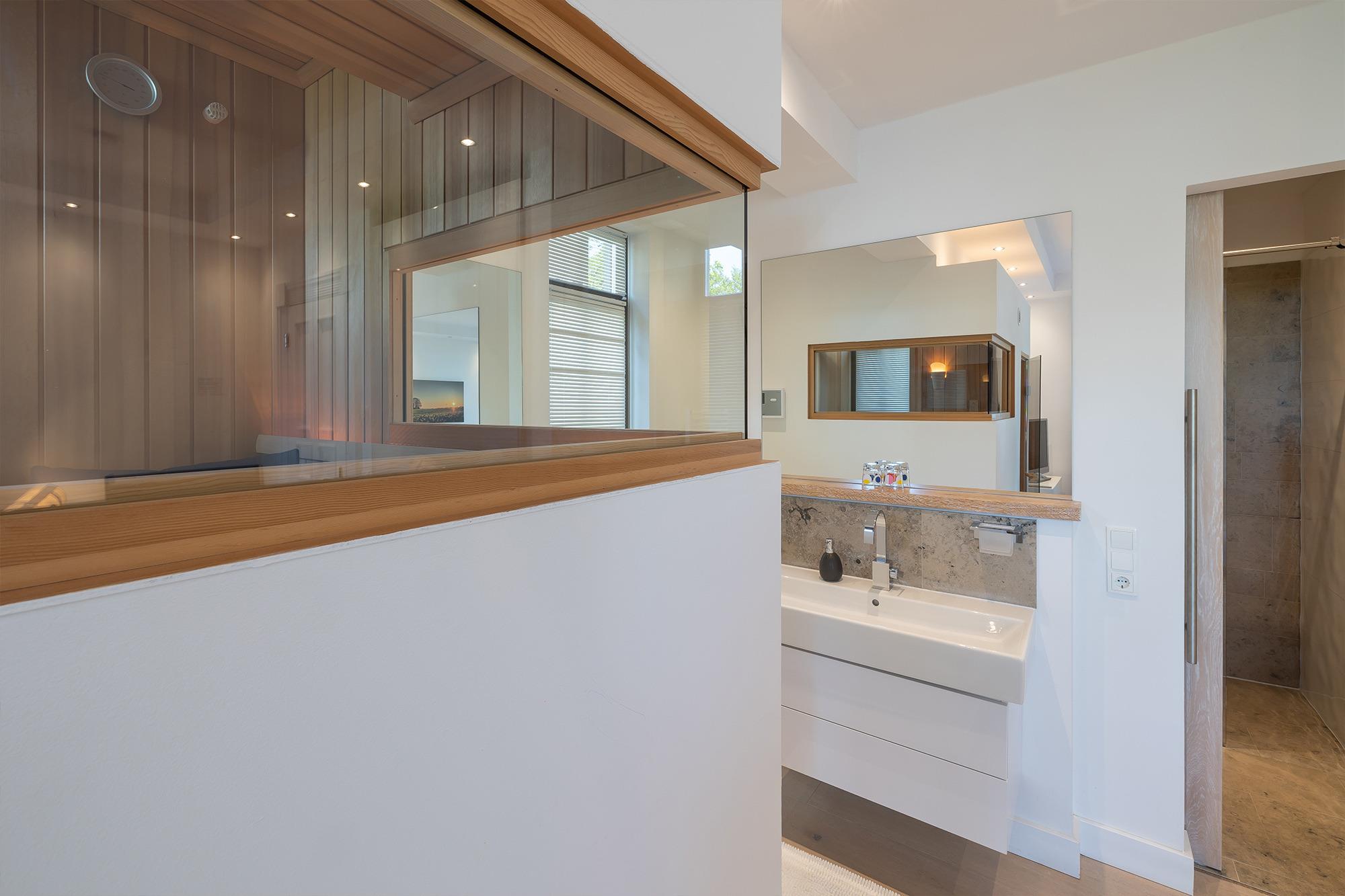 Das Hauptschlafzimmer überzeugt mit einem direkten Zugang zur möblierten Terrasse und einer hauseigenen Sauna sowie einem Bad en suite. Die Kombination aus Schlafzimmer und Badezimmer ist einzigartig und vermittelt eine luxuriöse Atmosphäre und lässt ein großzügiges, weitläufiges Raumgefühl entstehen.[nbsp] Das Kinderzimmer ist ausgestattet mit einem Hochbett und einer ausklappbaren Schlafmatratze die sich ruckzuck in ein Sofa zum Entspannen umbauen lässt.