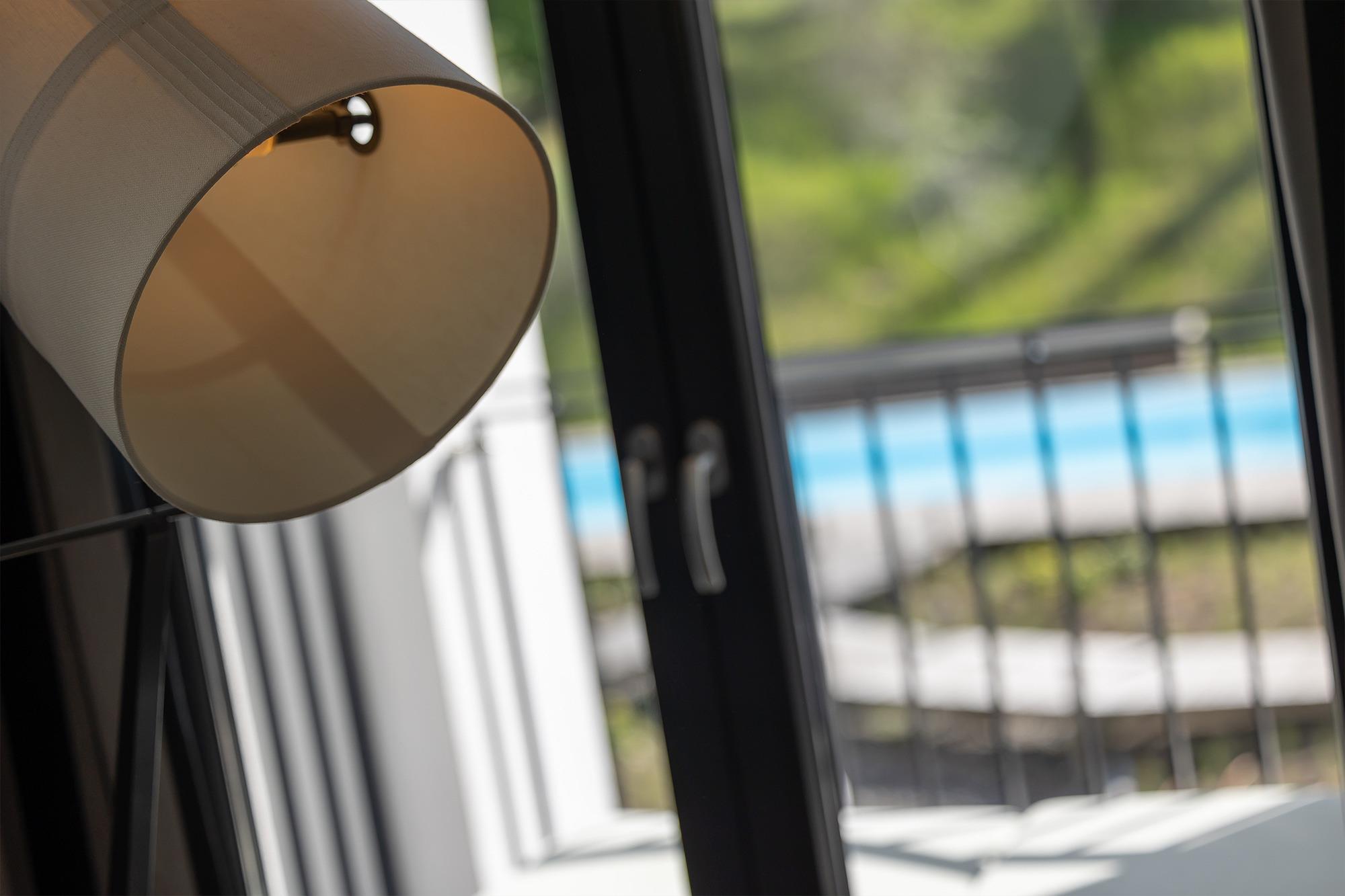 Im Erdgeschoss befinden sich noch ein Gäste-WC und ein großzügiger Kleiderschrank der sich über den kompletten Flur erstreckt. Vom hauseigenen Flur aus haben Sie die Möglichkeit direkt zum hauseigenen, solarbeheizten Aussenpool zu gelangen.