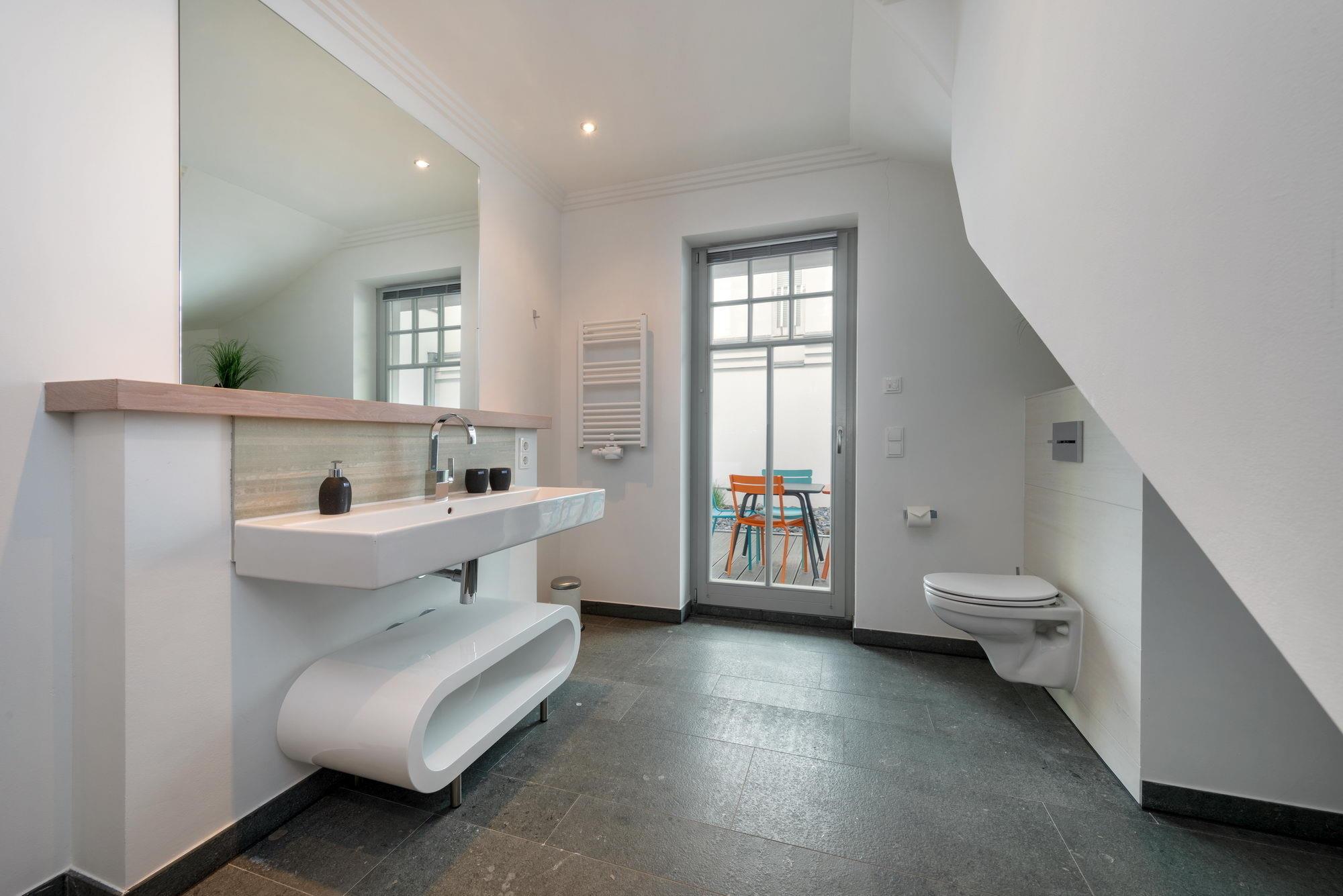 Urlaub high-end in idealer Lage zum Strand! Das Appartement Dolphin erstreckt sich über das erste und zweite Obergeschoss der Villa Theres auf der von der Wilhelmstraße abgewandten Seite und begeistert mit stolzen 164 qm Wohnfläche und einer Ausstattung vom Allerfeinsten.