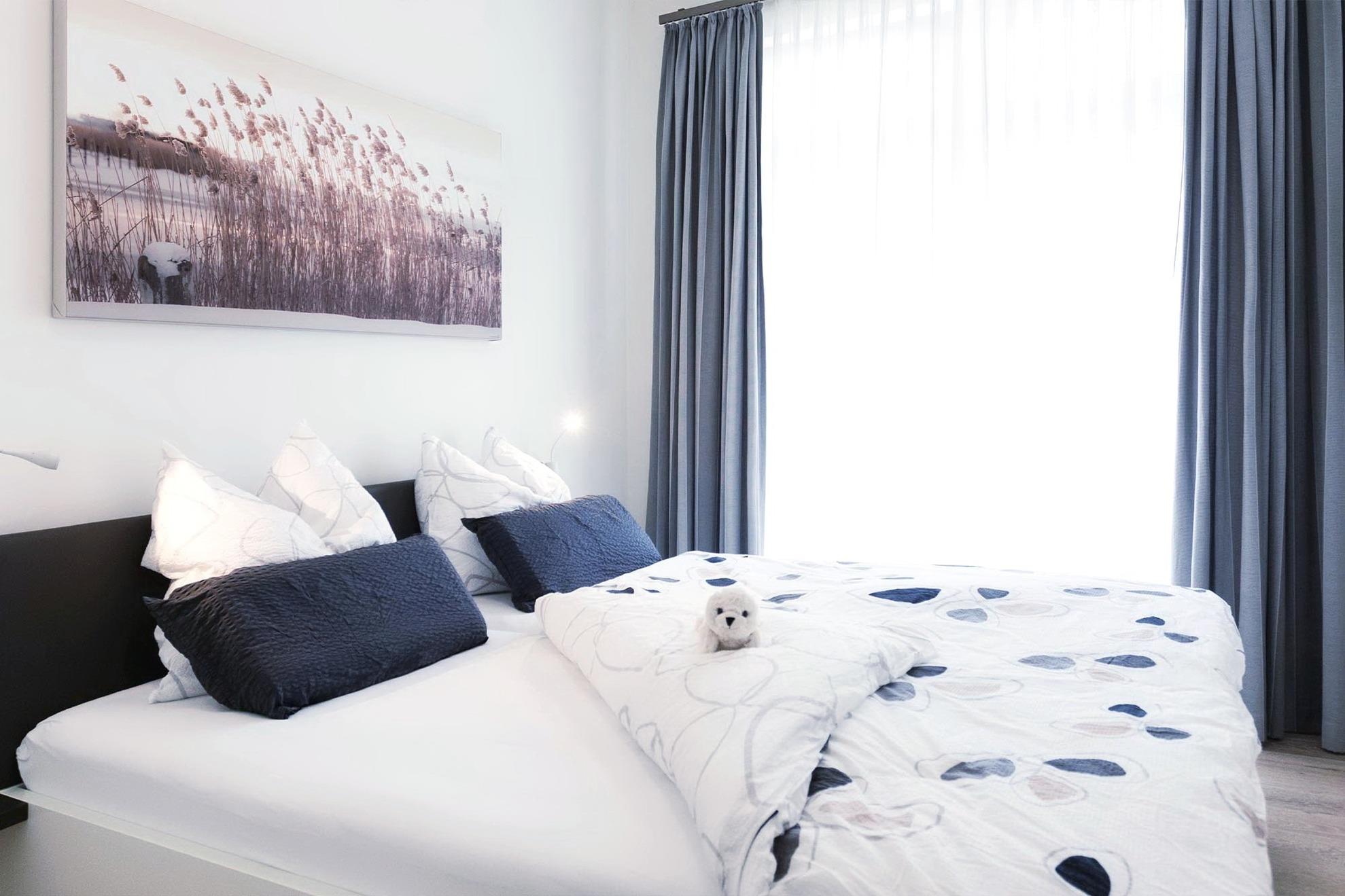 Gesundheitsmatratzen und Oberbetten werden in Sondergröße (155x220 cm) bereitgestellt, so dass zu jeder Jahreszeit Ihre ganz individuellen Schlafbedürfnisse vollumfänglich erfüllt werden können. WLAN, Einstellplatz, Aufzug und moderne Technik gehören selbstverständlich zum Standard der Ferienwohnung „Einkehr“. Der wohnungseigene Strandkorb rundet dieses Wohlfühlerlebnis ab und garantiert Ihnen ruhige Stunden der Erholung in erstklassiger Umgebung. Darüber hinaus stehen Ihnen zwei Trekkingräder kostenfrei zur Verfügung, damit Sie die wunderschöne Gegend rund um das bekannte Ostseebad Sellin jederzeit entspannt erkunden können.