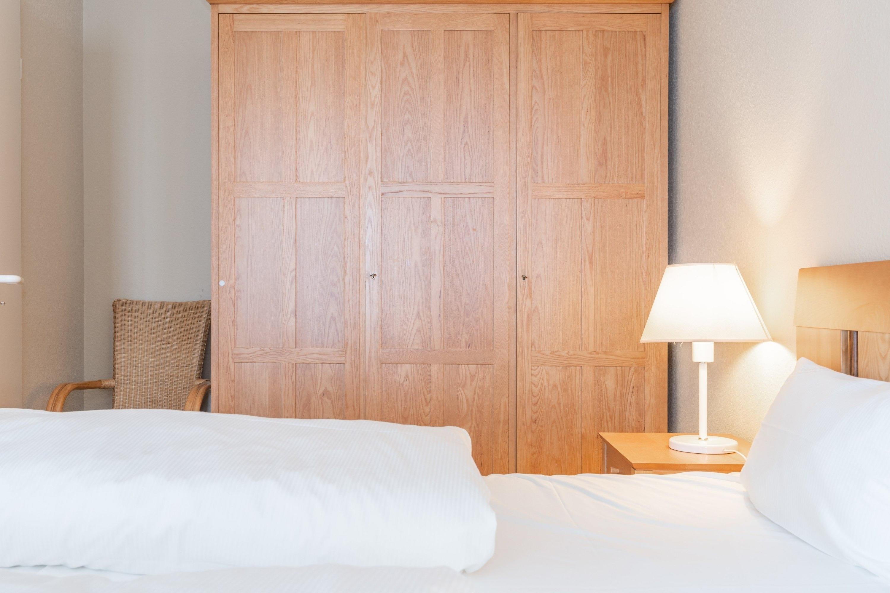 Die Ausstattung der Ferienwohnung umfasst ein TV-Flachbild, eine Kaffeemaschine (Filter) sowie Bettwäsche, die bereits im Preis inklusive ist. Auf dem Balkon können Sie die sonnigen Tage genießen und in der offenen Wohnküche gemeinsam Mahlzeiten zubereiten. Für Fahrräder steht ein Fahrradkeller zur Verfügung und ein WLAN Anschluss sowie ein TV mit Sky-Sendern sind ebenfalls vorhanden. Ein Tiefgaragenstellplatz sorgt für einen sicheren Parkplatz für Ihr Auto. Für einen stressfreien Start in den Tag können Sie gerne den Brötchenservice nutzen.