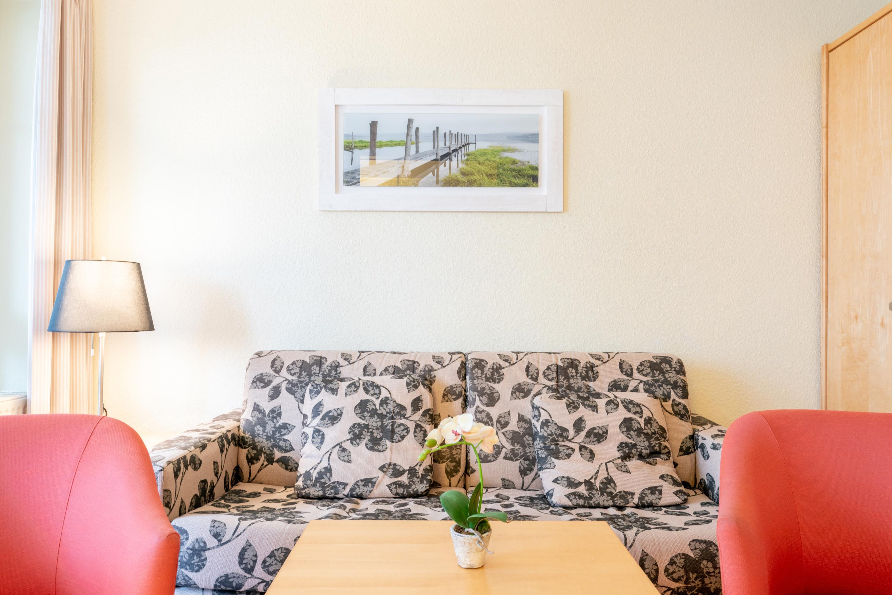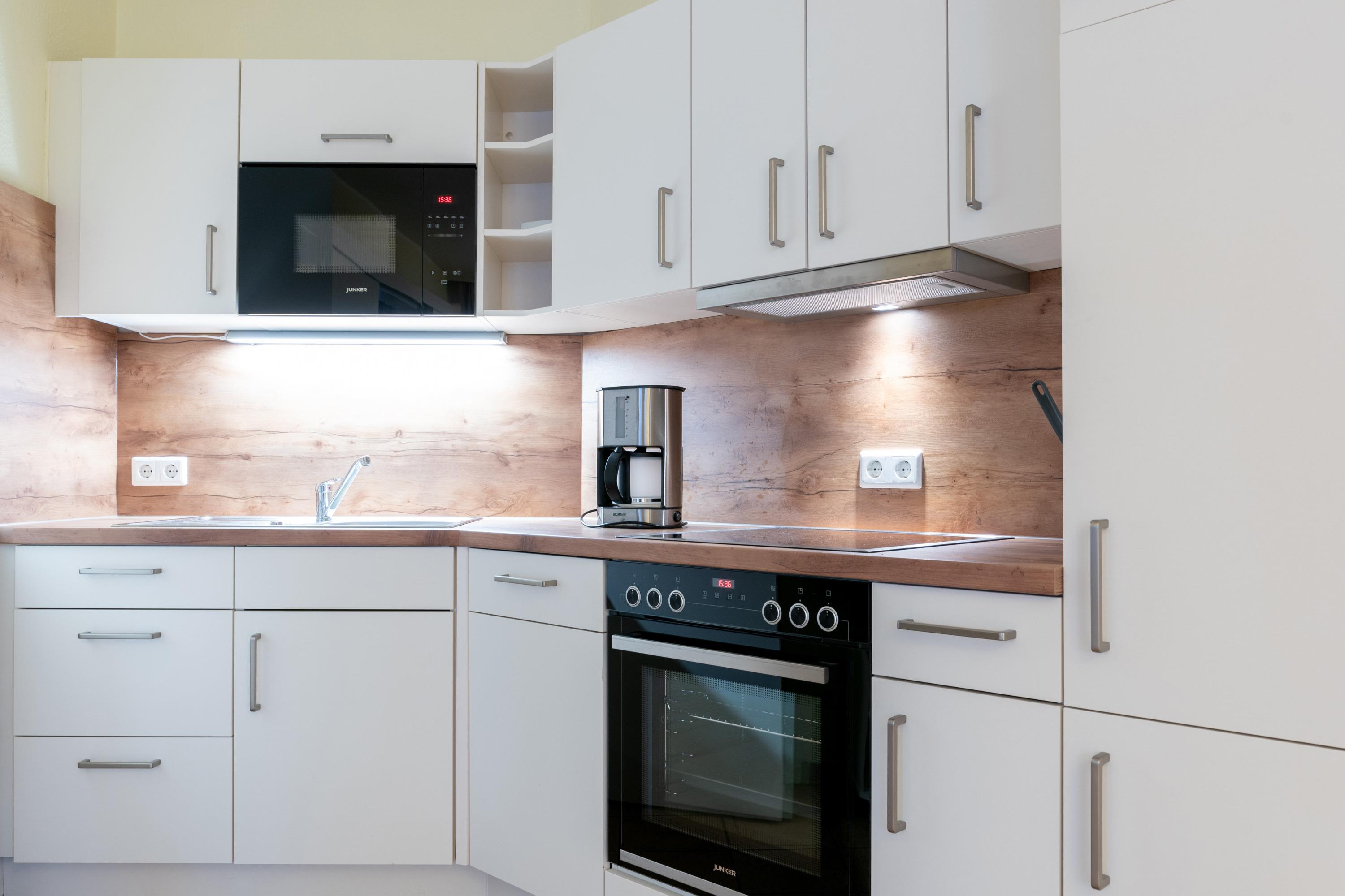 Die Ausstattung der Wohnung umfasst unter anderem einen Flachbildfernseher, eine Kaffeemaschine (Filter), eine Mikrowelle und einen Geschirrspüler. Die Bettwäsche ist bereits im Preis inklusive. Ein großer Pluspunkt ist der Balkon, auf dem man gemütlich die frische Luft genießen kann. Die offene Wohnküche bietet ausreichend Platz zum Kochen und Essen.