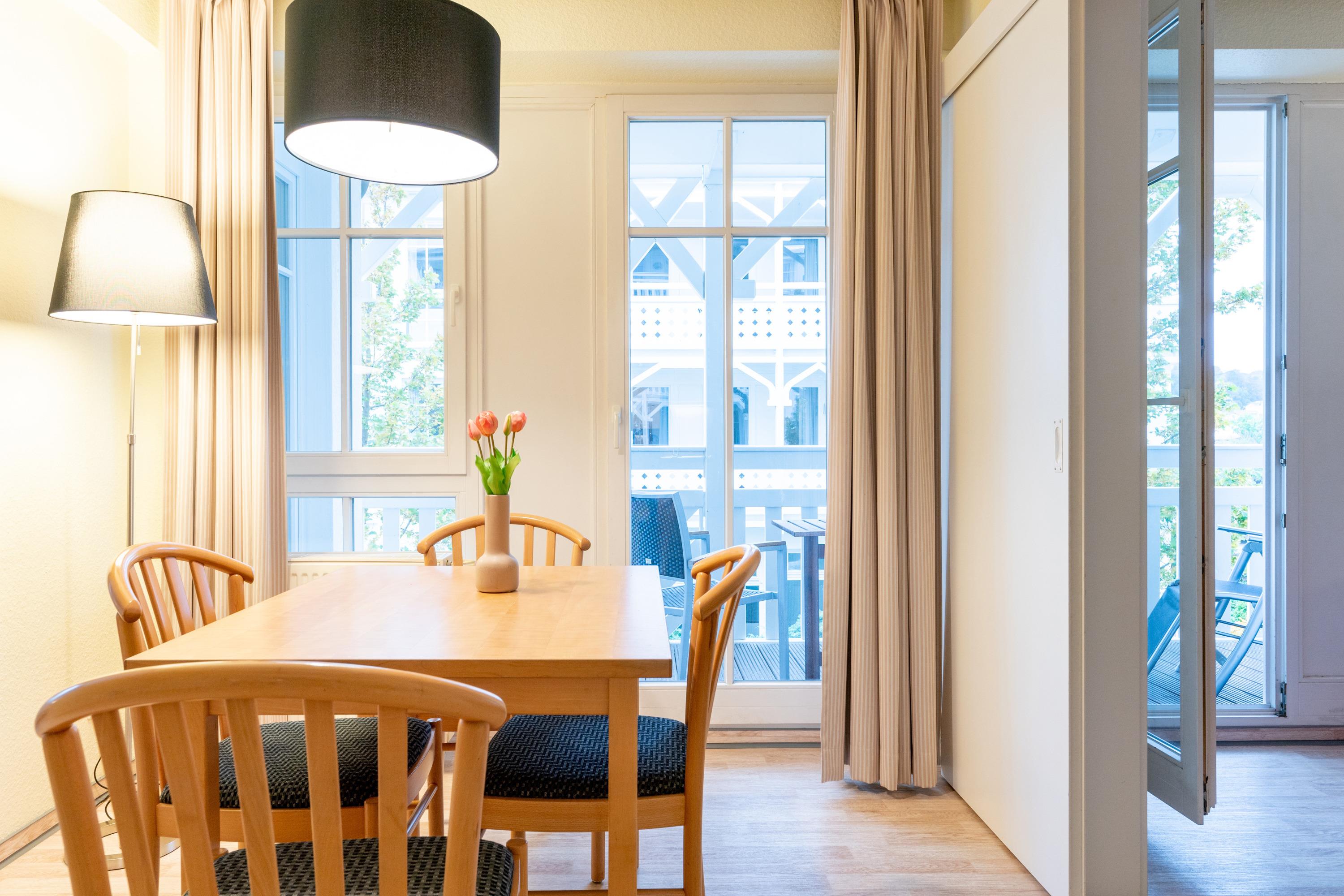 Die Ferienunterkunft 324 im Seepark Sellin, befindet sich im Haus "Haus Having" und bietet auf 52 m² Platz für maximal 4 Personen. Die Wohnung befindet sich in der 1. Etage und ist somit bequem über Treppen oder einen Aufzug zu erreichen.