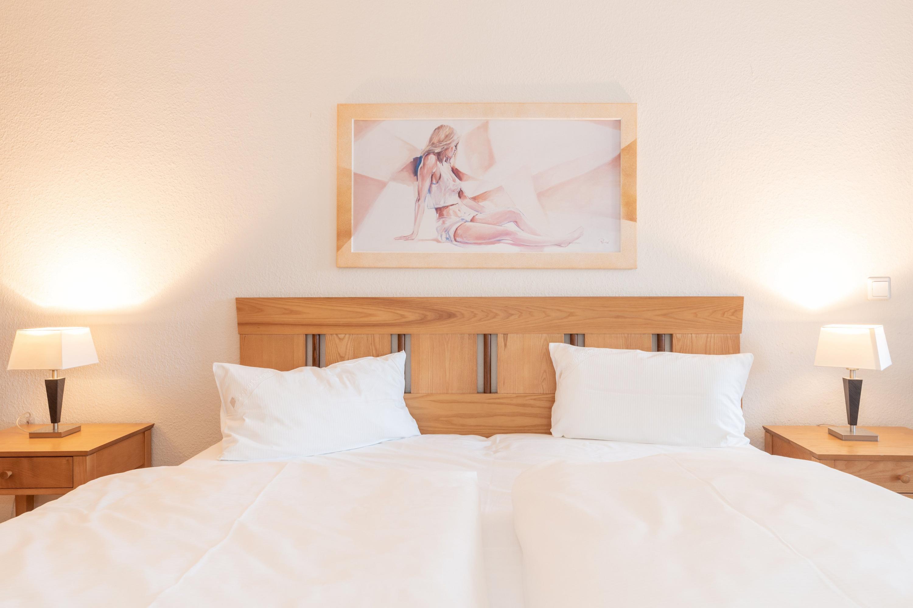 Die Ferienwohnung verfügt über kostenfreies WLAN und die Erstausstattung an Bettwäsche ist inklusive. Das Schlafzimmer mit Verdunklung verfügt über ein Doppelbett, im Wohnzimmer befindet sich zusätzlich eine Doppelschlafcouch. Darüber hinaus verfügt die Ferienwohnung über ein Bad mit Dusche/WC und Föhn. Die voll ausgestattete, offene Küche mit Backofen, Geschirrspüler, Kaffeemaschine und Toaster lässt keine Wünsche offen. Ein Fernseher inkl. 3 Sky-Sender rundet die Einrichtung ab.