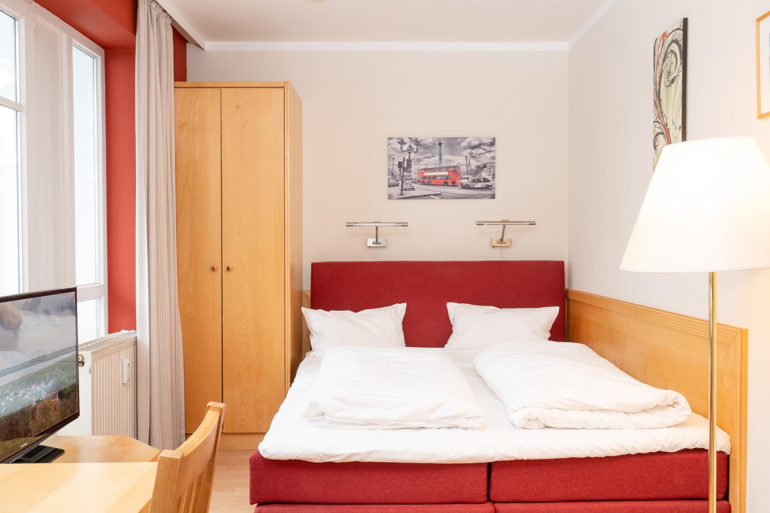 Die Ausstattung der Ferienwohnung umfasst unter anderem kostenfreies WLAN und eine Erstausstattung an Bettwäsche. Der kombinierte Wohn-/Schlafbereich verfügt über ein Doppelbett und ist mit Verdunklungsmöglichkeiten ausgestattet. Das Bad ist mit Dusche, WC, Föhn und Kosmetikspiegel ausgestattet. In der voll ausgestatteten Pantry-Küche finden Sie eine Kaffeemaschine und einen Toaster. Auch ein Fernseher mit 3 Sky-Sendern ist vorhanden.