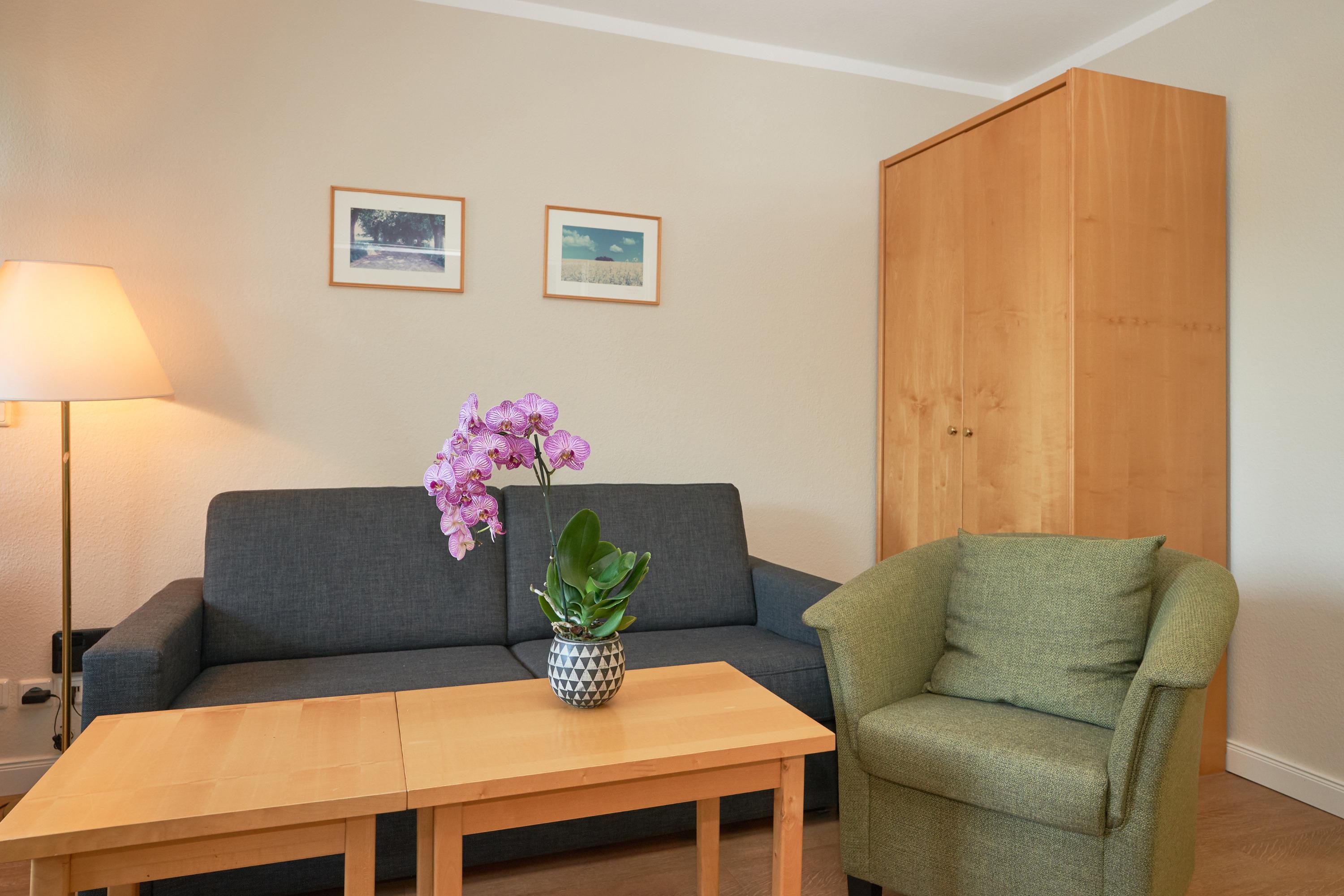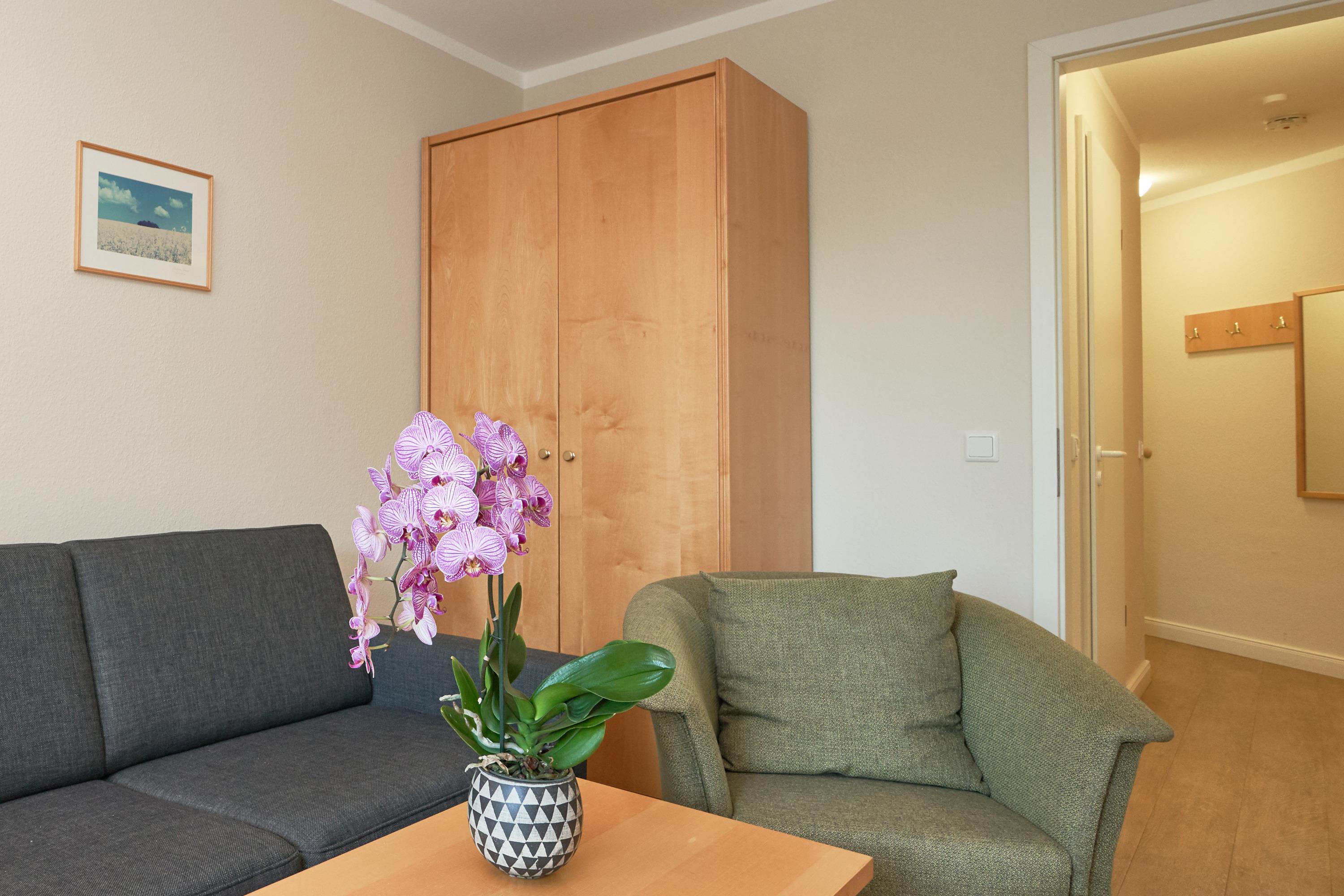 Sie befindet sich im 1. Obergeschoss der Ferienanlage Seepark Sellin, nur 900 m vom Strand und dem Selliner See entfernt. Einkaufsmöglichkeiten und ein Bäcker sind auch zu Fuß in der Ferienanlage erreichbar.