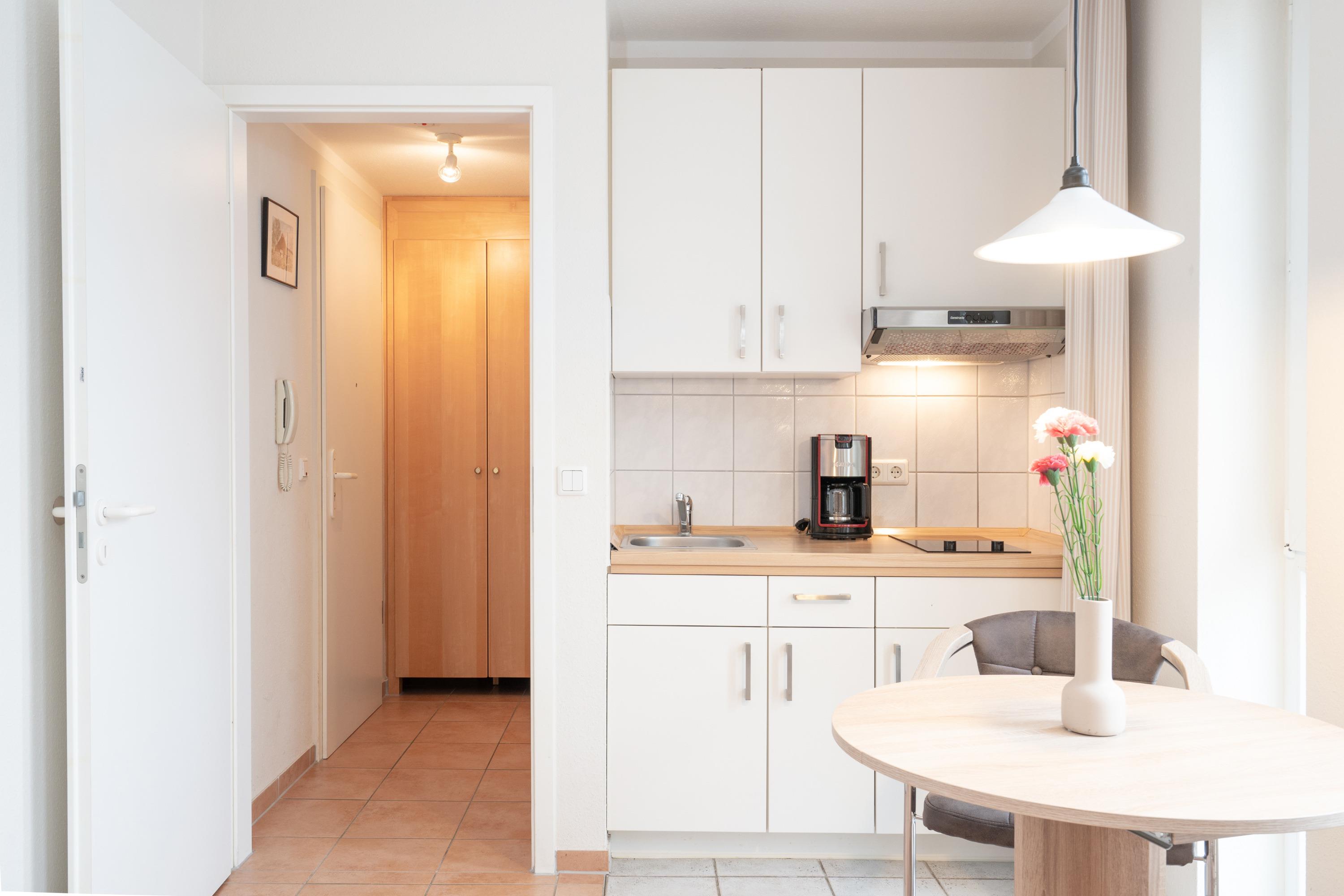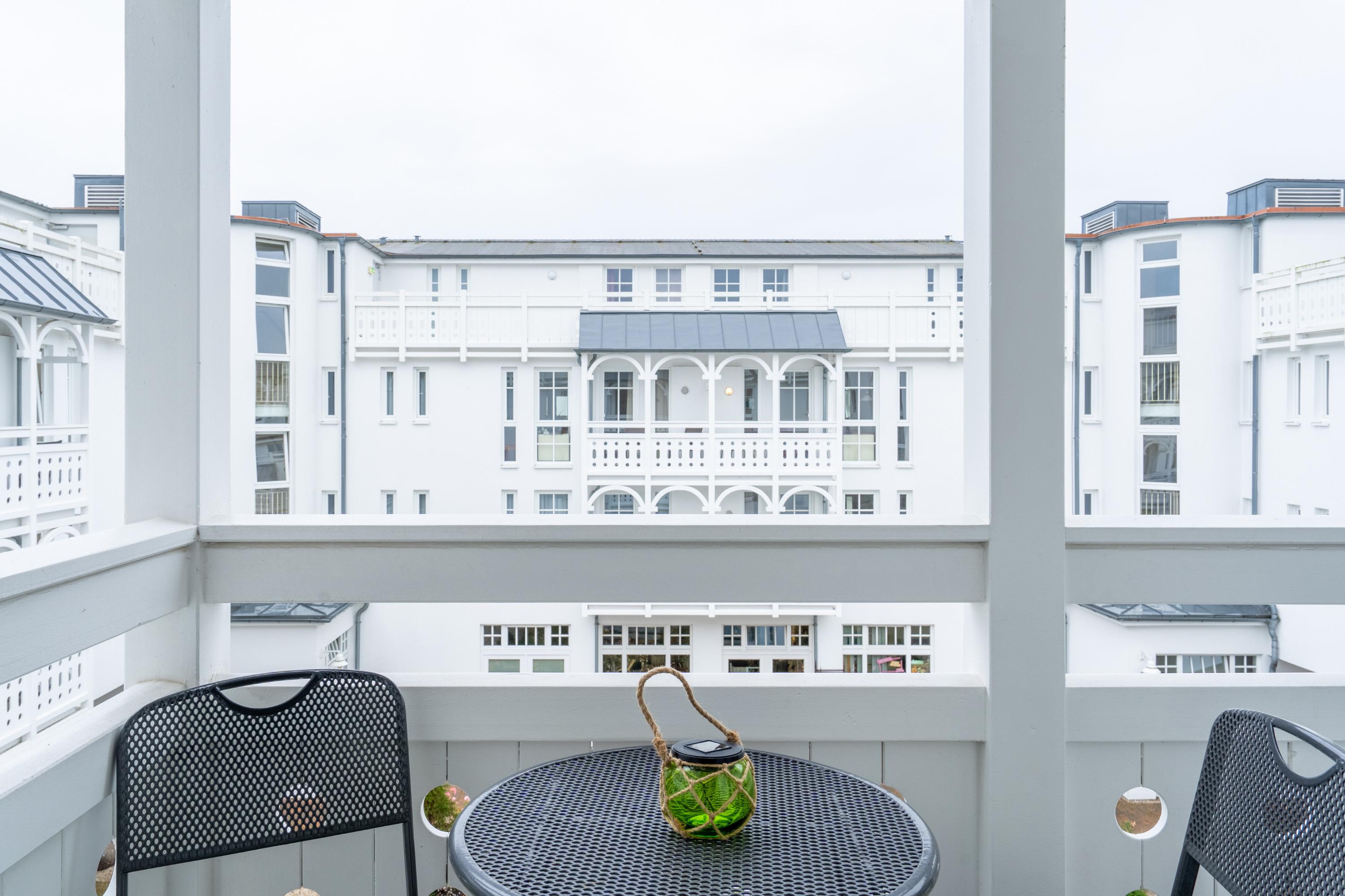 Nach einem erlebnisreichen Urlaubstag können Sie auf dem Balkon in Nordostlage Platz nehmen. Im Nichtraucher-Apartment sind keine Haustiere gestattet.
