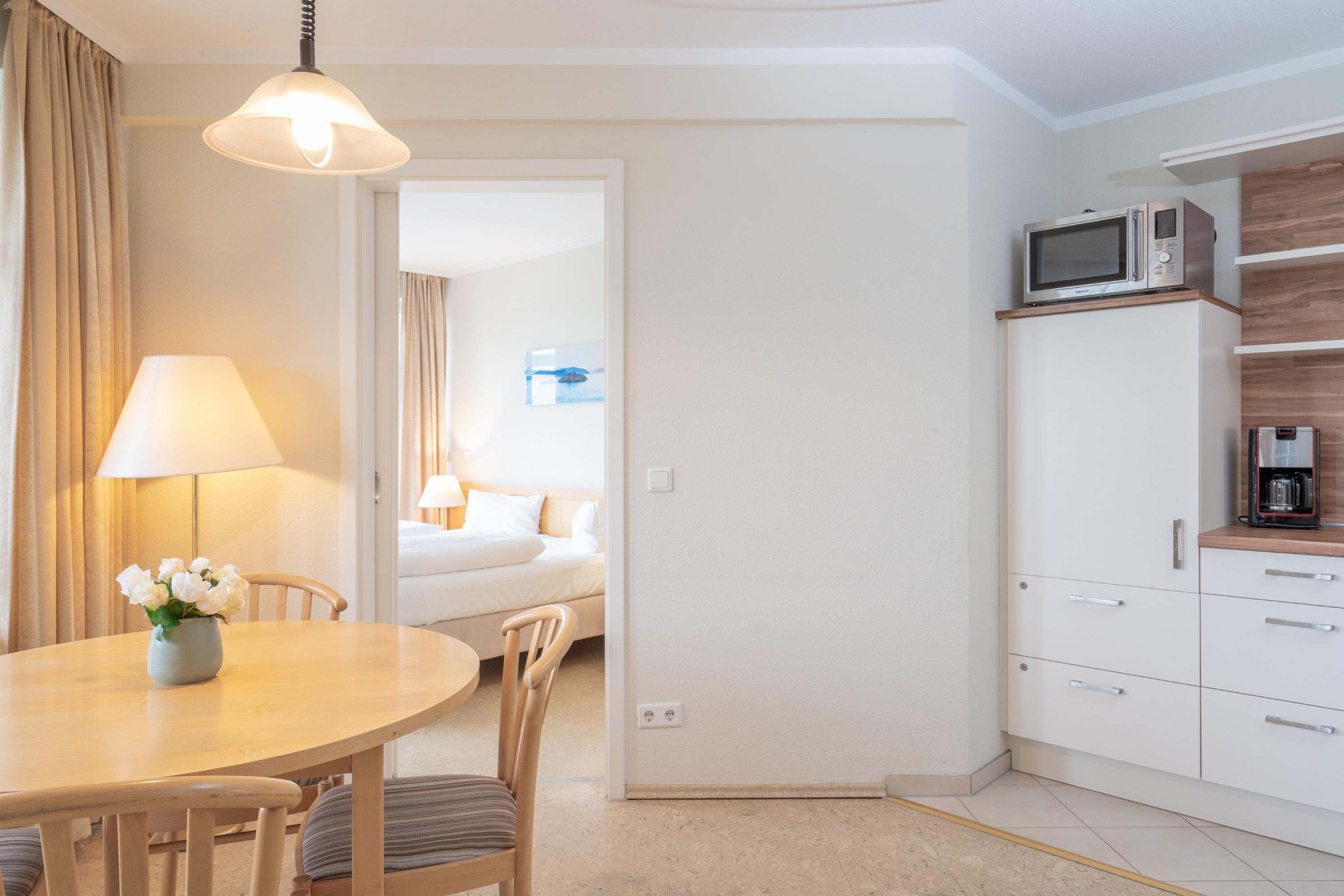 Nach einem erlebnisreichen Urlaubstag können Sie auf dem Balkon in Südwestlage Platz nehmen. Der Ausblick und die Sitzgruppe sorgen hier für ein wunderbares Urlaubsgefühl. Im Nichtraucher-Apartment ist ein mitreisendes Haustier gestattet.