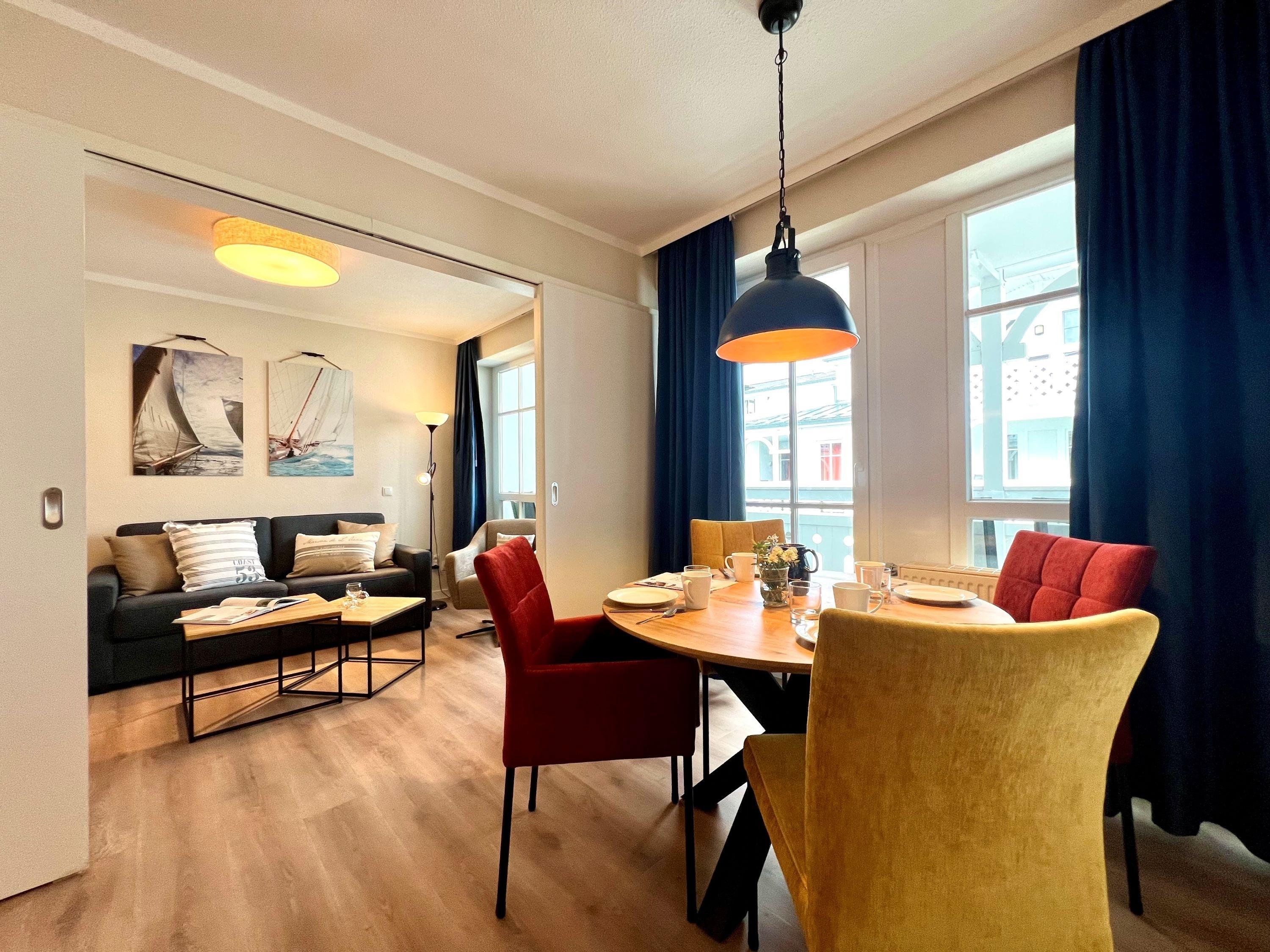 Die Ferienwohnung 673 in Sellin wurde kürzlich aufwendig renoviert, und bietet eine Wohnfläche von 52 m² mit 1 Schlafzimmer für 2 Personen. Bei Bedarf kann auch die Schlafcouch im Wohnzimmer mit Bettwäsche für 2 weitere Personen genutzt werden. Die Wohnung eignet sich ideal für einen entspannten Urlaub auf Rügen, bietet eine gehobene Ausstattung und vermittelt sofortiges Wohlfühlfeeling.