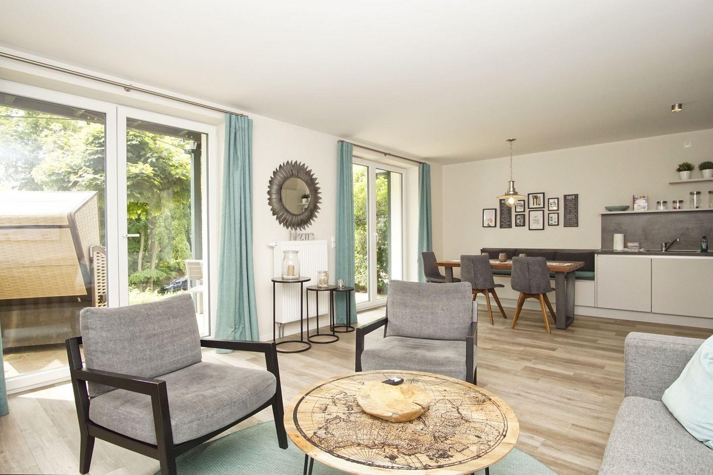 ALLGEMEINE ECKDATEN // 3-Raum-Ferienwohnung für bis zu 4 Personen, 85 m², Terrasse mit Strandkorb, Gartenblick, Sauna mit Ruheraum zur gemeinschaftlichen Nutzung ++