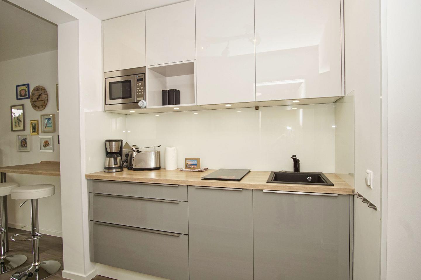 KÜCHE // offen Küche, 2-Platten Ceranfeld, Mikrowelle, Kühlschrank mit Gefrierfach, Backofen, Kaffeemaschine, reichlich Besteck, Geschirr und Küchenutensilien ++