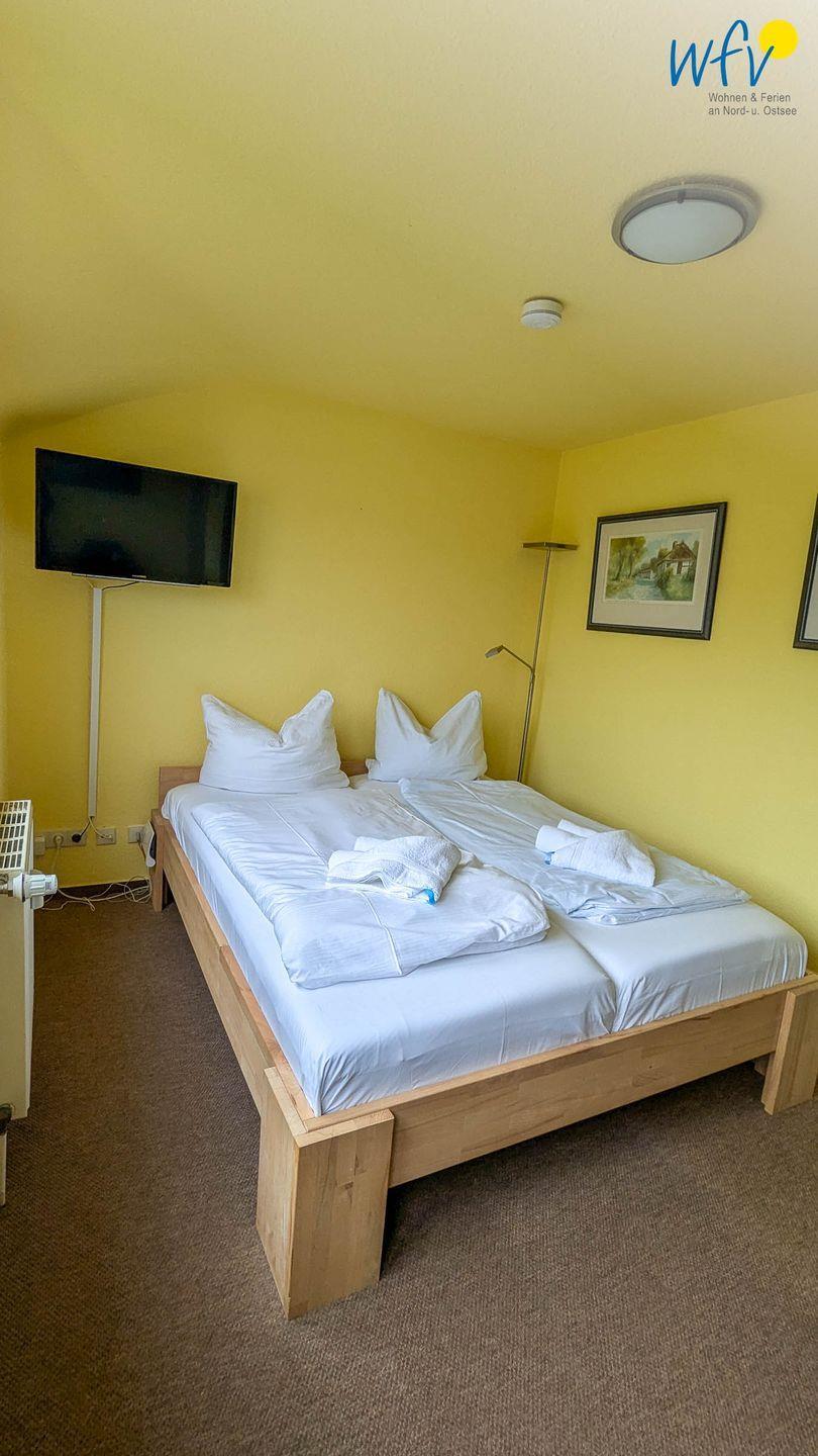 Die Anlage "Ferienappartements Am Neuensiener See" besteht aus 4 terrassenförmig angelegten Häusern mit jeweils nur 6 Wohnungen. Diese Rügener Ferienwohnung ist ideal für den Urlaub zu zweit. Es erwartet Sie ein kombinierter Wohn-/Schlafraum mit einem komfortablen Doppelbett (160 cm x 200 cm), TV, einem Esstisch mit zwei Stühlen und einer Küchenzeile sowie ein gepflegtes Duschbad. Der Esstisch befindet sich gegenüber vom Bett, sodass Sie von hier aus gemütlich TV schauen können. Vom Wohnzimmer aus blicken Sie Richtung Westen auf den Neuensiener See (eingeschränkt).