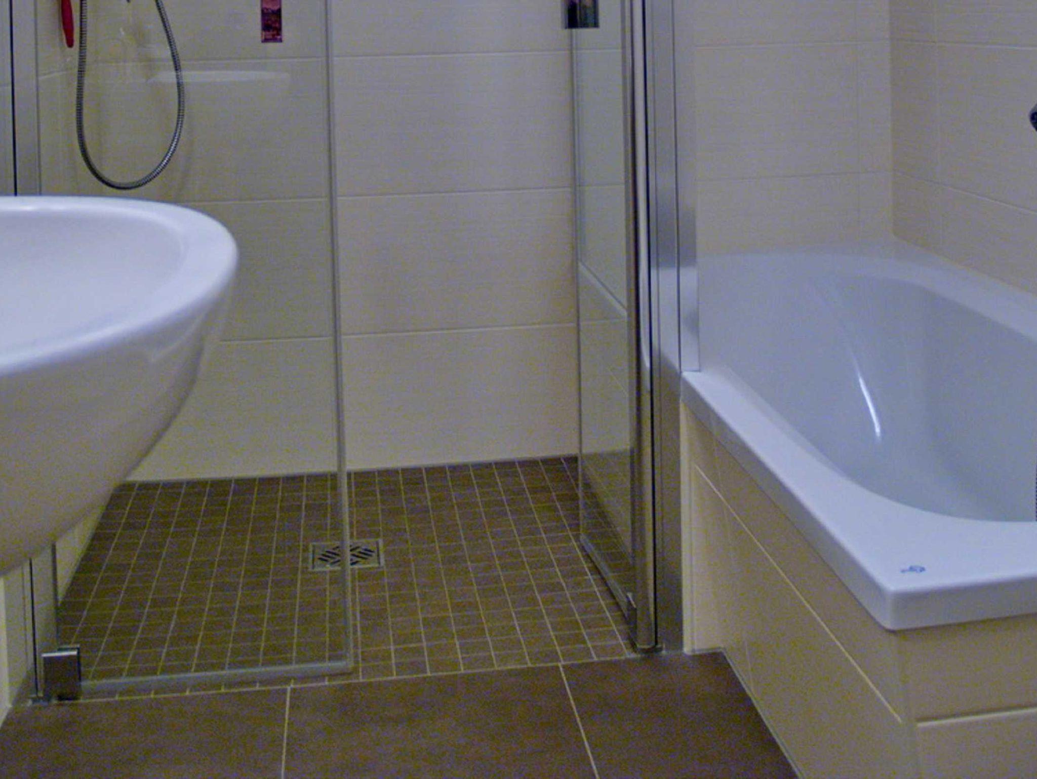 separates Bad mit Dusche, Ferienwohnungen ab 4 Personen mit Wanne und Dusche.