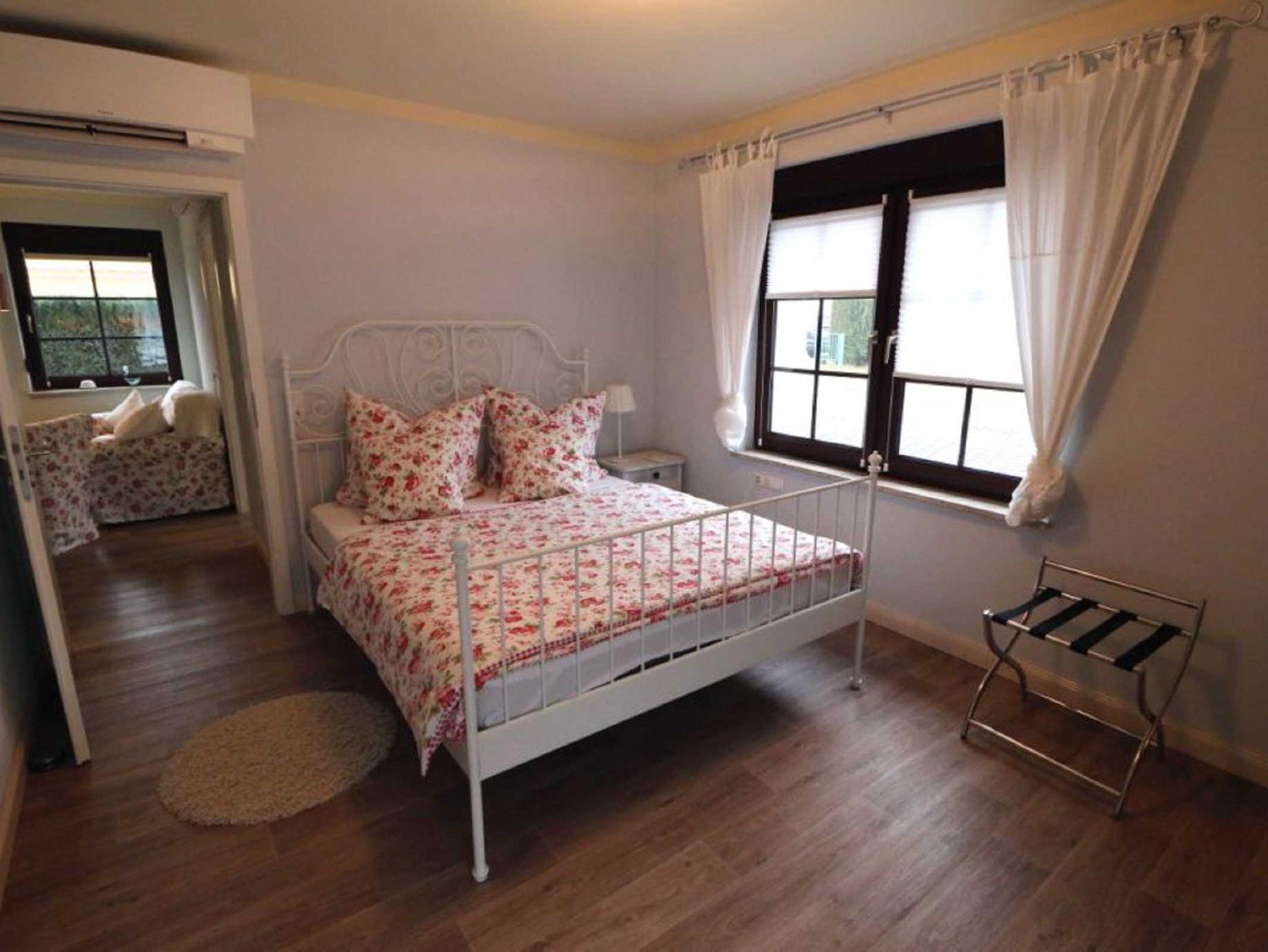 Unsere Ferienwohnung im Erdgeschoss bietet 4 Personen einen bequemen Aufenthalt. Ein Kinder-Reisebett zur Aufbettung sowie Baby-Stühlchen sind ebenfalls vorhanden. Die Wohnung verfügt über ein eigenes Bad mit Dusche und WC sowie kompletter Kücheneinrichtung. Ein direkter Zugang zur eigenen Gartenterrasse lässt Sie schöne Stunden im Freien genießen. TV, Telefon und WLAN gehören ebenfalls zur Ausstattung. Einmalig ist ein Wäschepaket (Bettwäsche & Handtücher) im Preis inklusive. Alle Zimmer sind klimatisiert. Mehrere Pkw-Stellplätze befinden sich direkt am Haus.