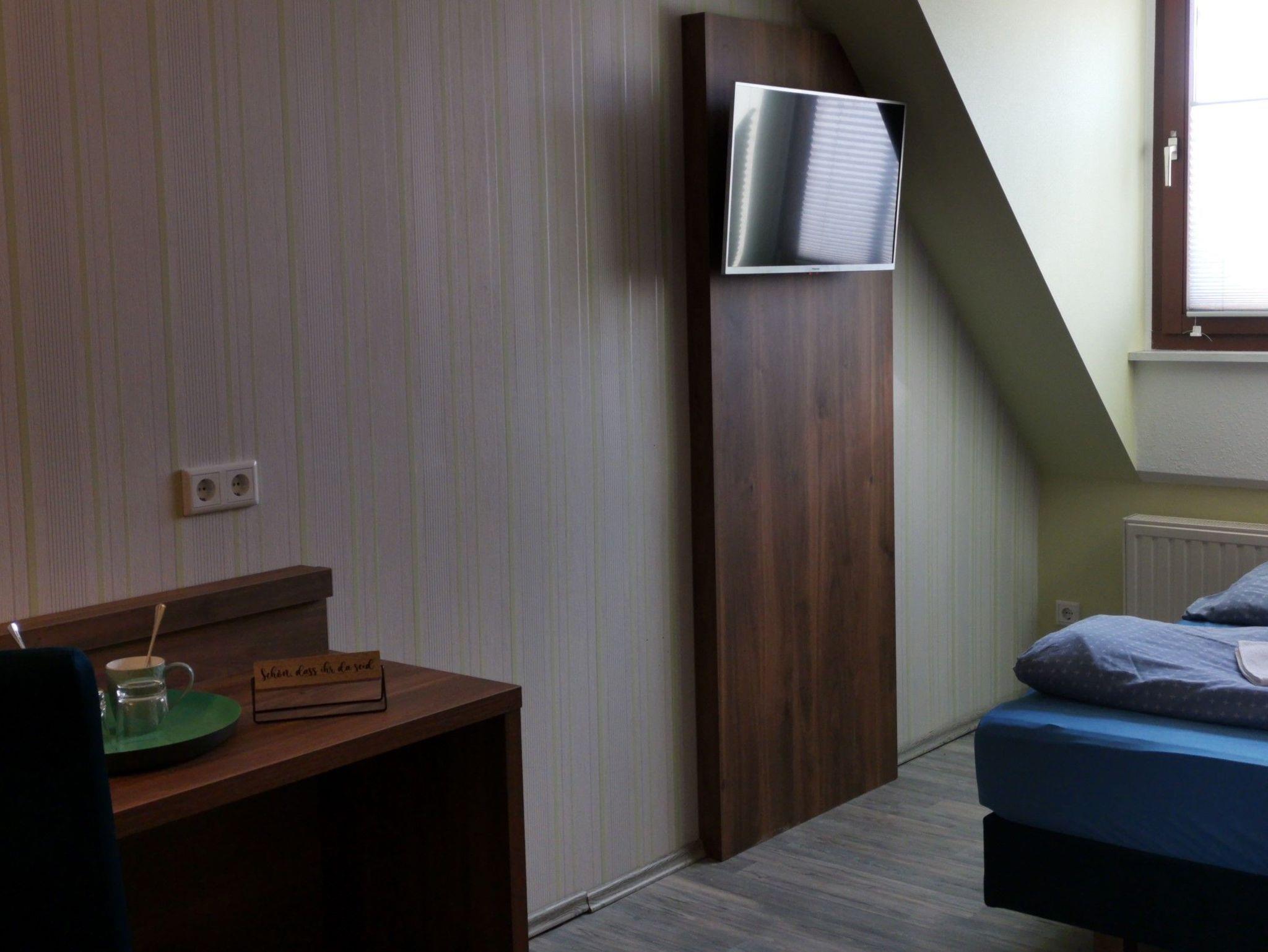 Das Doppelzimmer ist neu renoviert. Im Zimmer ist ein Doppelbett, TV, Schreibtisch und Du/WC vorhanden.