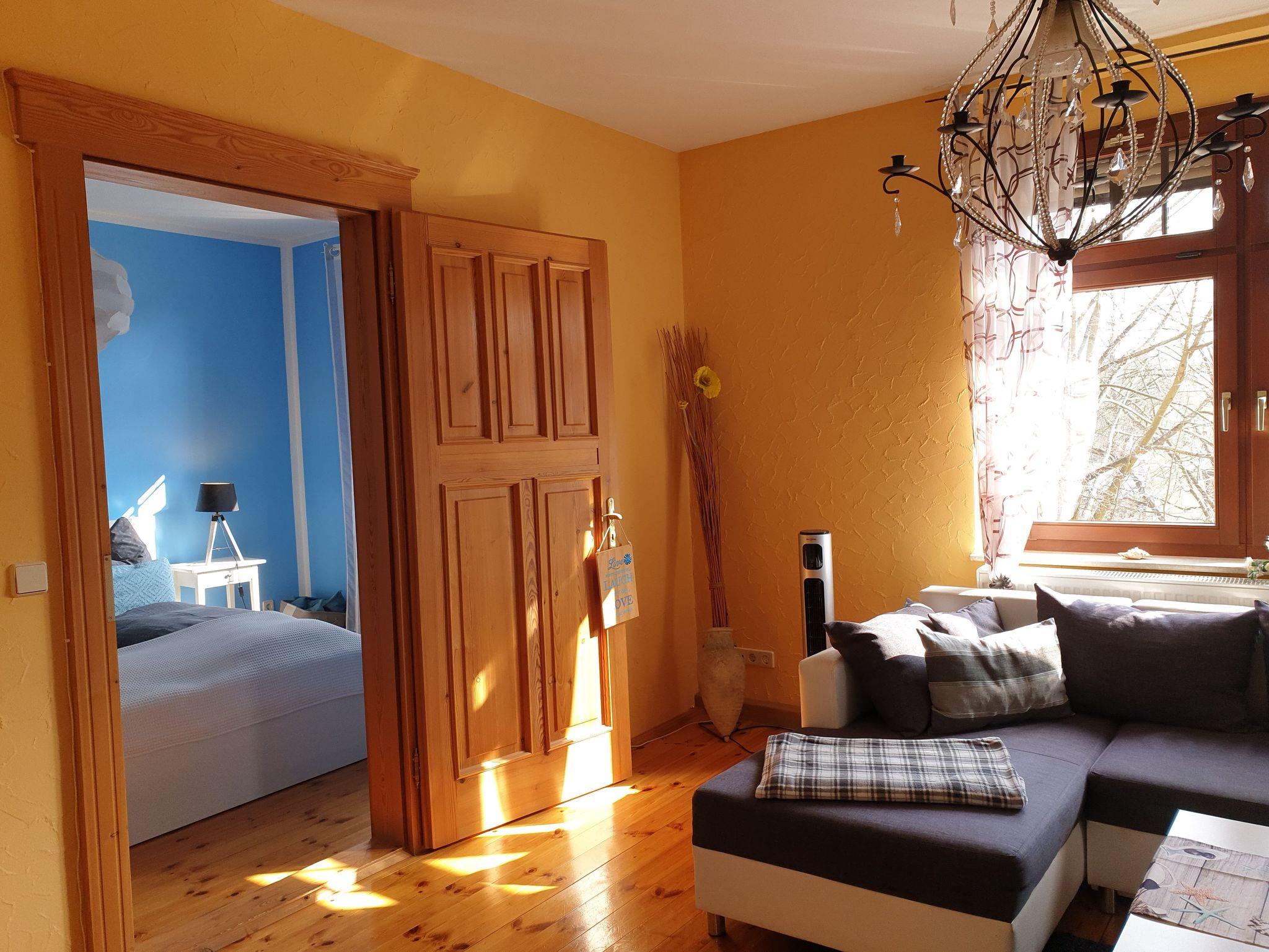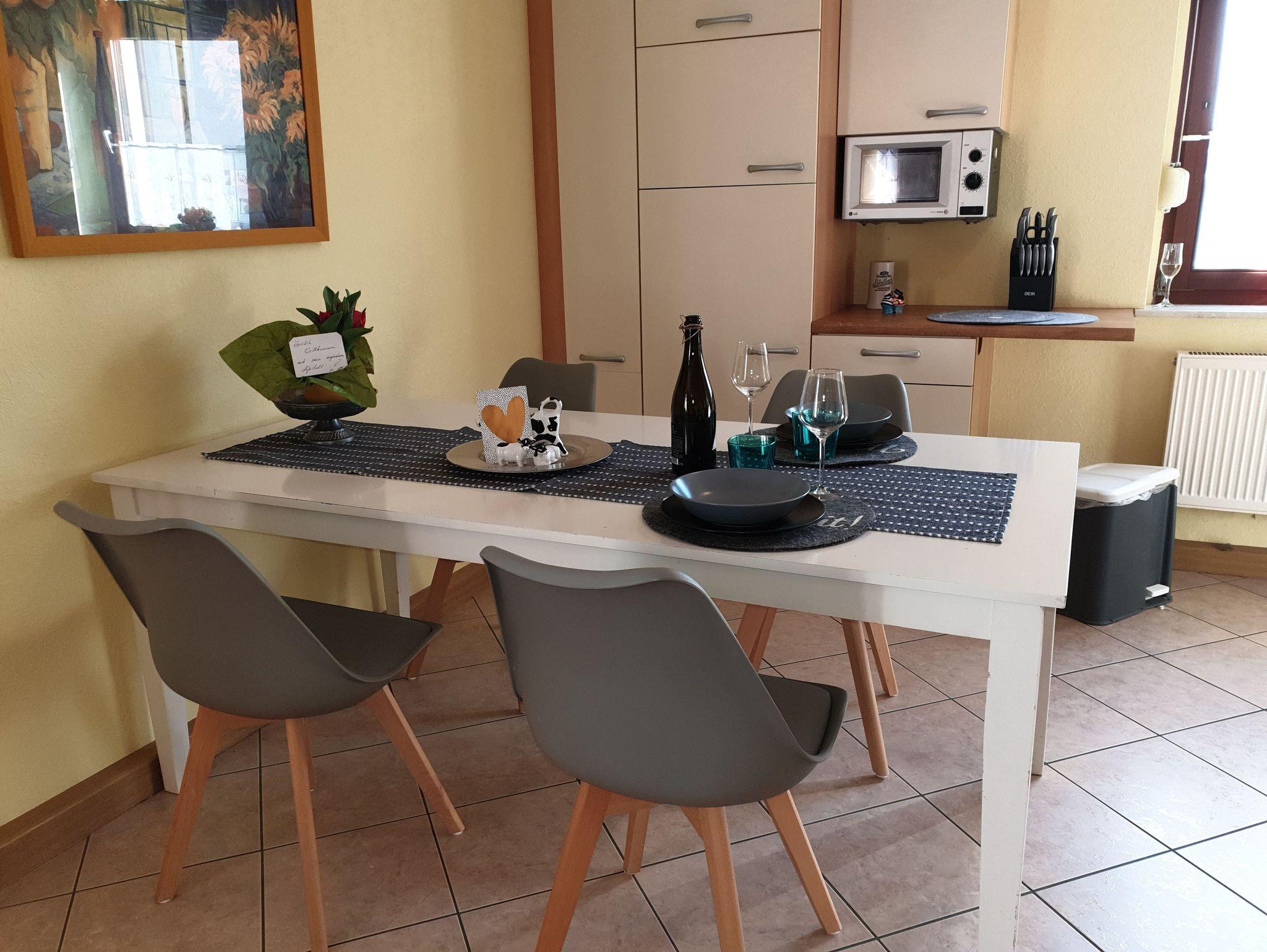 Die Ferienwohnung ist mit einem separatem Schlafraum, einem Wohn-Schlafraum, einer Küche offen zum Wohnzimmer und einem Bad mit Badewanne, DU-WC, TV ausgestattet. Die Ferienwohnung befindet sich im 1. Stock.