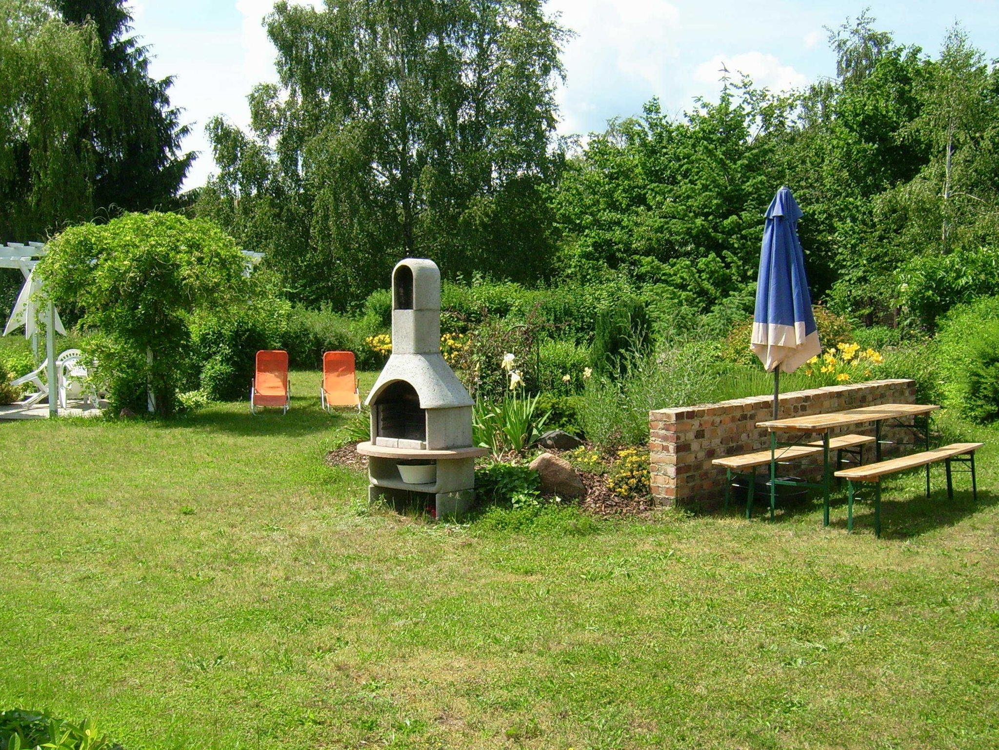 Der Außenbereich des Ferienobjekts bietet Ihnen: Gemütliche Sitzecken im Laubengang (Balkon) und im großen Garten
