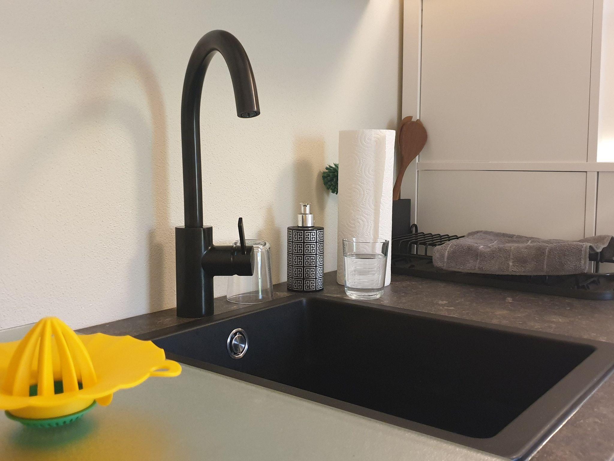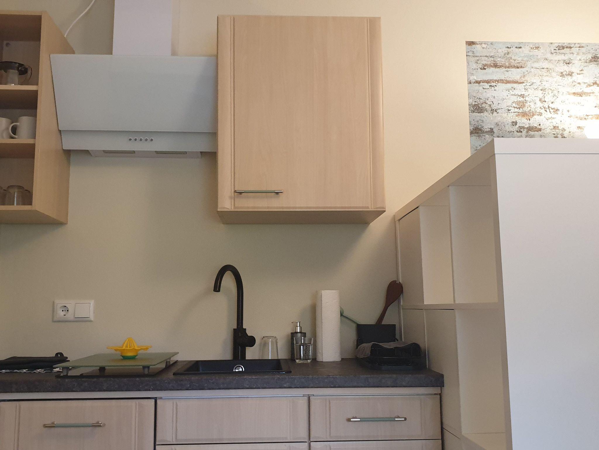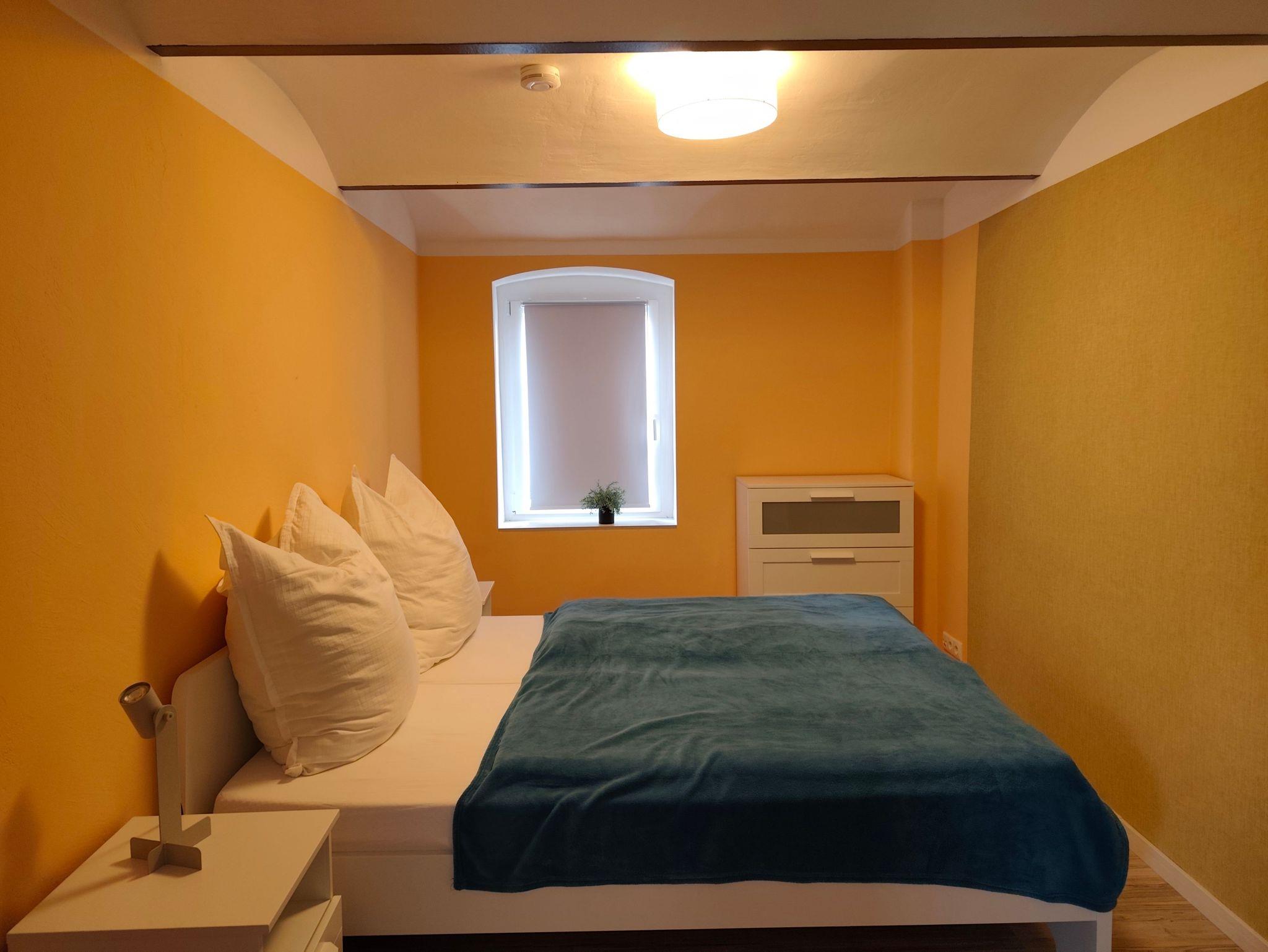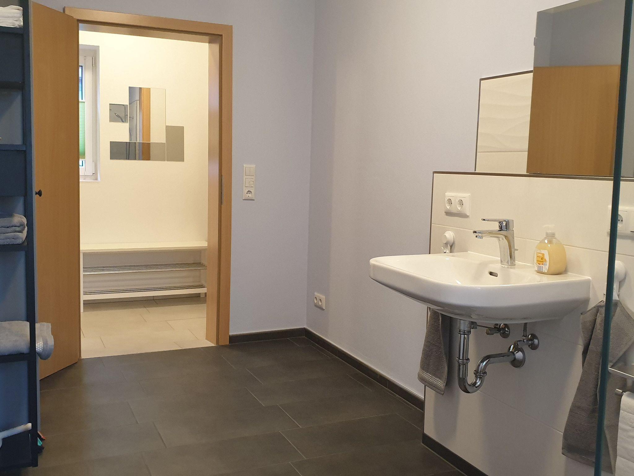 Die Wohnung bietet genügend Platz für 2 Personen und ist ausgestattet mit einem Schlafraum, einem Wohnraum mit TV und einer offenen Küche. Das modern eingerichtete Bad hat eine große, ebenerdige Dusche.