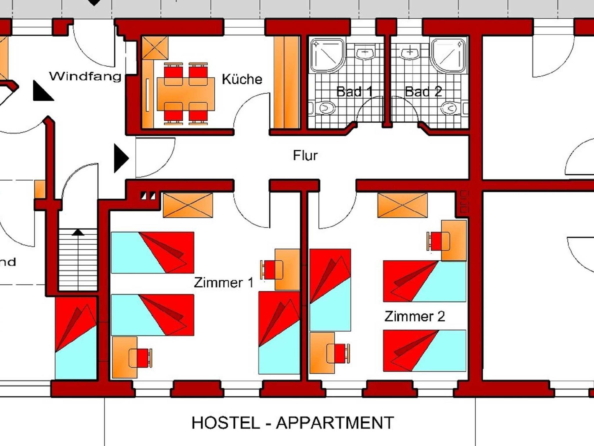 Wir bieten Übernachtungsmöglichkeiten in einem modernen 2 - Raum - Appartement auf einer Wohnfläche von 60m² für 2 bis 4 Personen, einem HOSTEL-Appertment für 6 Personen sowie einem Doppelzimmer - und einem Einzelzimmer - Appartement. Die Einheiten sind jeweils mit einer separaten Küche / Küchenzeile und Bad ausgestattet.