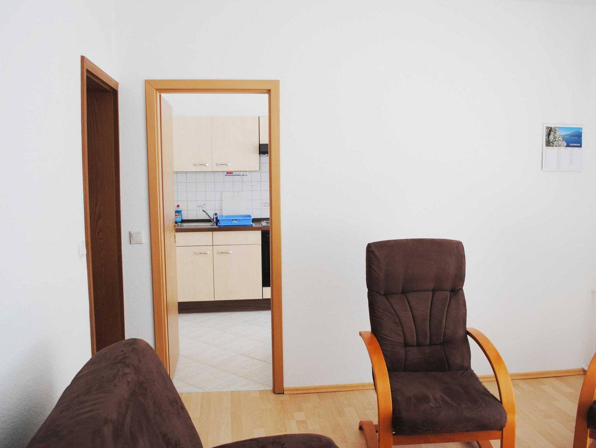 Die radlerfreundliche Ferienwohnung verfügt über ein Schlafzimmer mit Doppelbett und TV, Wohnraum mit TV, einer Funktionscouch und Internetanschluss, Küche mit Essecke, Backofen, Mikrowelle und Kühlschrank sowie Bad mit Dusche, WC und Haartrockner. Ihr persönlicher Parkplatz befindet sich direkt neben dem Haus. Die Ferienwohnung ist eine Nichtraucherwohnung. Im Garten ist Rauchen gestattet. Handtücher und Bettwäsche werden gestellt. Ein Brötchenservice und Grillen ist auf Anfrage möglich.