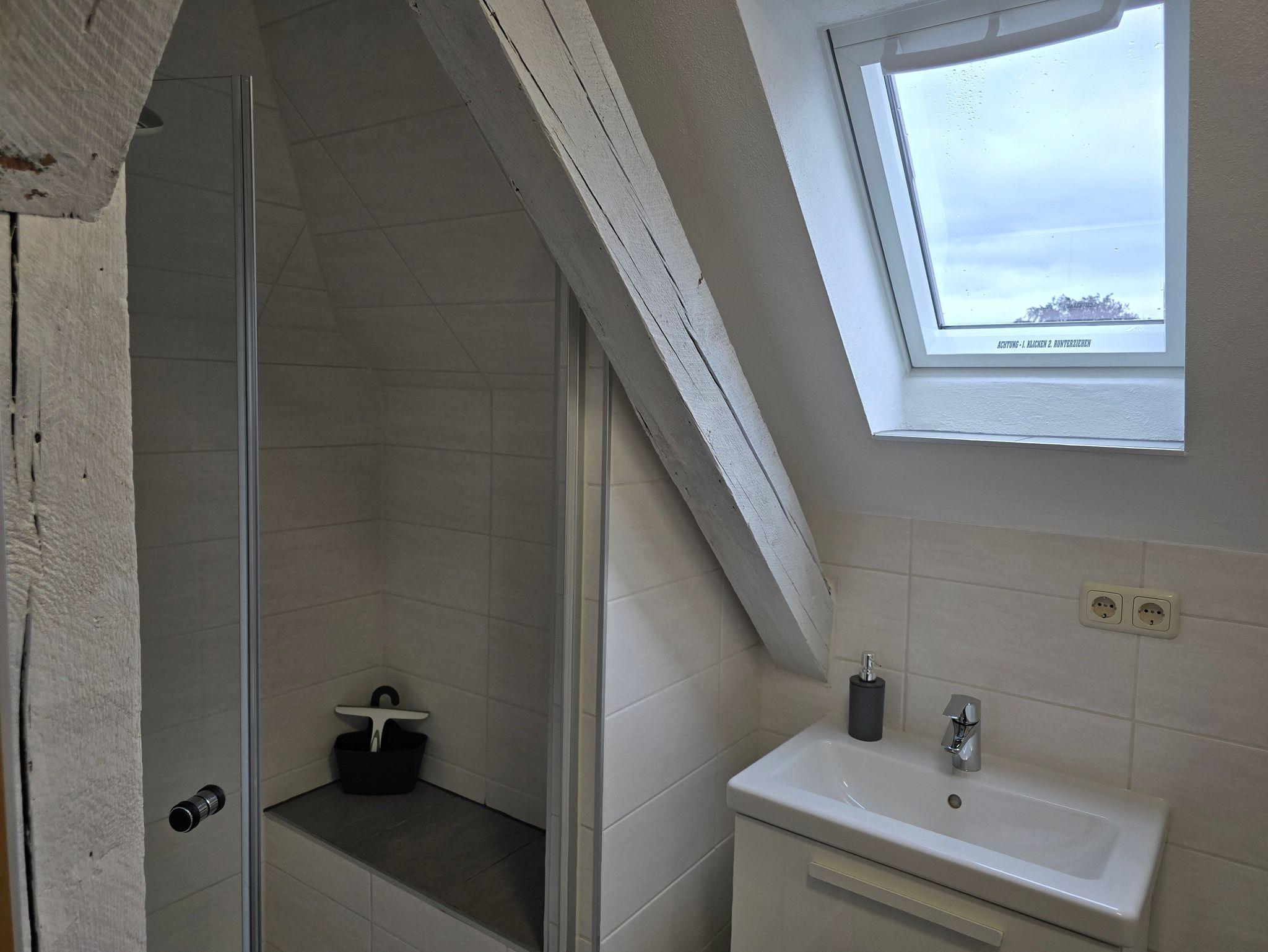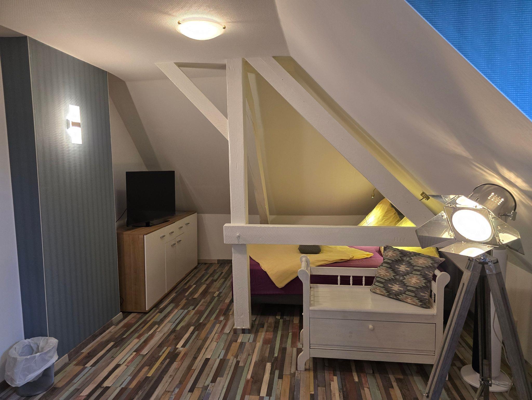Das Doppelzimmer befindet sich im Dachgeschoß des Hauses.
