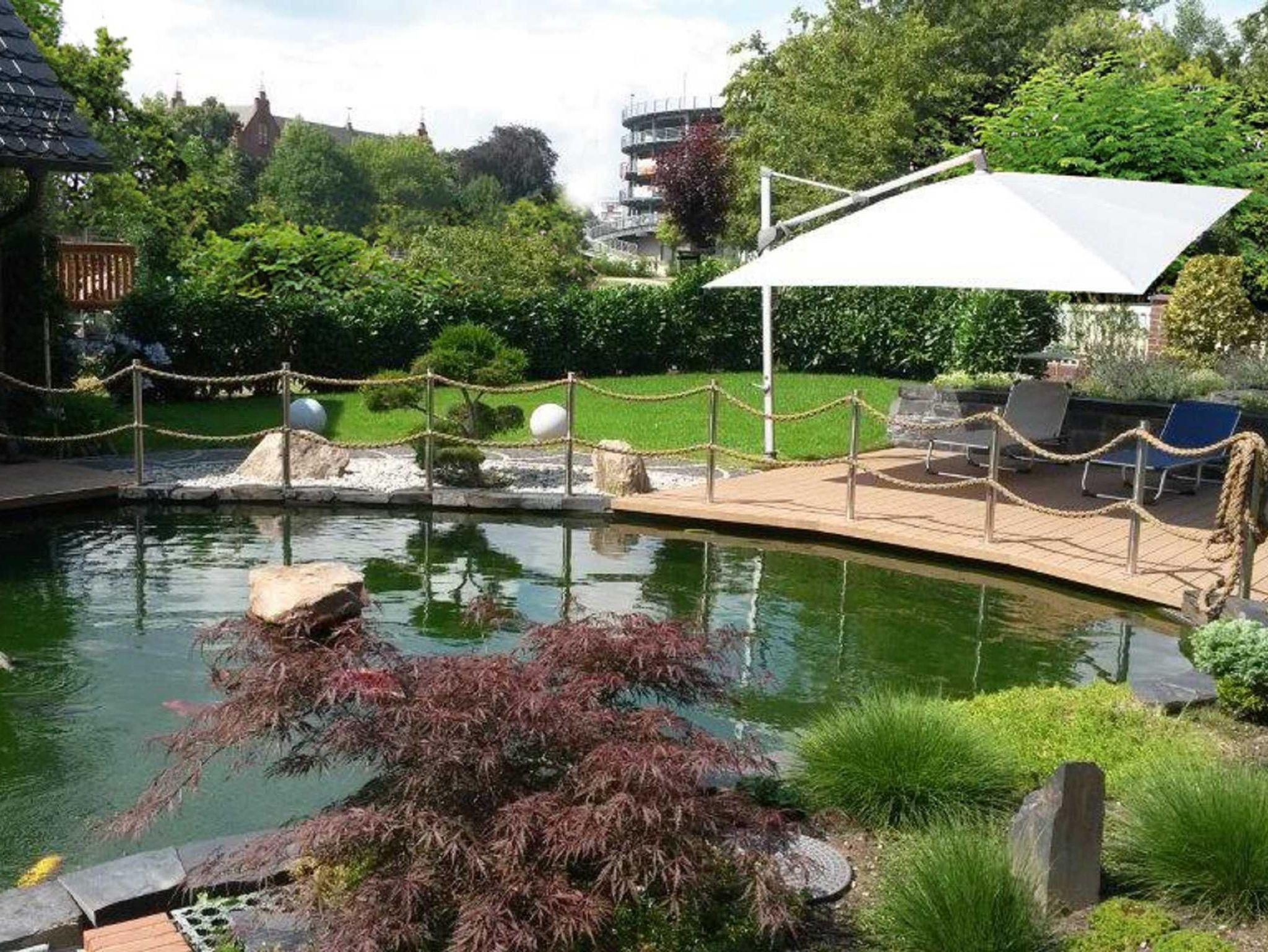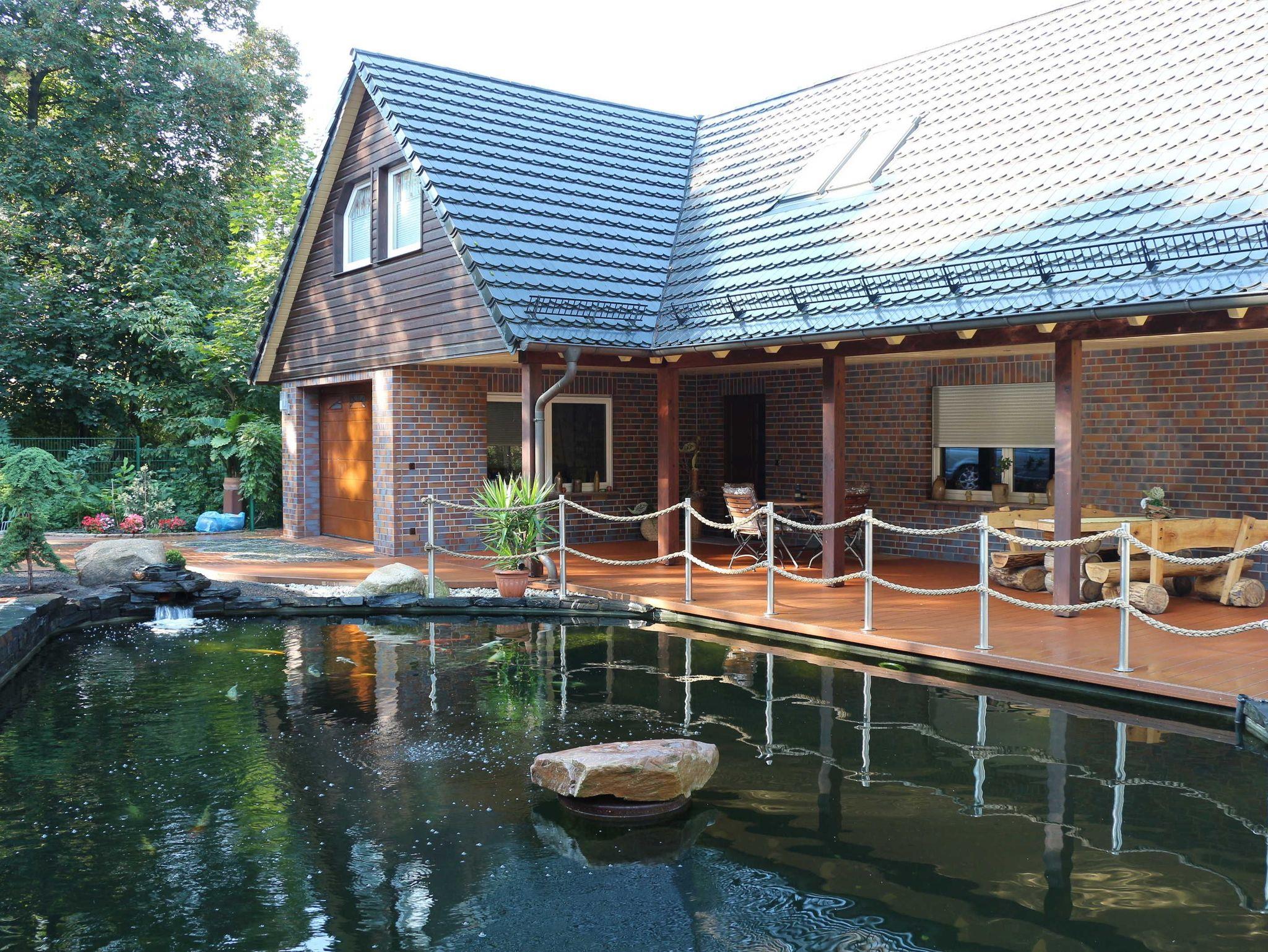 separaten Gebäude mit eigenem Eingang und Flurbereich. Der Zugang erfolgt über eine Treppe. In einer schön angelegten Gartenanlage mit überdachter Terrasse und Sitzecke, an einem schönen Teich gelegen, kann man den Tag gemütlich ausklingen lassen. Parkmöglichkeiten befinden sich direkt am Haus. Unmittelbar angrenzend an das eingezäunte Grundstück liegt der Schlosspark mit seinen Teichanlagen, einem dazugehörigen Schloss/Festungsanlage und einem sehr schönen Tierpark.