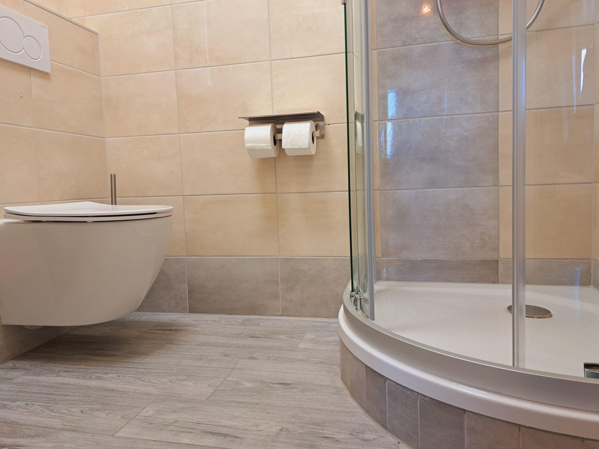 • Im Aussenbereich finden die Gäste einen Spielplatz, Sitzmöglichenkeiten zum Erholen und Entspannen und Fahrradunterstellmöglichkeiten, eine Gemeinschaftsküche, ein Aufenthaltsraum sowie eine barrierefreie Dusche und WC sind vorhanden. Im Hauptgebäude befinden sich sechs Zimmer. Die Zimmer haben einen direkten Zugang über eine Treppe im Innenbereich des Gebäudes. Jedes Zimmer hat ein eigenes Bad mit DU/WC, direkt gegenüberliegend. Im Objekt gibt es eine Gemeinschaftssauna (buchbar vor Ort gegen Aufpreis). Bei Zimmer sieben ist das Bad über eine Außentreppe erreichbar.