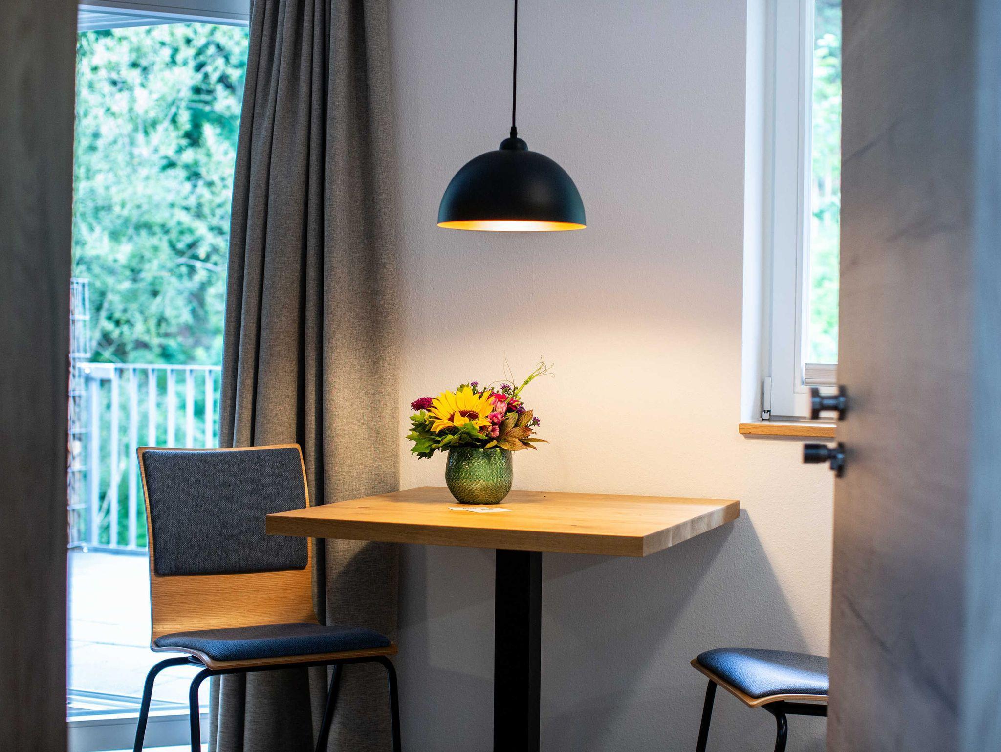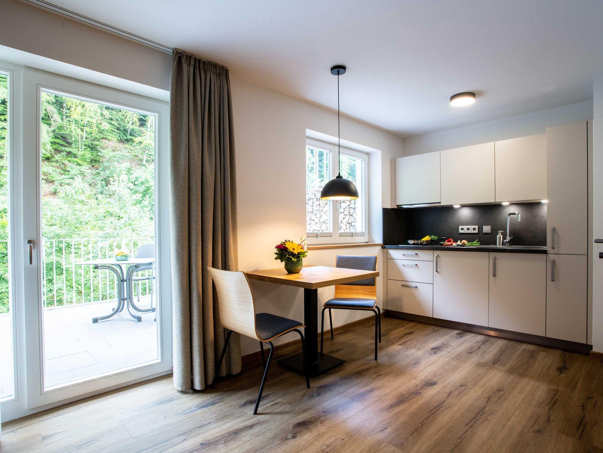 Neben den Wohnungen als Herzstück ist die Anlage auch durch das RestaurantKaminstube mit dazugehörigem Biergarten und den Veranstaltungssaal Waldblick mit seiner großzügigen Terrasse am Bach gekennzeichnet. An schönen Sommerabenden lädt der Biergarten auf ein kühles Getränk und zum verweilen ein und bietet auch einen Spielplatz mit Streichelzoo für die kleinen Gäste.