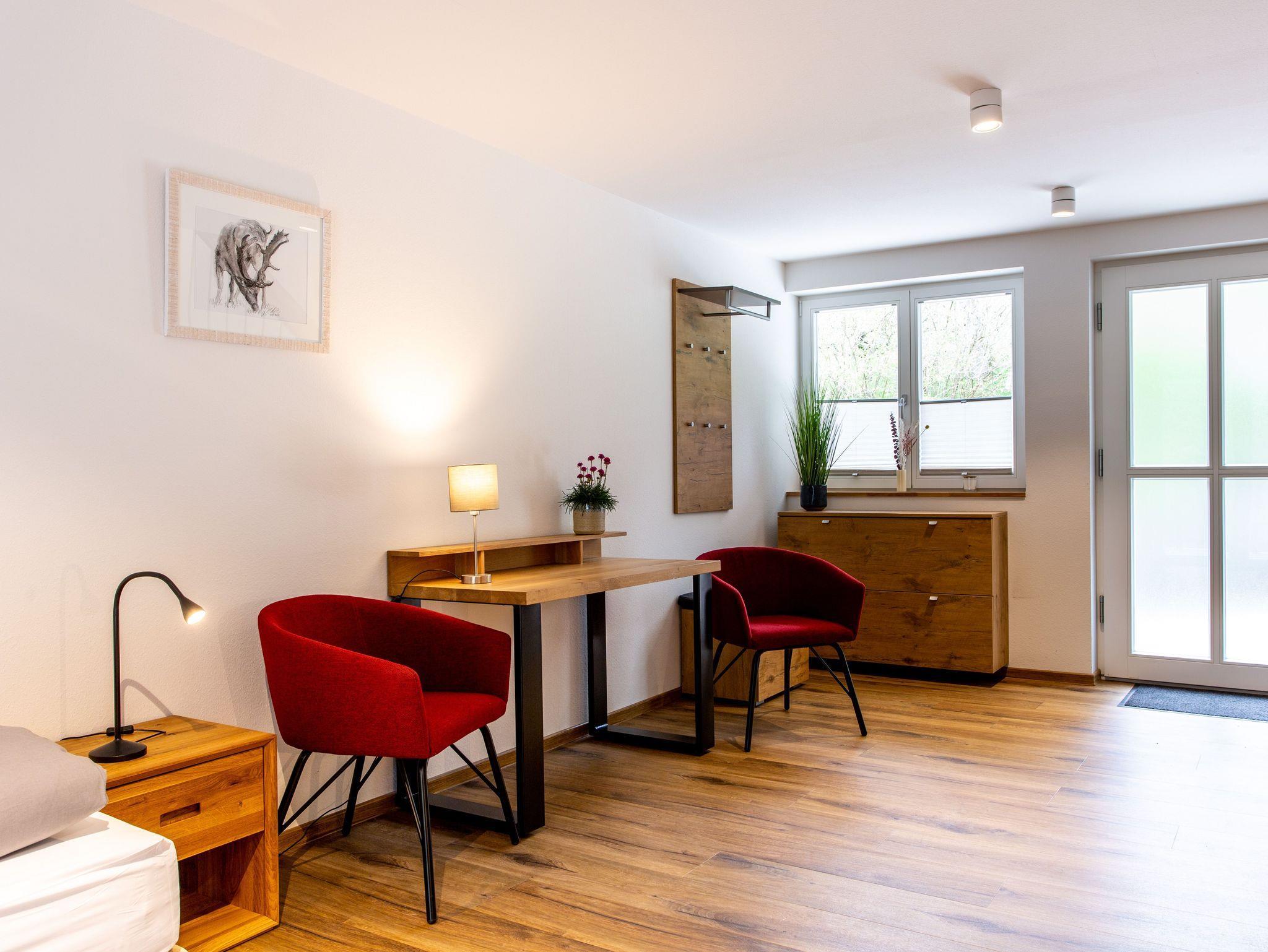 Neben den Wohnungen als Herzstück ist die Anlage auch durch das RestaurantKaminstube mit dazugehörigem Biergarten und den Veranstaltungssaal Waldblick mit seiner großzügigen Terrasse am Bach gekennzeichnet. An schönen Sommerabenden lädt der Biergarten auf ein kühles Getränk und zum verweilen ein und bietet auch einen Spielplatz mit Streichelzoo für die kleinen Gäste.