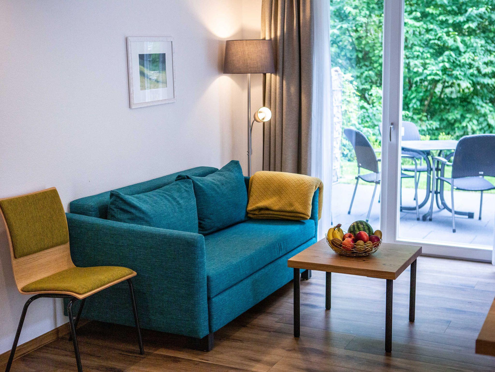 Neben den Wohnungen als Herzstück ist die Anlage auch durch das RestaurantKaminstube mit dazugehörigem Biergarten und den Veranstaltungssaal Waldblick mit seiner großzügigen Terrasse am Bach gekennzeichnet. An schönen Sommerabenden lädt der Biergarten auf ein kühles Getränk und zum verweilen ein und bietet auch einen Spielplatz mit Streichelzoo für die kleinen Gäste.