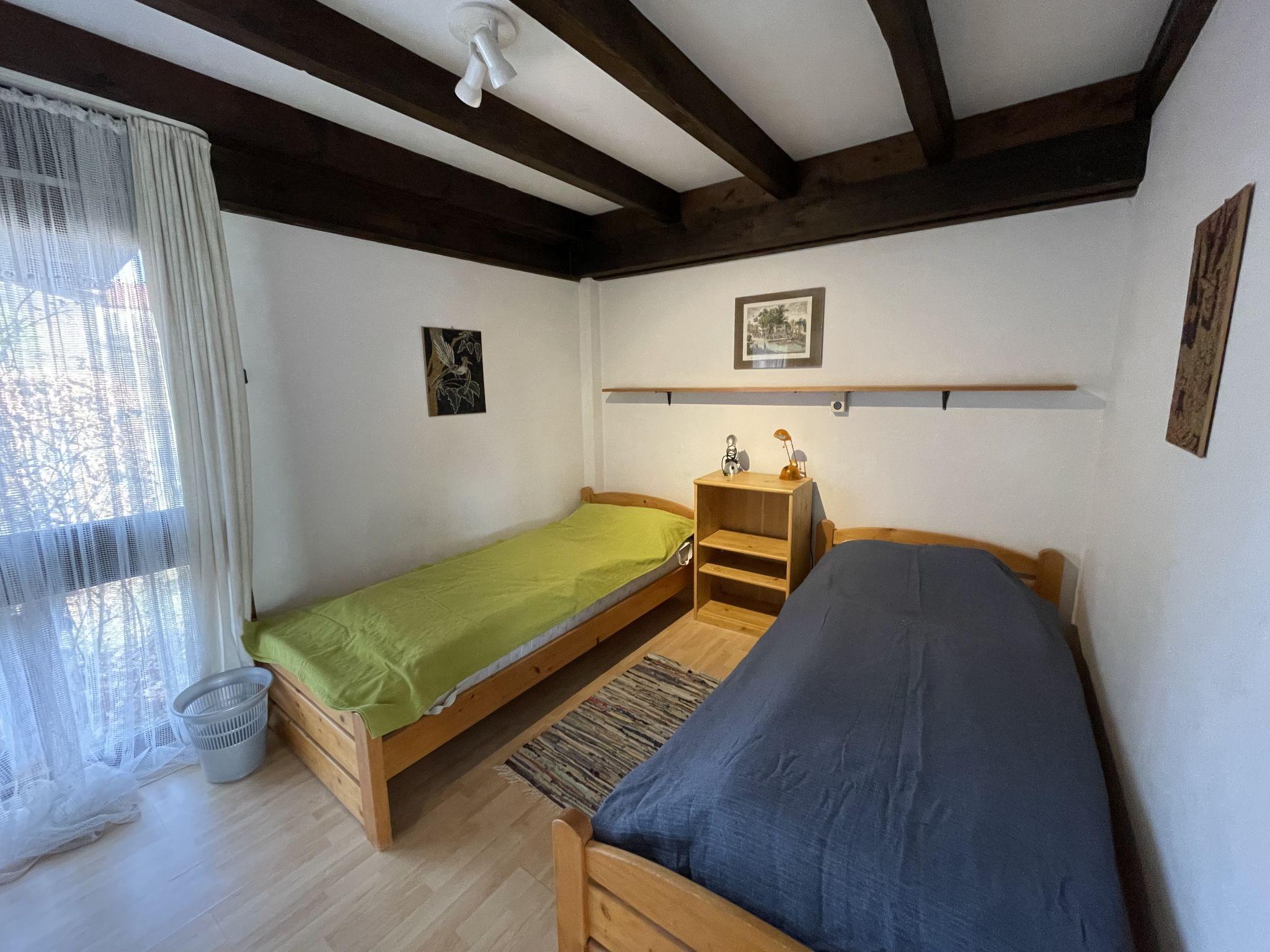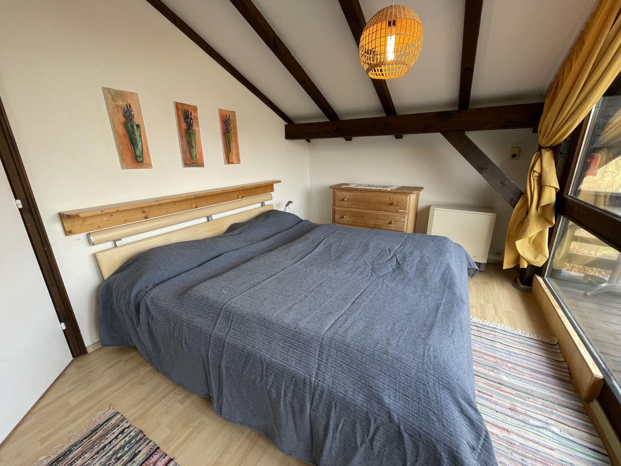 6-room house 128 m2 on 2 levels, on the ground floor. Object suitable for 8 adults + 1 child. Living room with satellite TV and DVD. Exit to the balcony. Dining room. 1 room with 1 double bed. 1 room with 2 beds. Exit to the balcony. Kitchen (oven, dishwasher, microwave, freezer, electric coffee machine). Bath/WC, shower/WC. Upper floor: 1 room with sloping ceilings with 1 double bed. Exit to the balcony. 1 room with sloping ceilings with 1 sofabed and 1 double bed. Exit to the balcony. Electric heating. Lawn. Balcony furniture, barbecue (portable). Facilities: telephone, children's high chair. Detached house. Access to the upper floor via a staircase.