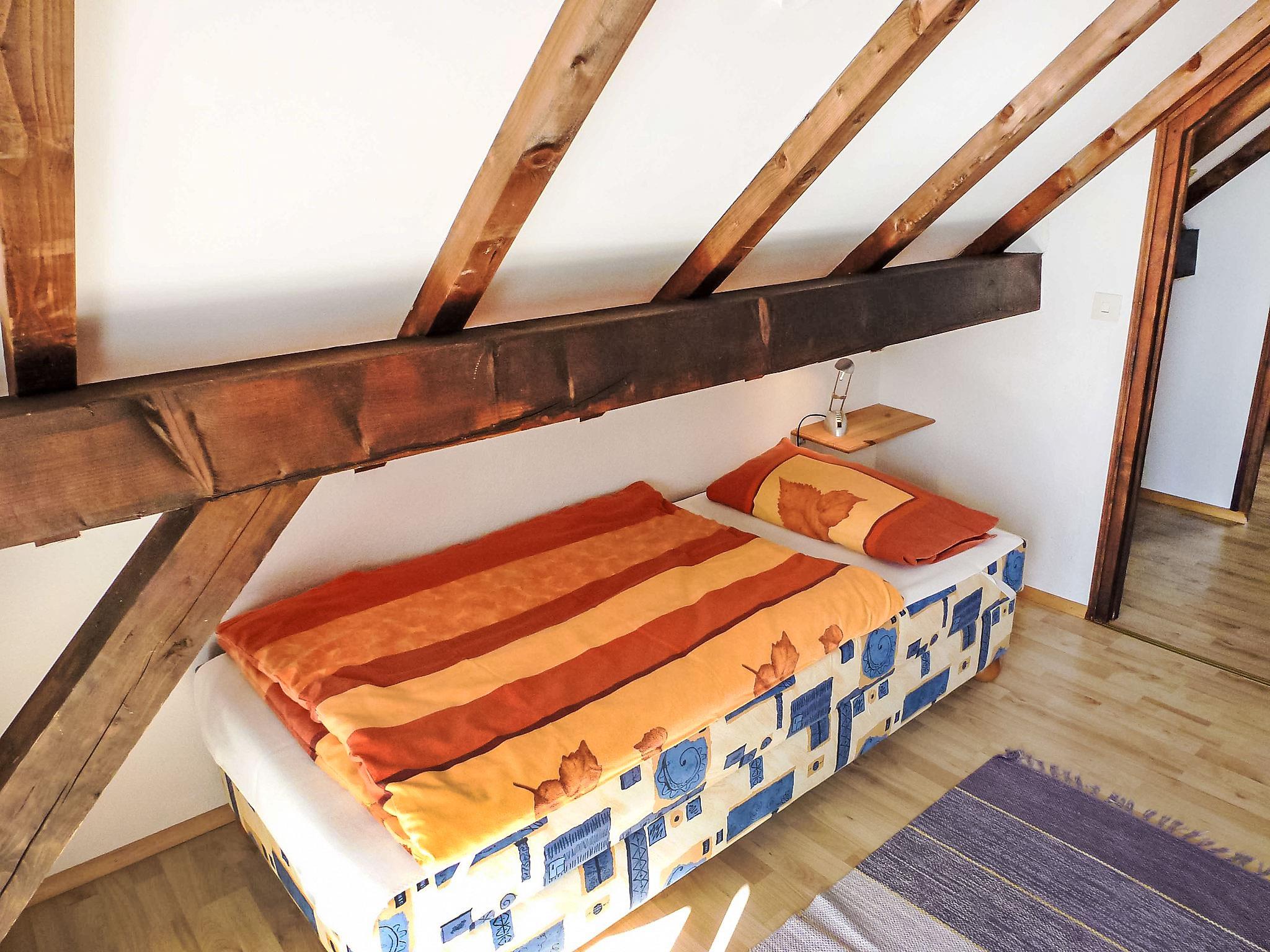 4-room house 105 m2 on 2 levels, on the ground floor. Large living/dining room 50 m2 with satellite TV and radio. Exit to the balcony. 1 double bedroom. Kitchenette (oven, dishwasher, microwave, electric coffee machine). Bath/shower/WC. Upper floor: 1 room with sloping ceilings with 1 bed and 1 double bed. 1 double bedroom with sloping ceilings. 2 balconies, lawn. Balcony furniture, barbecue (portable). Facilities: children's high chair. Internet (WiFi, free). Detached house. Access to upstairs is via a narrow staircase. Entrance with locker for skis and other equipment.