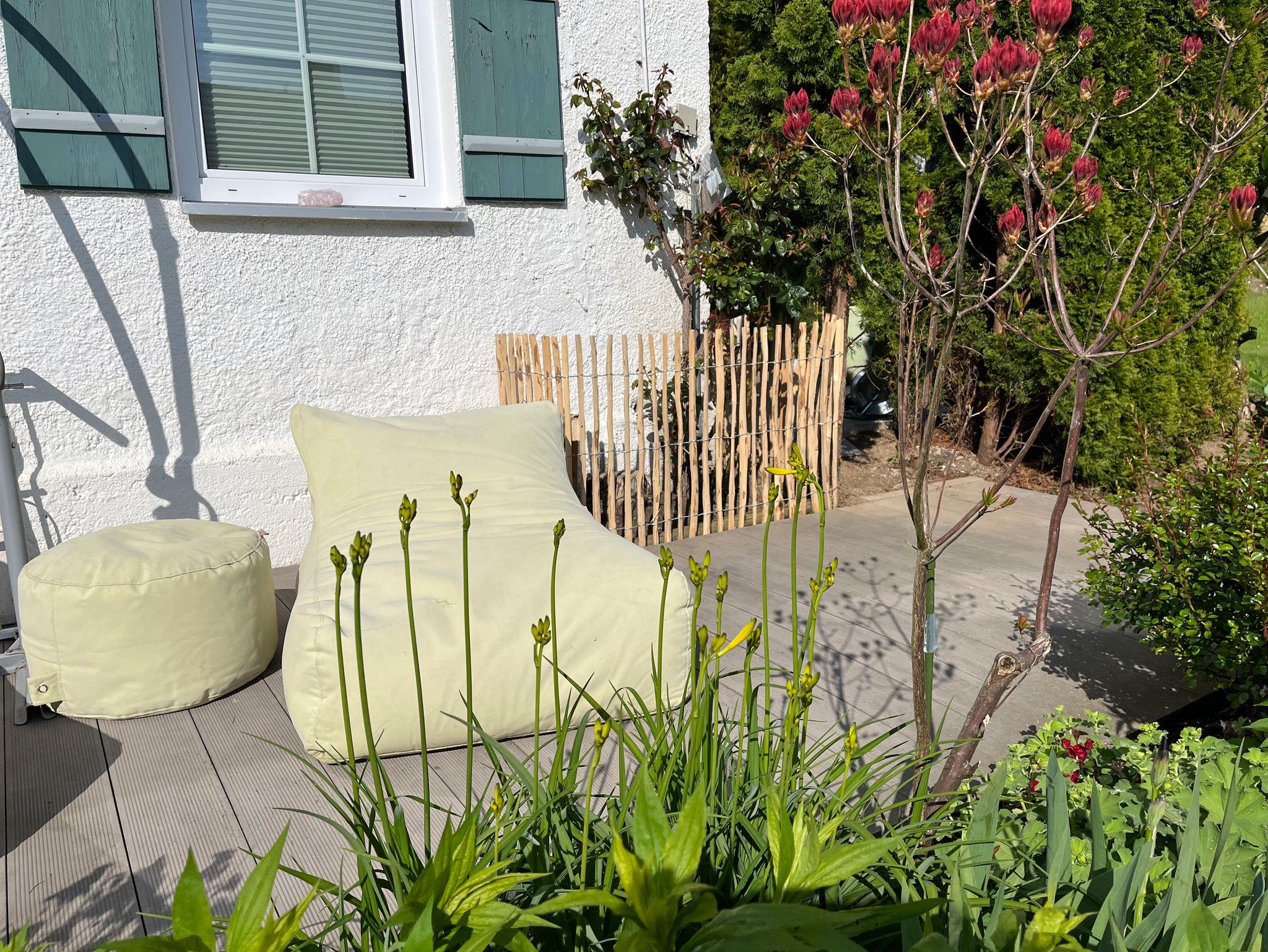 Entspannen Sie auf der hübschen Terrasse und genießen Sie die gute Atmosphäre.