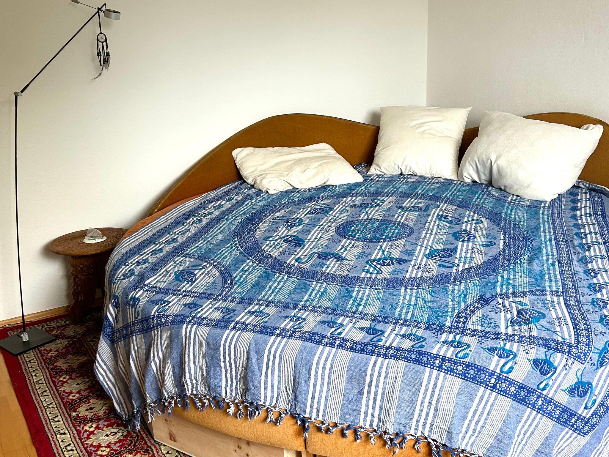 in der sonnigen Wohnung fällt die morgentliche Sonne als erstes auf den Balkon. Am Abend wirft der Sonnenuntergang seine letzten Strahlen in den Wohnbereich. Die Küche ist mit einem modernen Gasofen, Elektrobackofen und Kochutensilien wunderbar zum Kochen geeignet. Eine eingebaute Wasserverwirblung in Küche und Bad sorgt für lebendig strukturiertes Wasser. Der Holzofen lässt an kalten Tagen die Gemütlichkeit genießen.