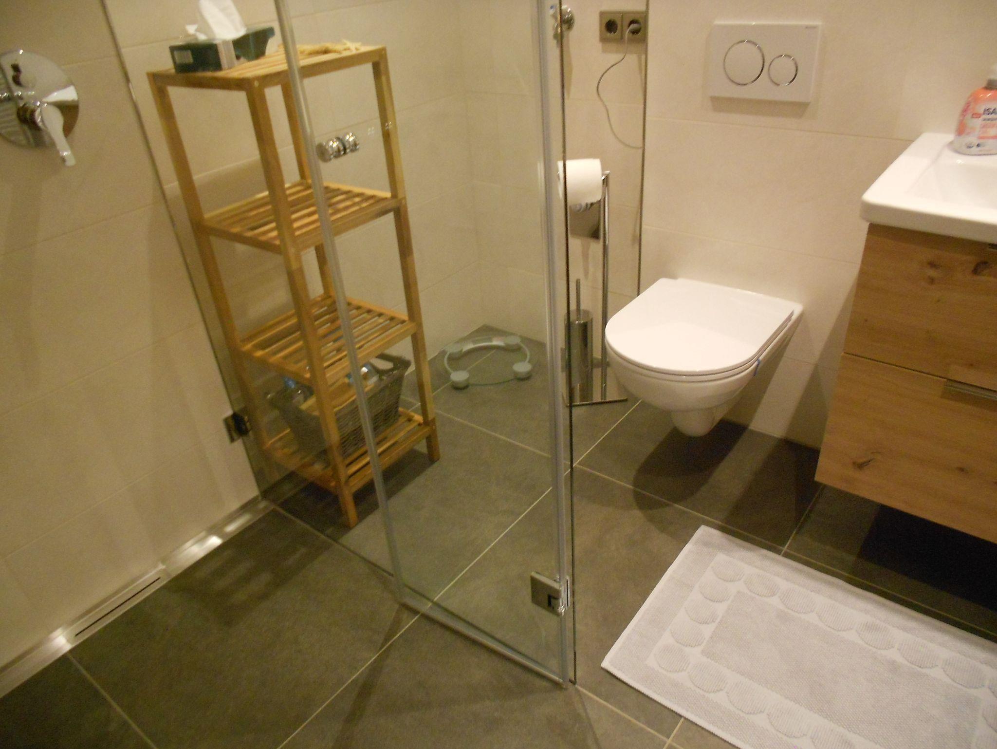 Bad - Badewanne mit Duschwand, WC, Fön.